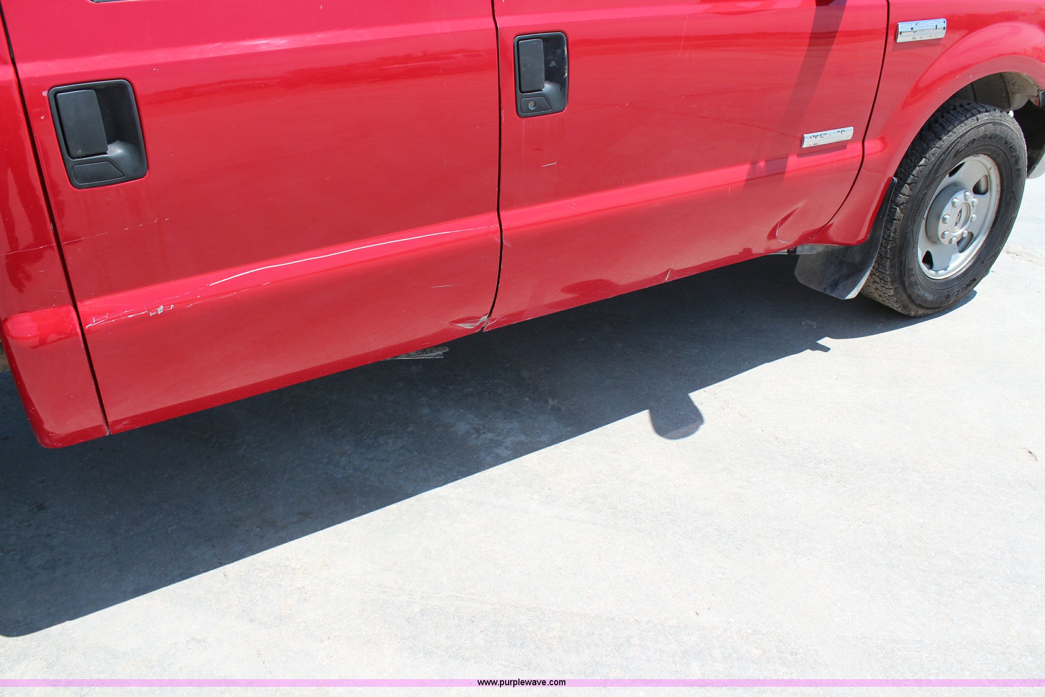 Purple Wave is selling a used 3/4 or 1 Ton Pickup or Van in Kansas. This item is a 2006 Ford F350 XL Super Duty Crew Cab flatbed pickup truck with the following: 234,207 miles on odometer, 6.0L V8 OHV 32V turbo diesel engine, Automatic transmission, AC and heat, Tilt, Cruise, AM/FM, Manual windows and locks, Cloth interior, 8.5'L x 7'W flatbed, Gooseneck ball, Receiver hitch, 265/70R17 tires, Odometer display is hard to read, Engine light on, Cracked windshield, Dings and scratches