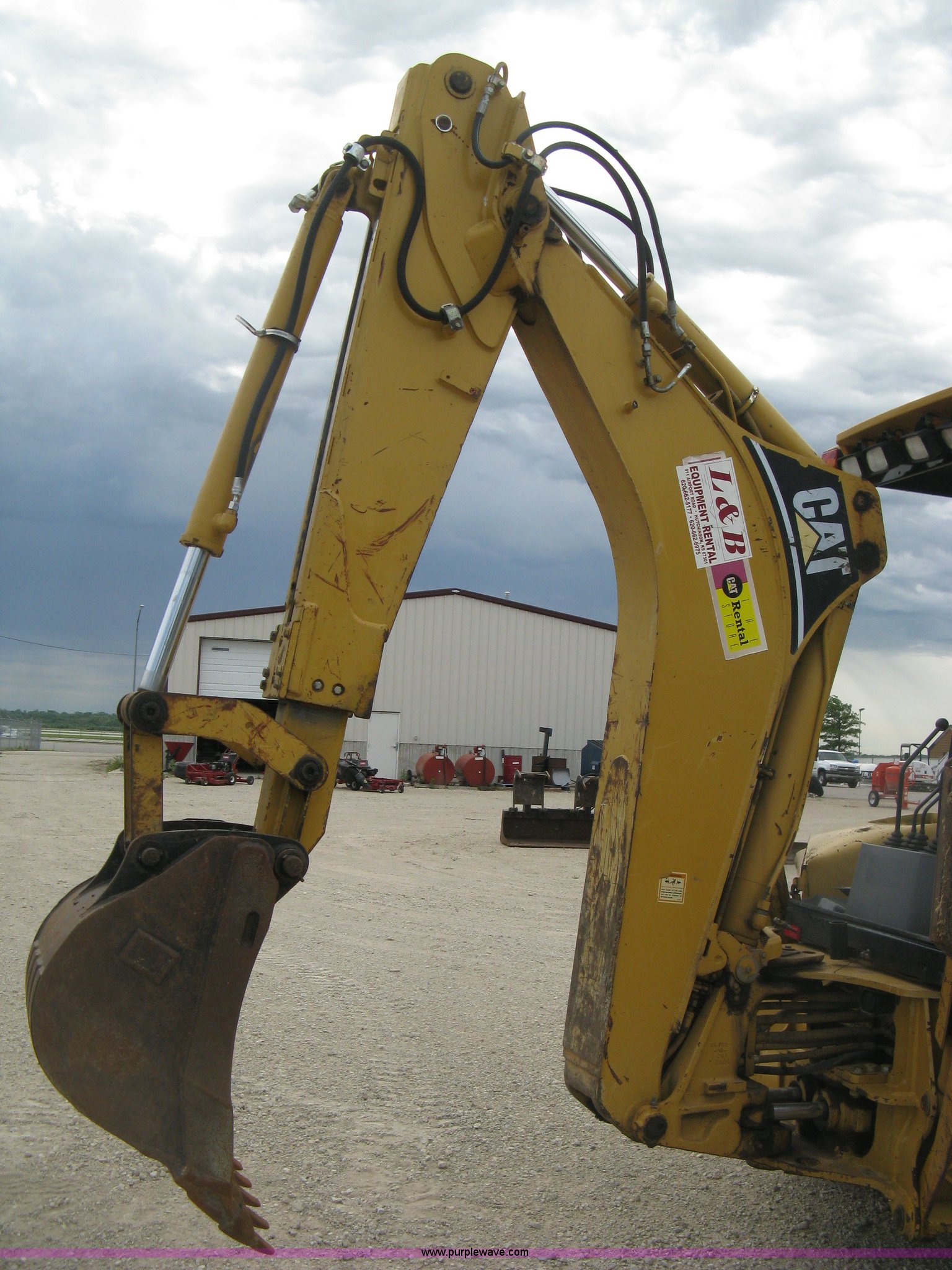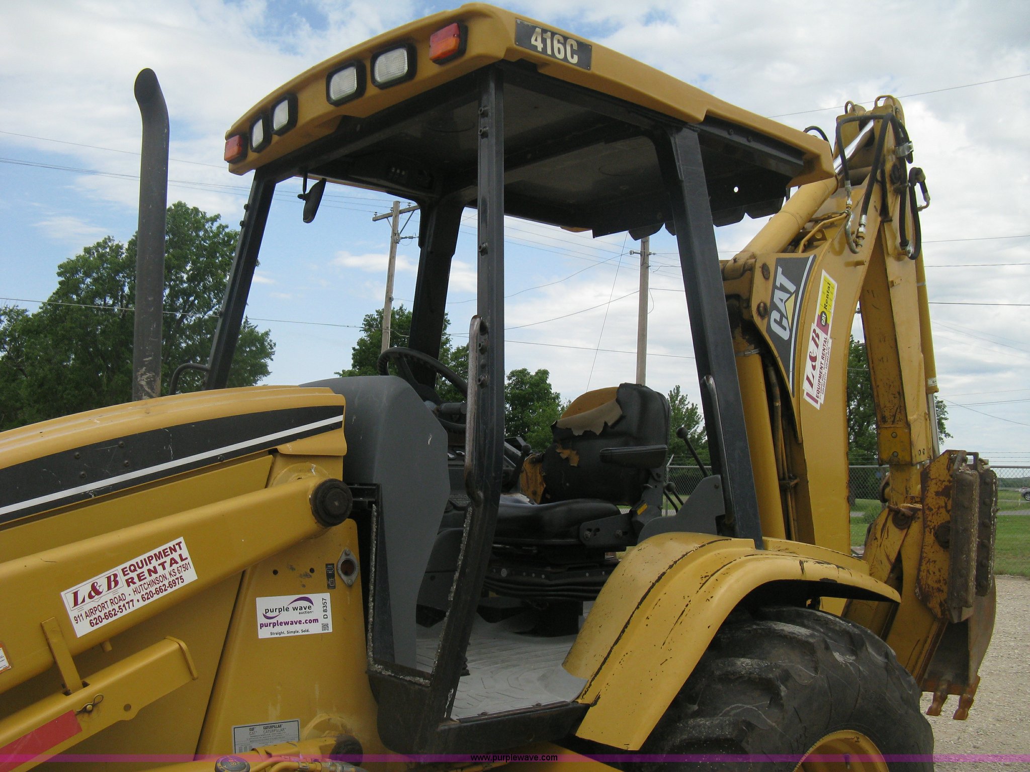 Purple Wave is selling a used Tractor Loader Backhoe in Kansas. This item is a 1999 Caterpillar 416C backhoe with the following: 2,429 hours on meter, Caterpillar four cylinder diesel engine, Serial 5HK81850, Four speed shuttle shift transmission, Serial L985710, OROPS, Suspension seat, Tilt steering wheel, Vandal guard protection, Joystick loader control, Work lights, Extend-a-hoe backhoe, Caterpillar 88" loader bucket, Model 9R5989-05, Bolt-on edge, Caterpillar 24" toothed bucket, Model 3CR40196, (5) teeth, Outriggers with street pads, Front counter weights, Goodyear 11L-16SL front tires, Goodyear 19.5L-24 rear tires, Tires replaced approx. one year ago, 13,892 lbs. base operating weight, Recently replaced muffler, One owner, Serial 4ZN16070