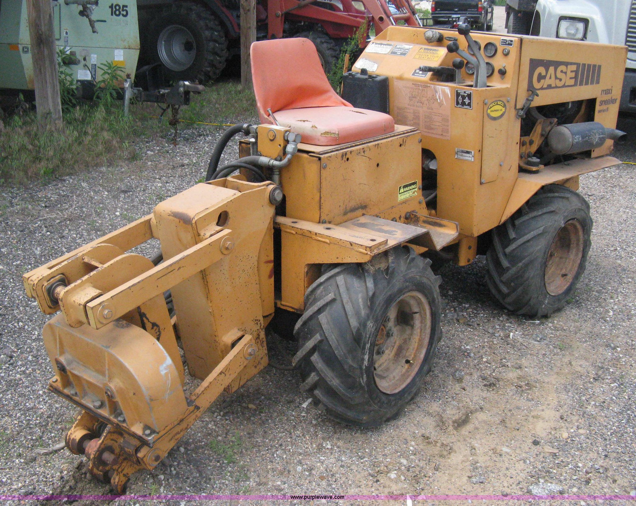 Purple Wave is selling a used Cable Plow in Kansas. This item is a 1991 Case Maxi Sneaker Series B articulated vibratory plow with the following: 3,210 hours on meter, Mitsubishi two cylinder diesel engine, Hydrostatic transmission, Creep control, Four wheel drive, Plow attachment, No plow blade, 10.50-12 NHS tires, 2,476 lbs. base operating weight, Serial JAF0092985