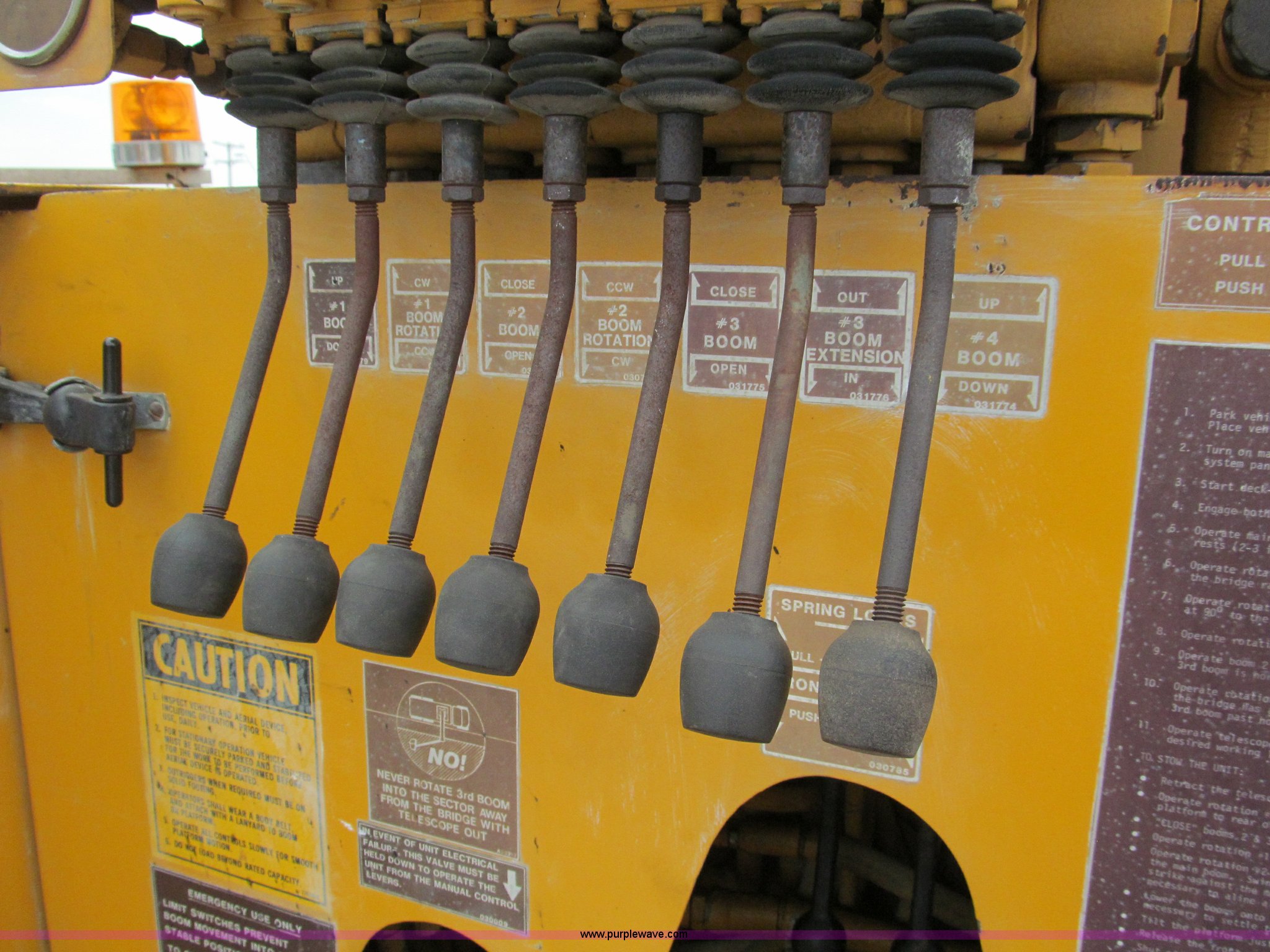 Purple Wave is selling a used Bucket Truck in Missouri. This item is a 1986 GMC General bridge inspection truck with the following: 7,441 miles on odometer, 426 hours on meter, Cummins 14.0L L6 diesel engine, Eaton Fuller Road Ranger 13 speed manual transmission, Twin screw, AC and heat, Tilt, Passenger daylight door, Air suspension seat, PTO, Wet kit, Backup camera, Mobile intercom, Front and rear beacon lights, 5' x 18" x 18" storage box, Reach-all boom, Model UB4045, 600 lbs basket capacity, Spring locks, Remote ground controls, Basket controls, 355 degree rotation, Serial 7369, Three boom sections, Three part lower boom, 25' main boom, 15' extension, 5' reach and extend, 45' total, 22' fixed middle boom section, 18' fixed top boom, UB4045 40' down 45' under, Four cylinder diesel on-board generator, 75 kW, 120/240V output, Electric start, 502 hours on meter, 60" x 30" basket, 15,500 lbs counter weight, Spring suspension, Rear air suspension, Air brakes, Jake brake, 230" wheelbase, 14-80R20 front tires, 295/75R22.5 rear tires, Boom will operate off of PTO or hydraulic pump mounted to generator, Current inspection