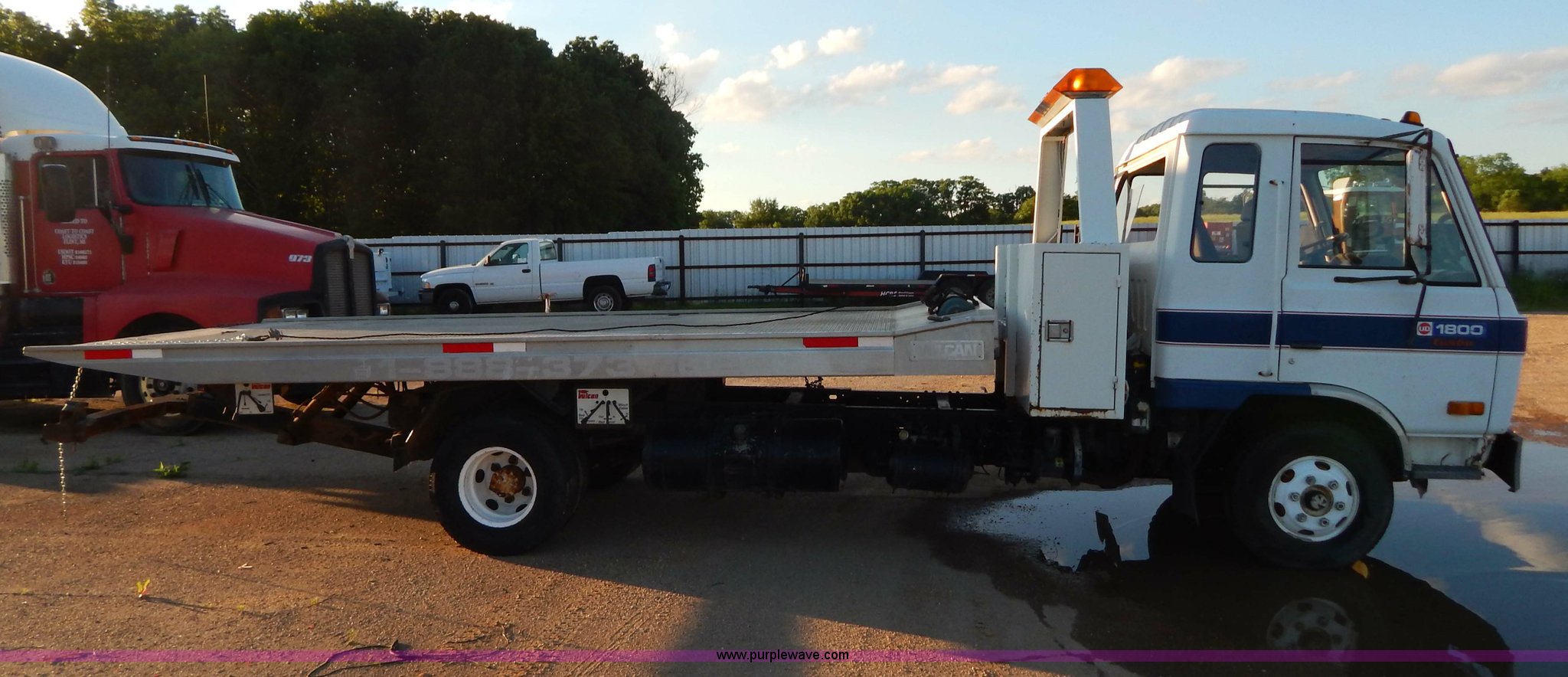 Purple Wave is selling a used Rollback or Tow Truck in Missouri. This item is a 1990 UD Nissan UD1800 rollback truck with the following: 231,127 miles on odometer, Nissan six cylinder diesel engine, Engine makes knocking noise, Five speed manual transmission, Volcan rollback aluminum bed, 91"W, Light bar, 235/85R16 tires, Brakes inoperable, Interior/exterior cosmetic damage