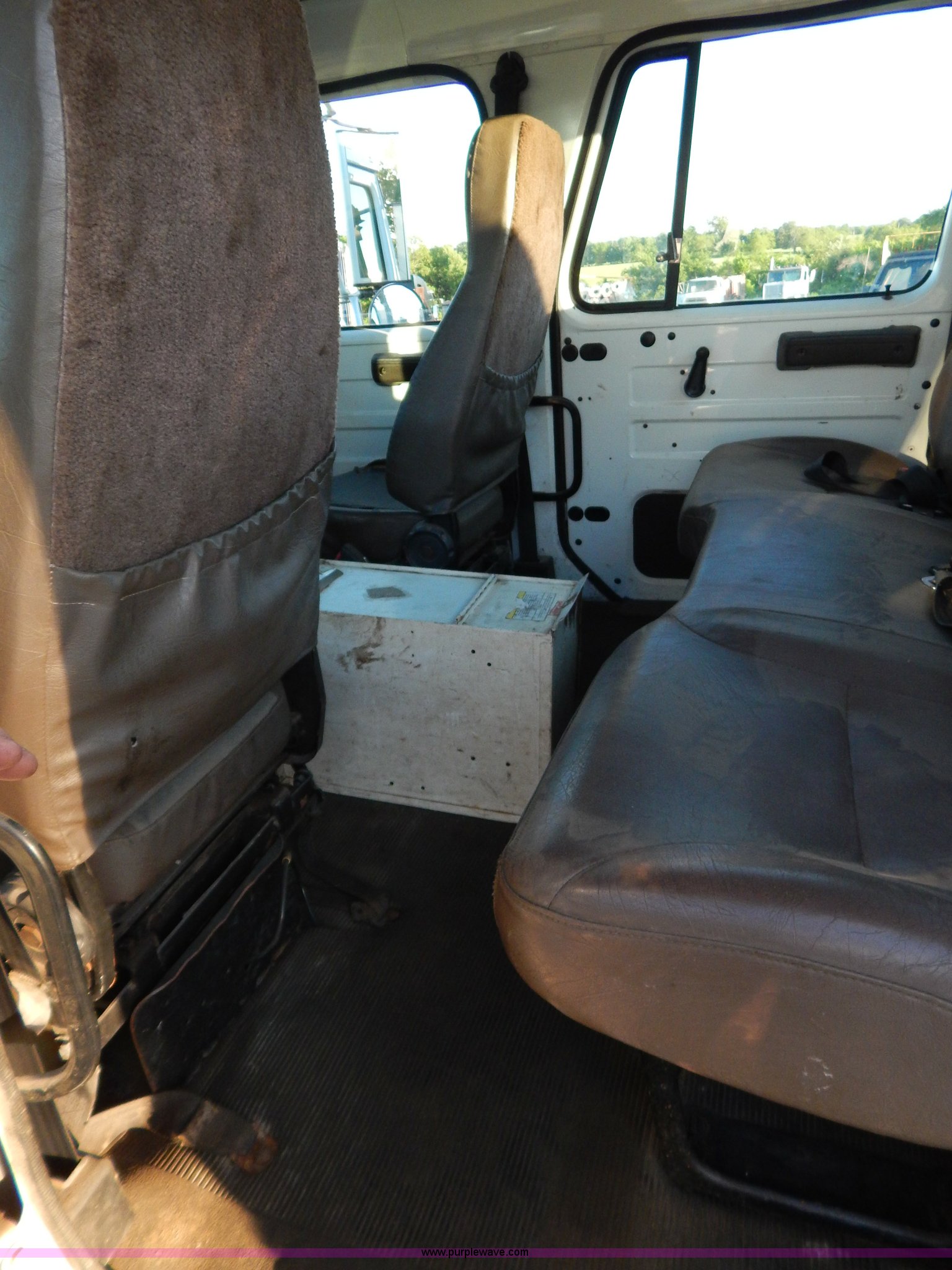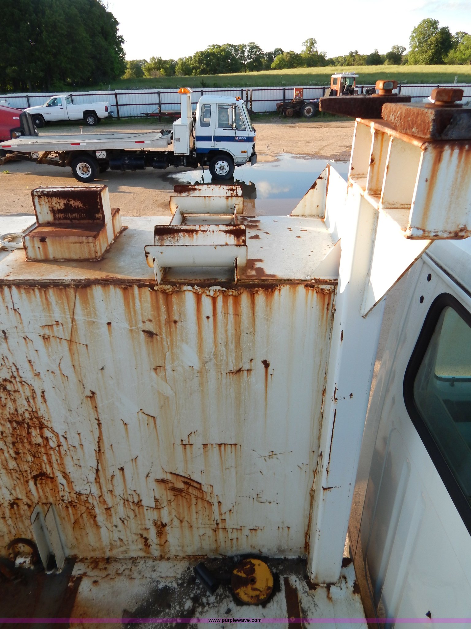 Purple Wave is selling a used Service Truck in Missouri. This item is a 1999 International 4900 Crew Cab railroad service truck with the following: 154,408 miles on odometer, 17,684 hours on meter, International DT466E 7.6L L6 diesel engine, Eaton Fuller nine speed manual transmission, Railroad service bed, IMT 3816 three stage crane, Serial 3816991212, (2) outriggers, Electric lift gate, Dual 50 gallon fuel tanks, Receiver hitch, Air brakes, 218" wheelbase, 11R22.5 tires, GVWR 33,000 lbs, FAWR 12,000 lbs, RAWR 21,000 lbs, Six injectors recently replaced, Gauge cluster cover missing