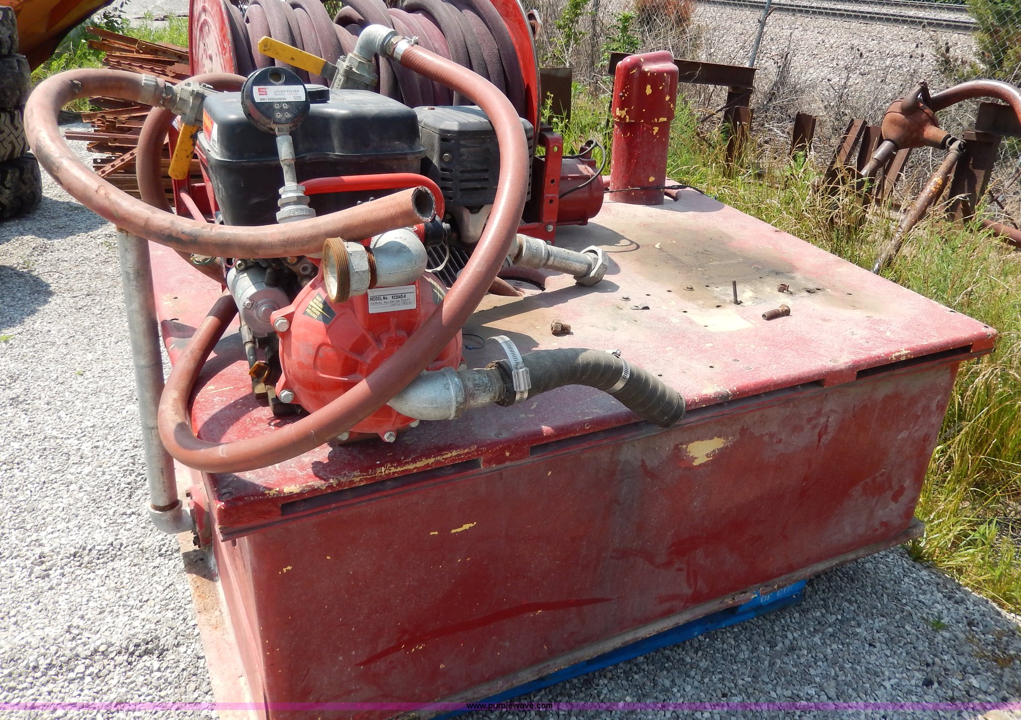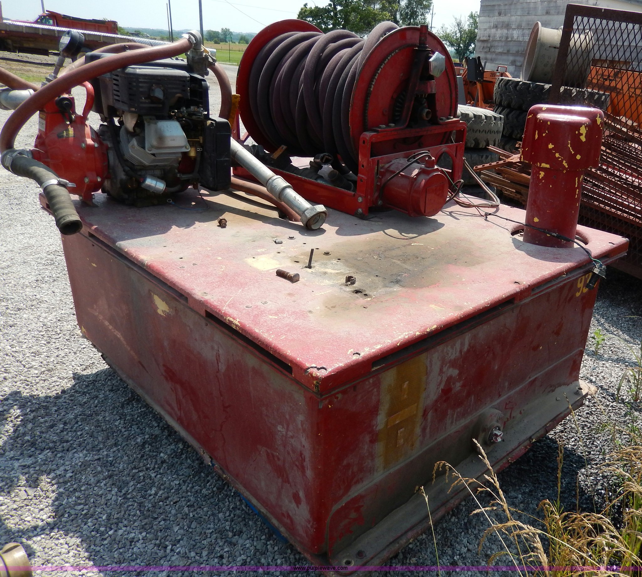 Purple Wave is selling a used Tools in Kansas. This item is a 300 gallon fiberglass tank with the following: Electric reel, Approximately 200' of hose, Briggs & Stratton 9 HP gas engine, Davey pump, Model 932540-0, Serial 0413472077
