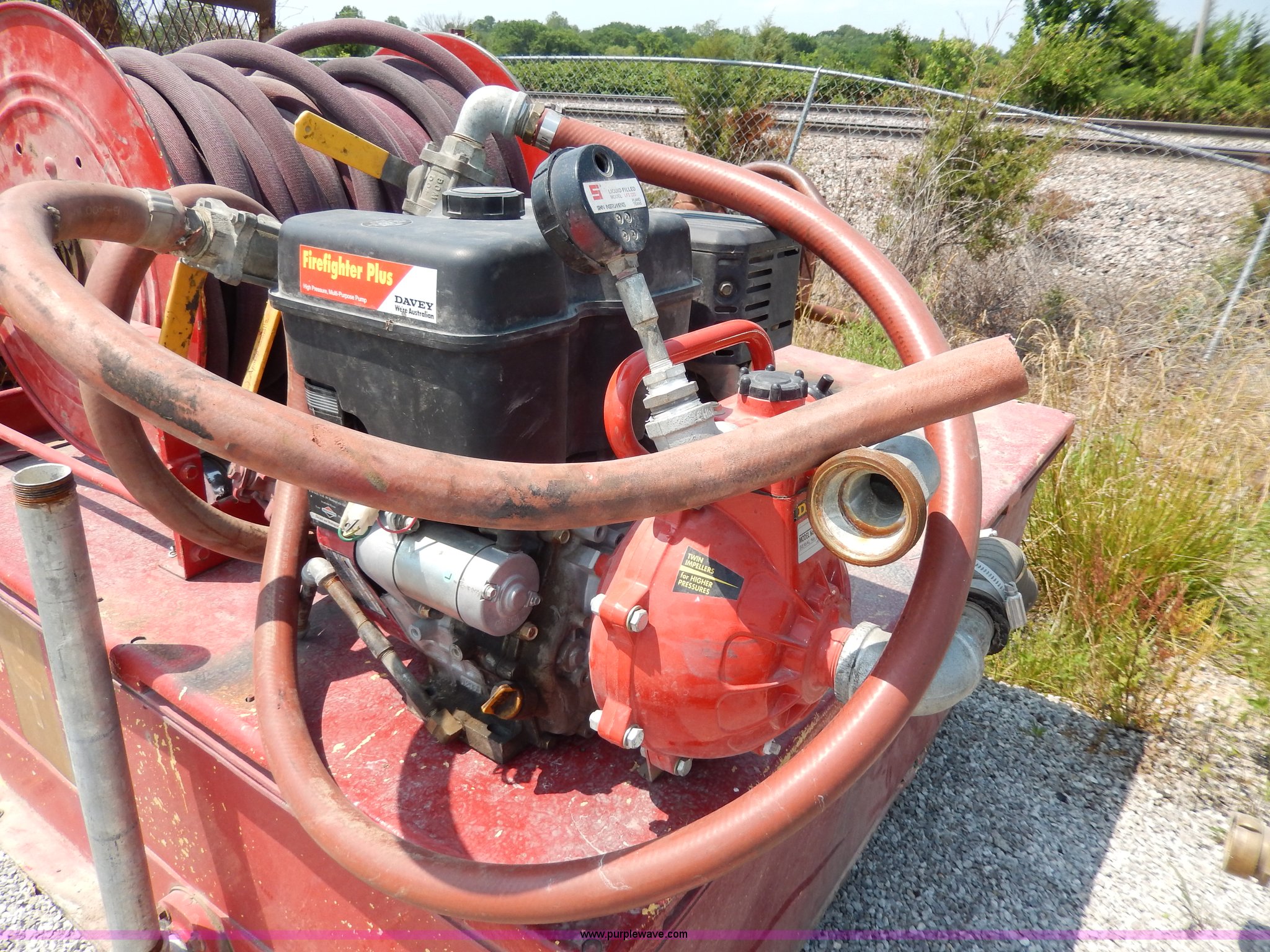 300 gallon fiberglass tank. Electric reel Approximately 200' of hose, Briggs & Stratton 9 HP gas engine, Davey pump Model 932540-0, Serial 0413472077. Shipping quotes available. Linn County Fire Department. 701 E 14th. Pleasanton, KS 66075