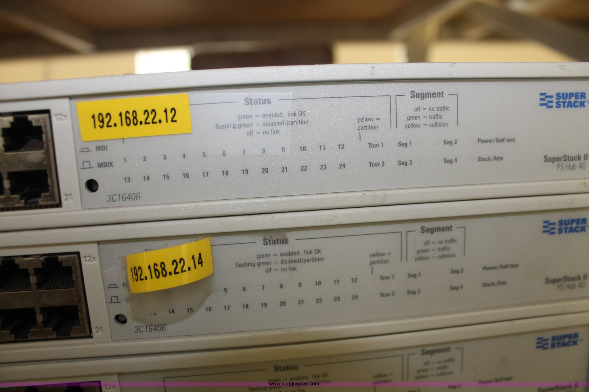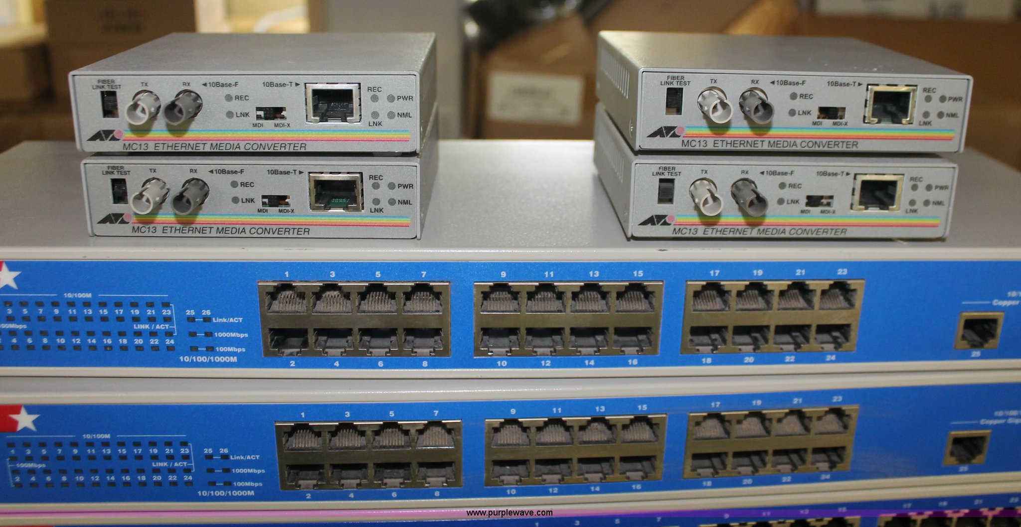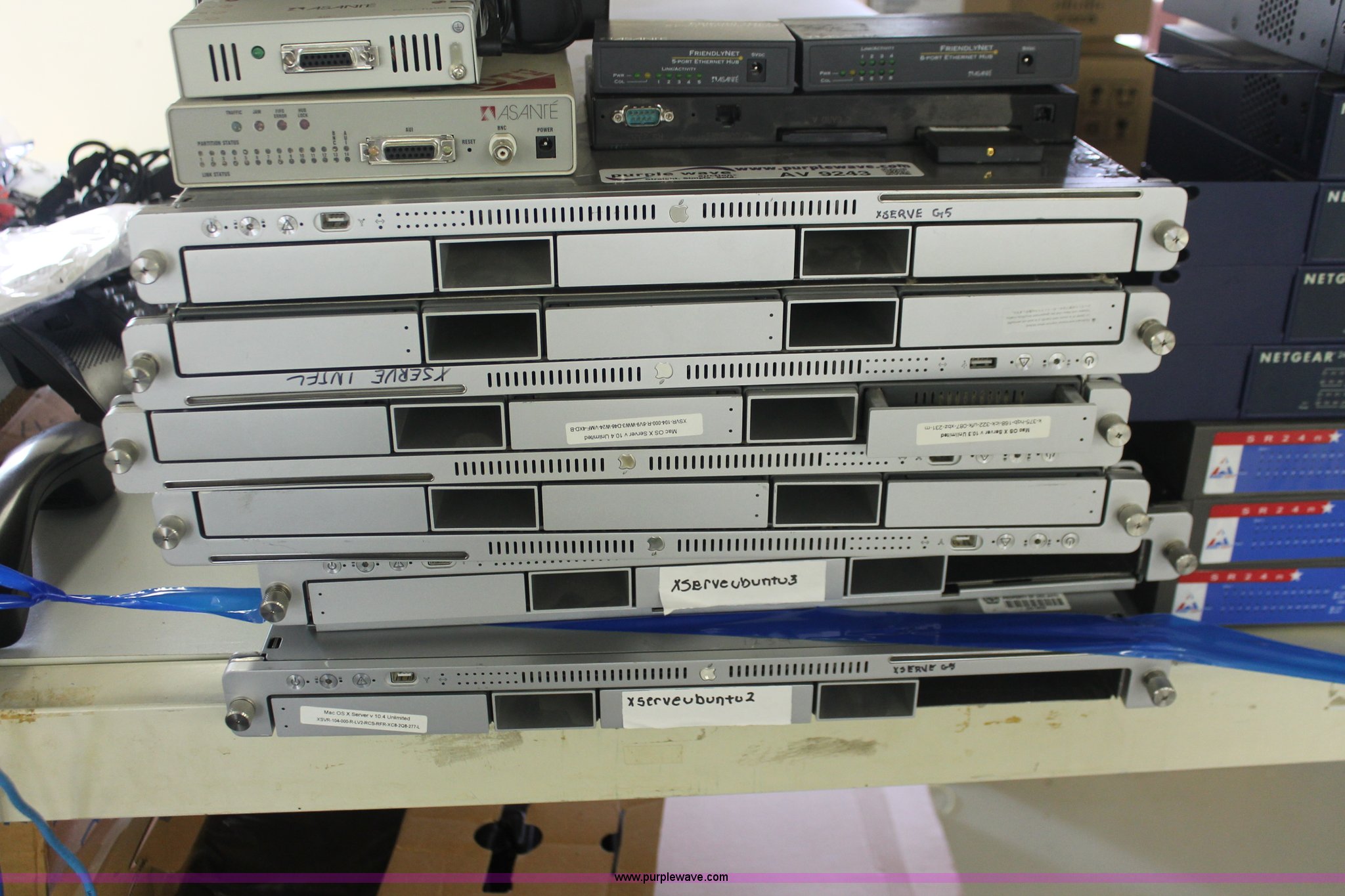 Purple Wave is selling a used Electronics in Kansas. This item is a Assorted servers and switches with the following: (6) Apple A1068 servers, (5) Netgear 24 port switches, (10) Amer.com SR24 switches, (4) 3com Super Stack 24 port switches and more
