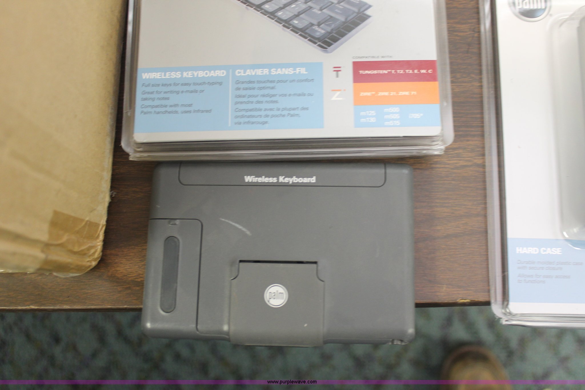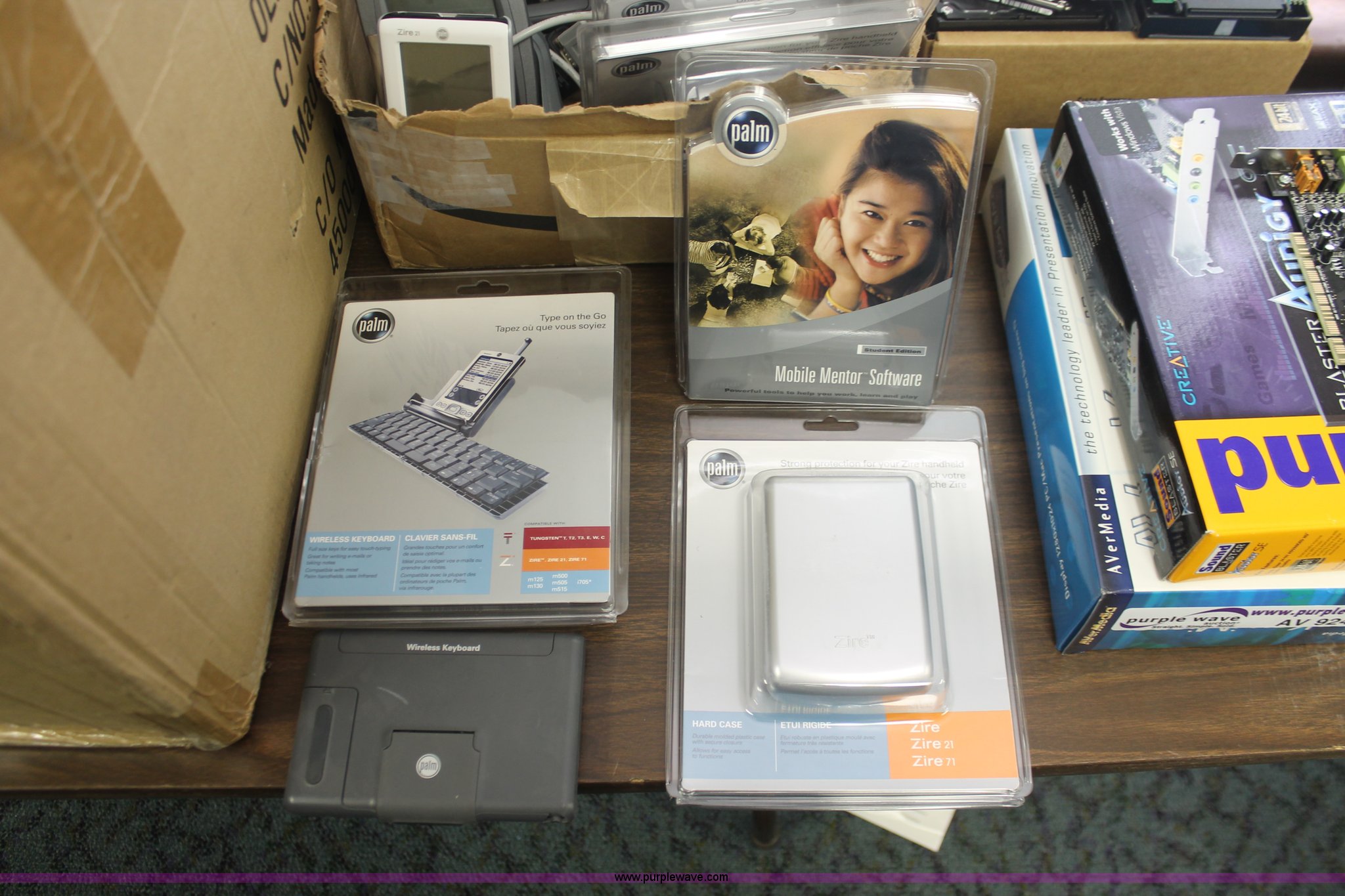 Purple Wave is selling a used Computers in Kansas. This item is a Assorted Palm accessories with the following: (8) Palm Zire hard cases, (3) type on the go wireless keyboards, Palm Zire 21, Palm Symbol, Palm Tungsten and more