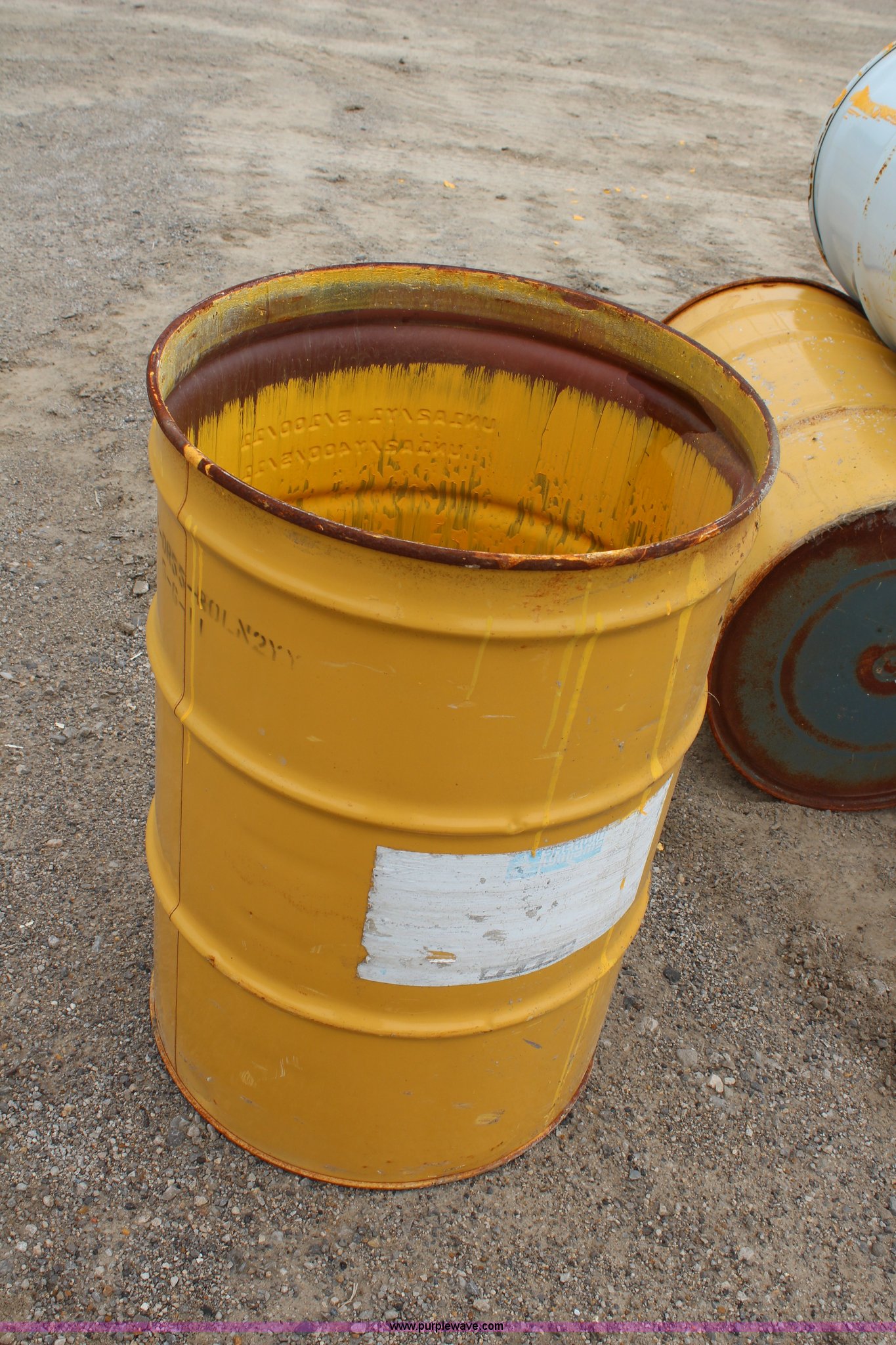 Purple Wave is selling a used Tools in Kansas. This item is a (10) 55 gallon barrels with the following: Used