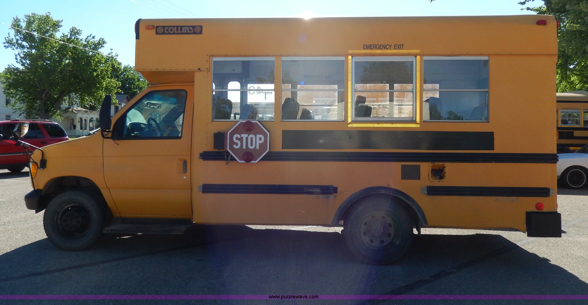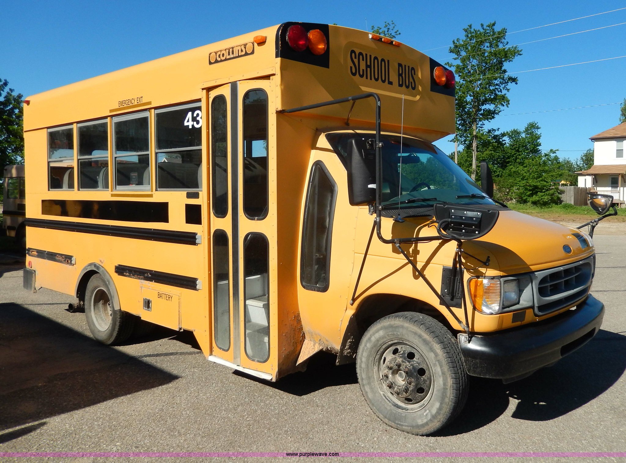 Purple Wave is selling a used Bus in Kansas. This item is a 1999 Ford Collins school bus with the following: 164,931 miles on odometer, 7.3L V8 turbo diesel engine, Automatic transmission, Heat, Manual windows and locks, 24 passenger capacity, Vinyl interior, Seat belts, 225/75R16 tires, Rust, Paint peeling, Stereo missing, Unit# 43