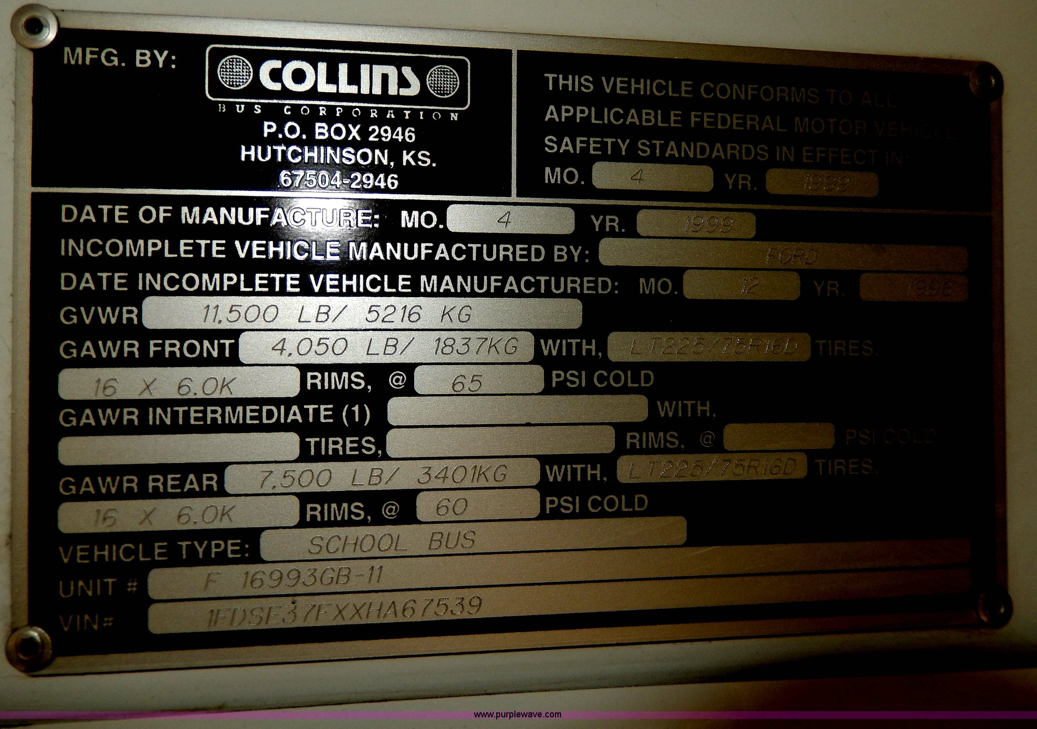 Take a look at this used 1999 Ford Collins school bus being sold on July 9th, 2013 in the SOLD! July 9 Government Auction made by Ford. Take a look at all of the item information below or take a look at similar auctions for Transit Vehicles.