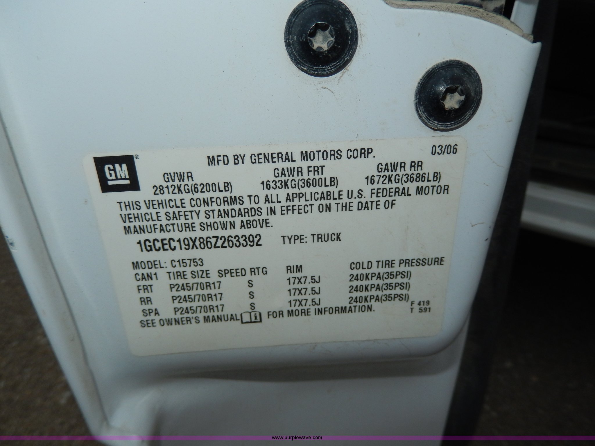 Purple Wave is selling a used Passenger Vehicle in Kansas. This item is a 2006 Chevrolet Silverado 1500 Extended Cab pickup truck with the following: 151,116 miles on odometer, 4.3L V6 OHV 12V gas engine, Automatic transmission, AC and heat, Tilt, Cruise, AM/FM, Manual windows and locks, Cloth interior, Long bed, Receiver hitch, Trailer wiring, 265/70R17 tires, Exterior cosmetic damage, Scratches and dents, Rust, Check engine light on, Front bumper damage