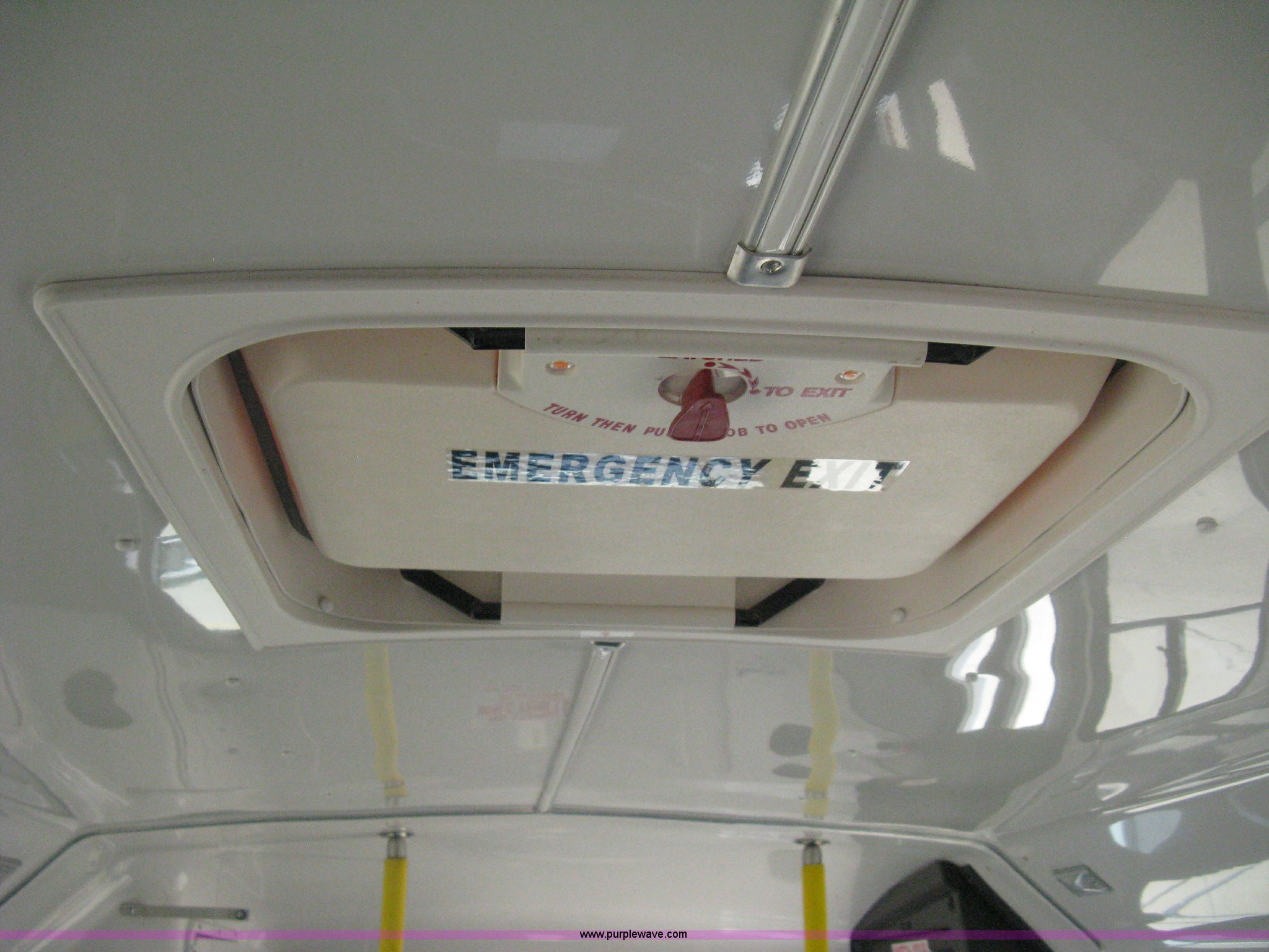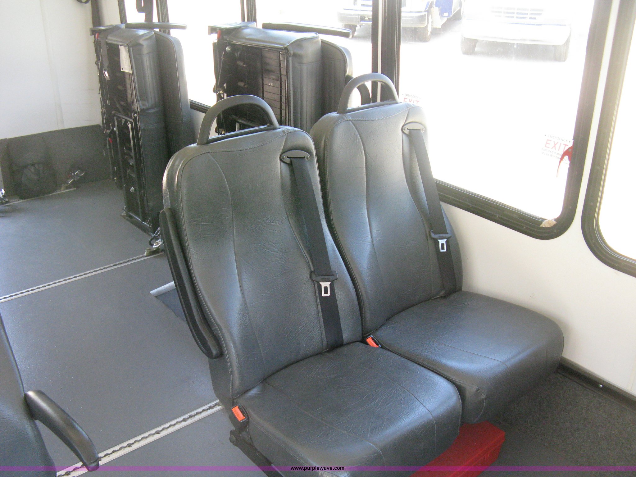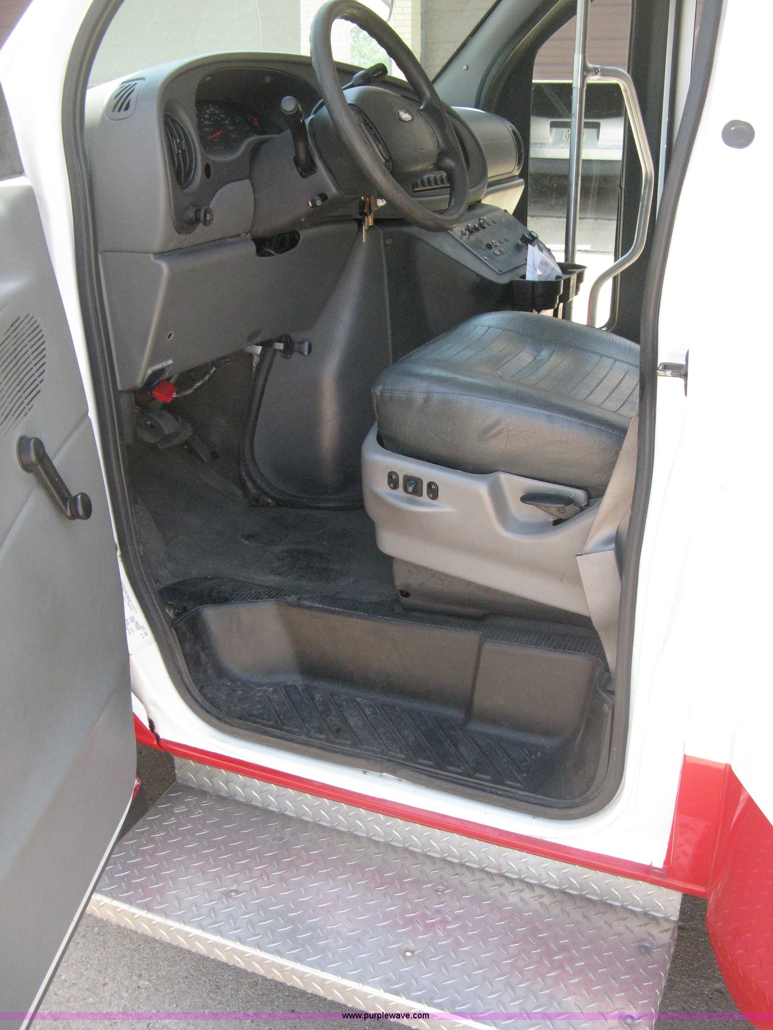 Purple Wave is selling a used Bus in Kansas. This item is a 2005 Ford E350 Aero Tech transit bus with the following: 123,216 miles on odometer, 6.8L V10 SOHC 20V gas engine, Automatic transmission, AC and heat, Tilt, Cruise, AM/FM/cassette, Manual windows and locks, Power driver's seat, Vinyl interior, Powered passenger door, Tinted passenger windows, 10 passenger capacity, (2) fold up rear bench seats, Floor tie-down security track, Rear emergency egress, Roof emergency egress, Ricon wheel chair lift, Tethered remote, Mor/ryde rubber suspension system, LT225/75R16 tires, Service records available, GVWR 10,700 lbs, Unit# 7