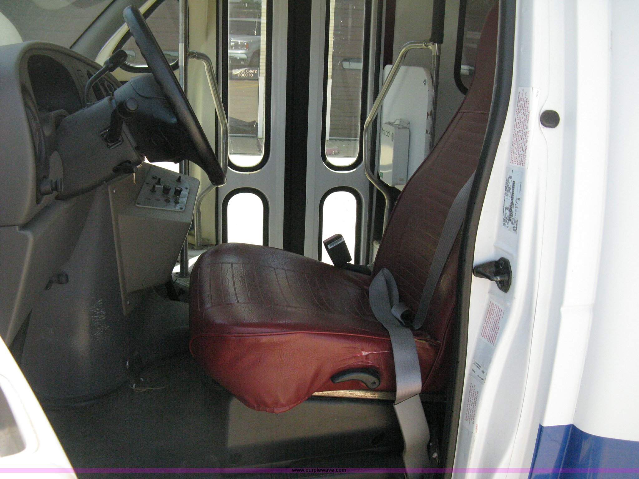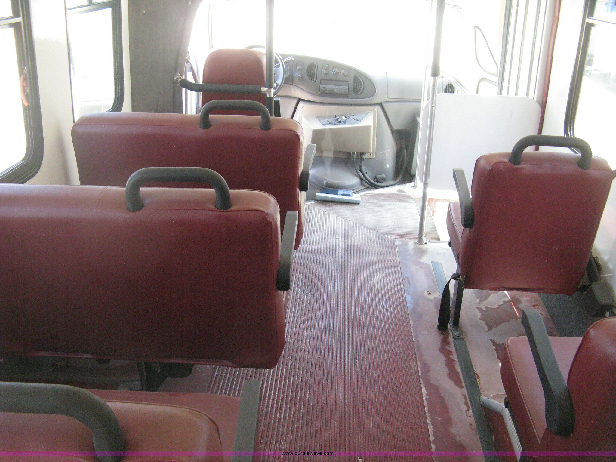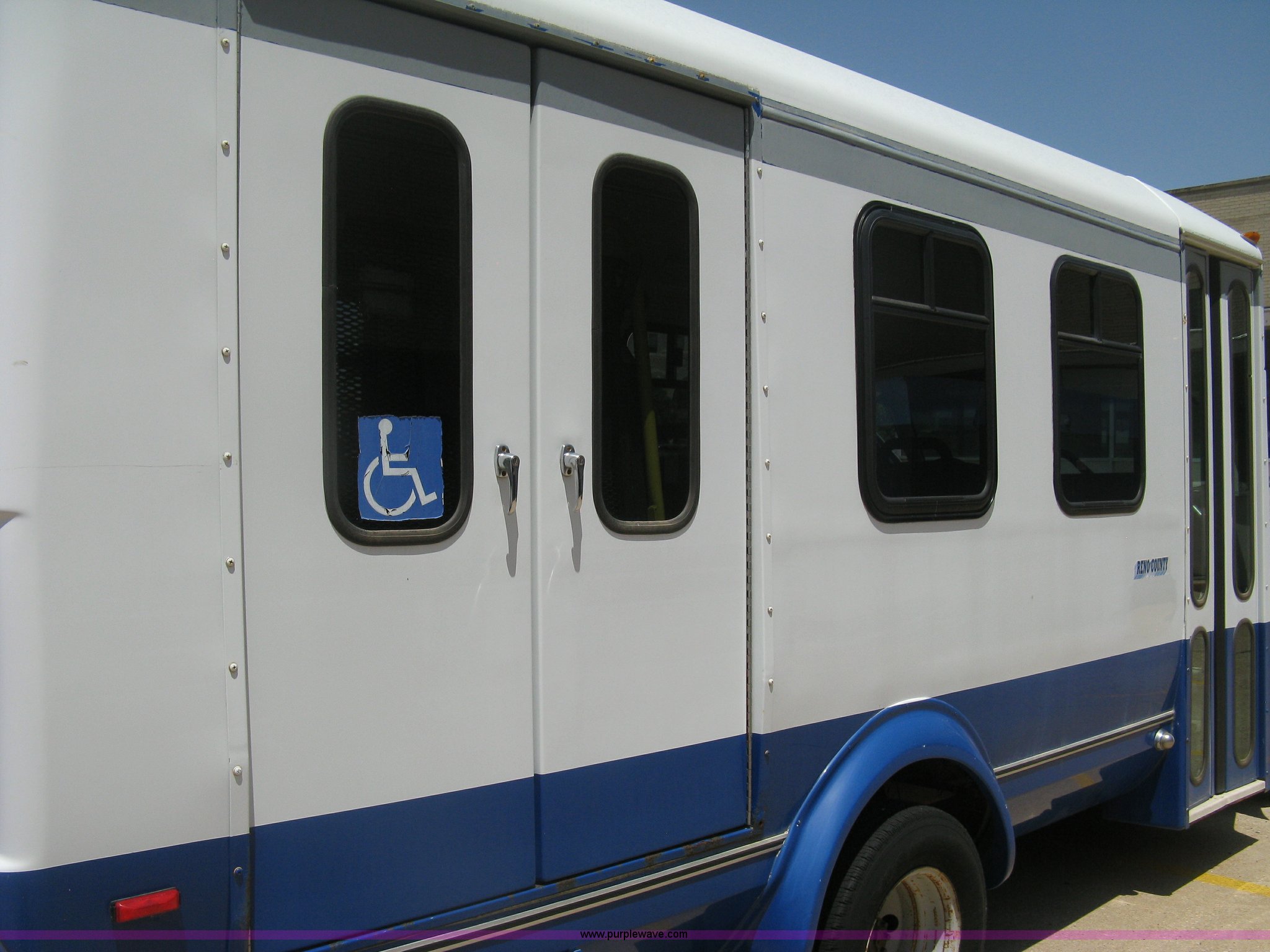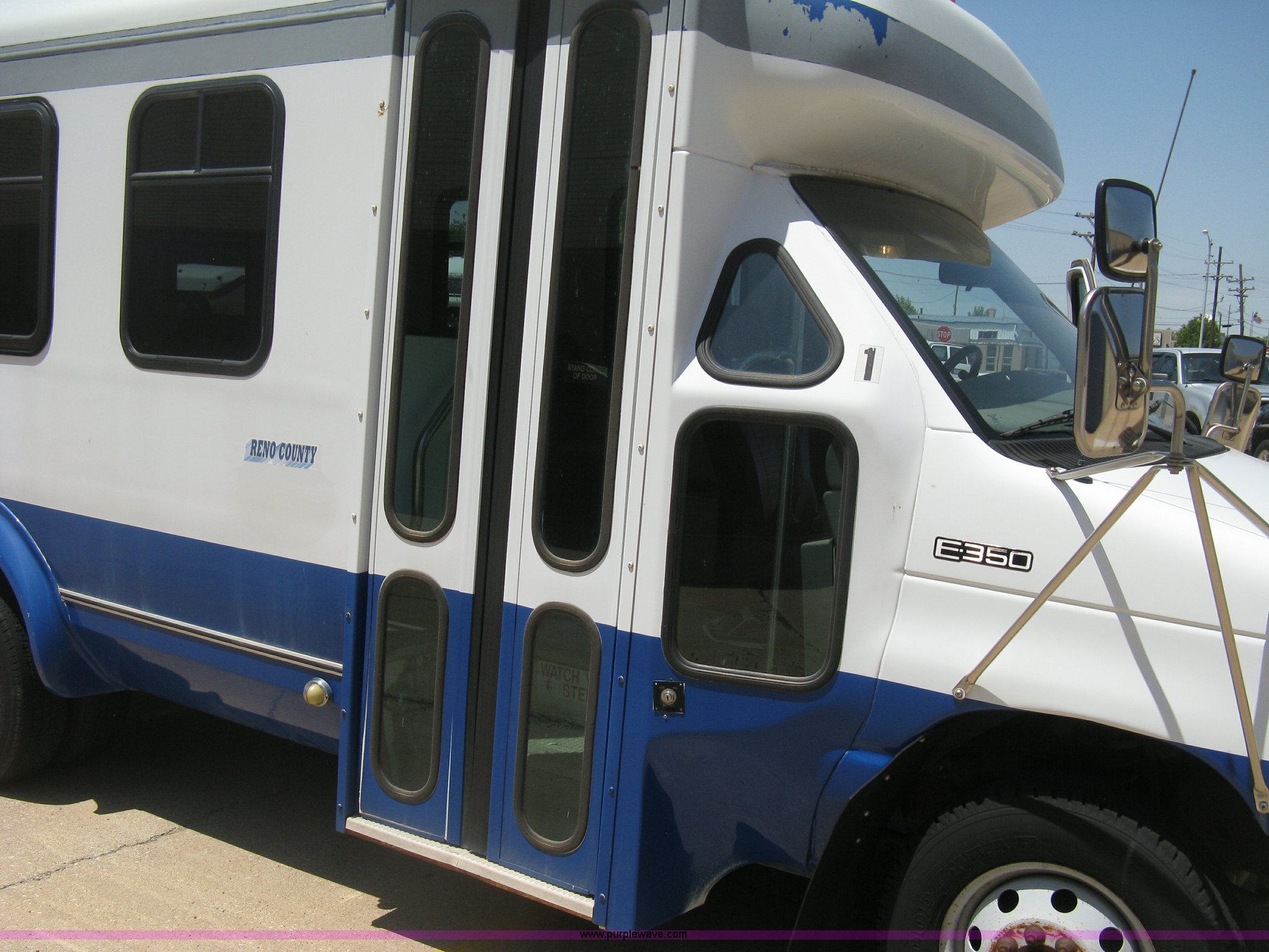 Purple Wave is selling a used Bus in Kansas. This item is a 1998 Ford E350 Eldorado transit bus with the following: 100,891 miles on odometer, 6.8L V10 SOHC 20V gas engine, Automatic transmission, AC and heat, Tilt, Cruise, AM/FM, Manual windows and locks, Vinyl interior, Power passenger door, Tinted passenger windows, Eight passenger capacity, Stand up passenger hand rail, Floor tie-down security track, Rear emergency egress, Ricon wheel chair lift, Tethered remote, Service records available, LT225/75R16 tires, GVWR 10,700 lbs, Recently replaced batteries