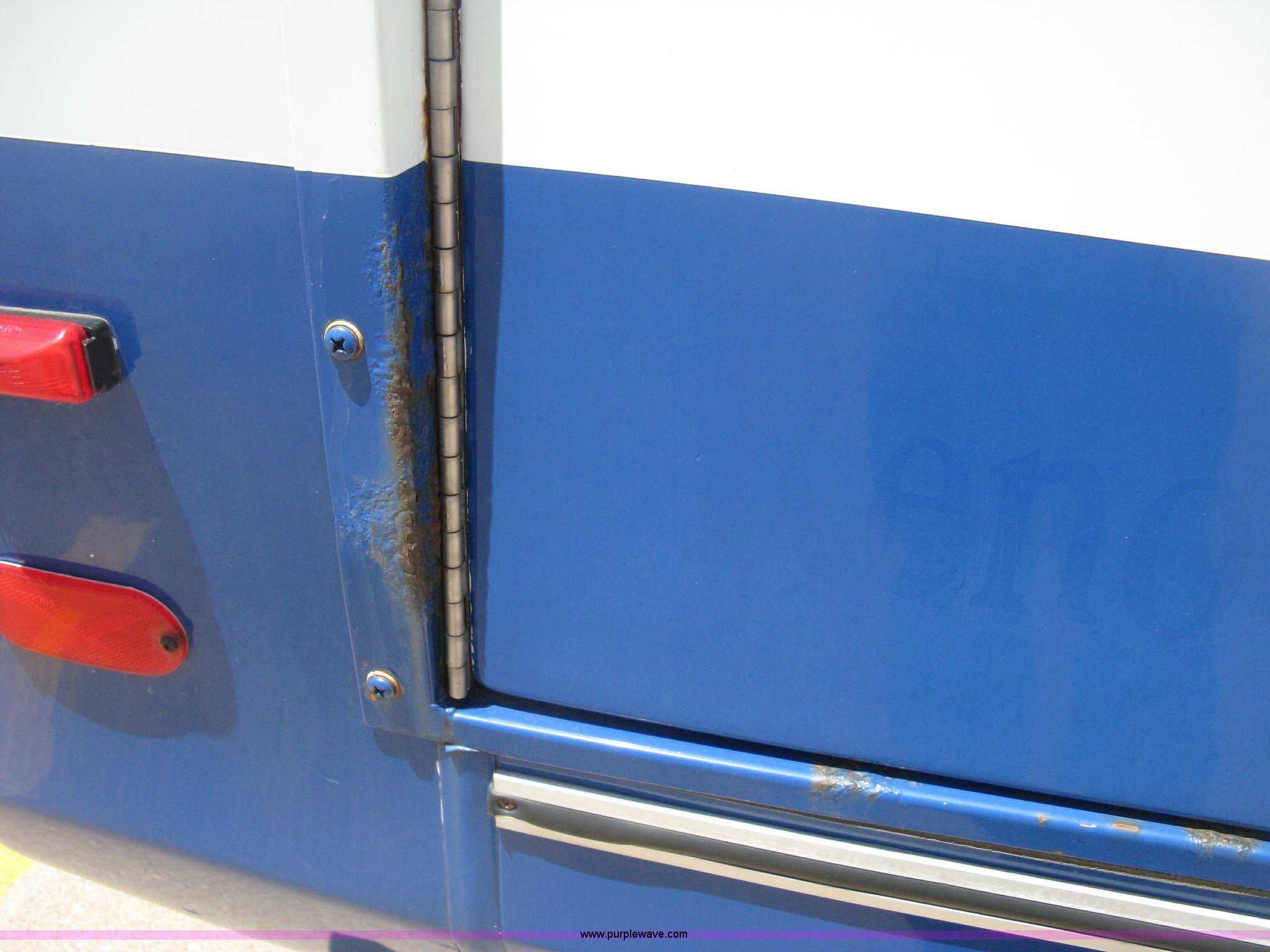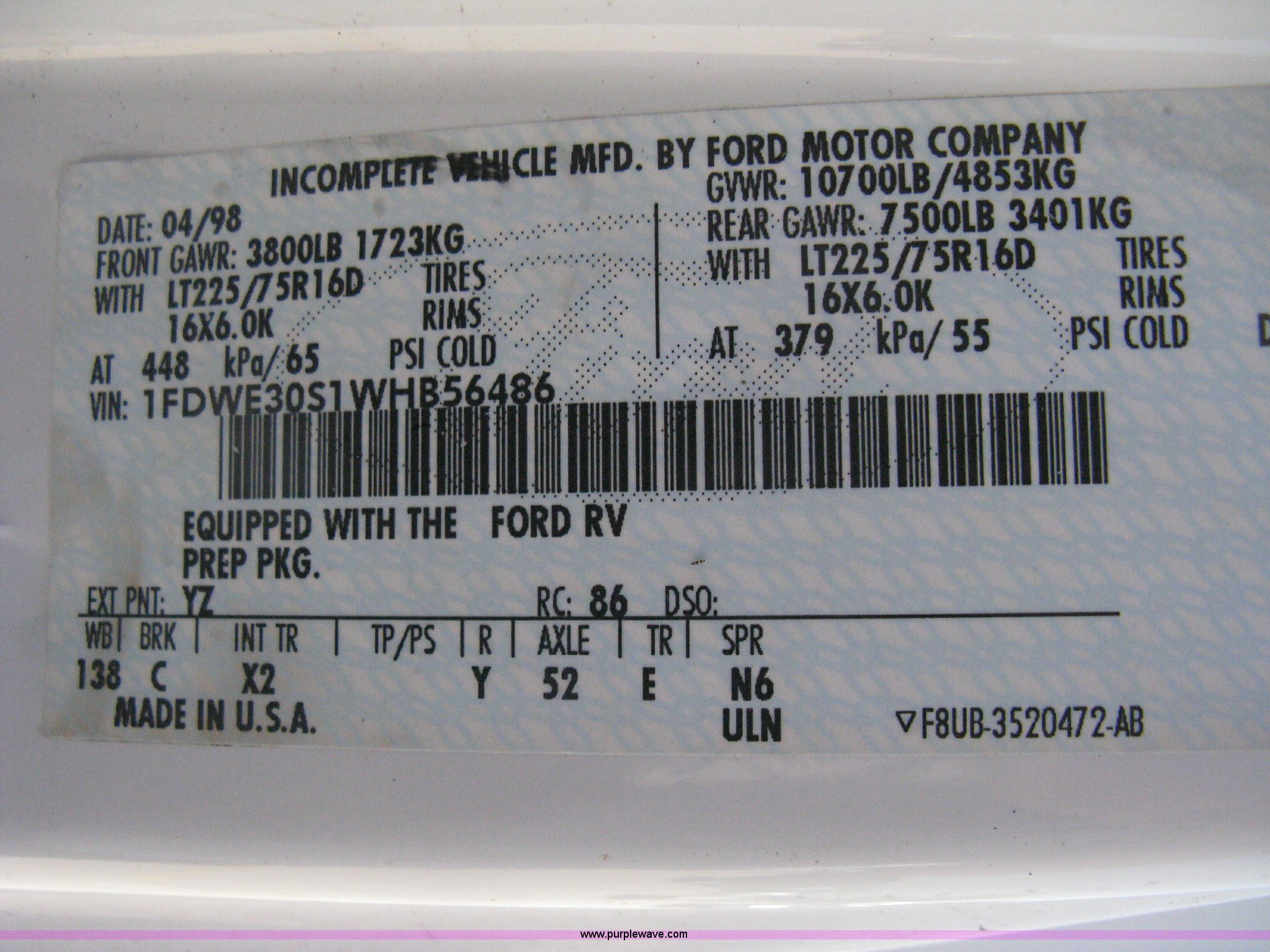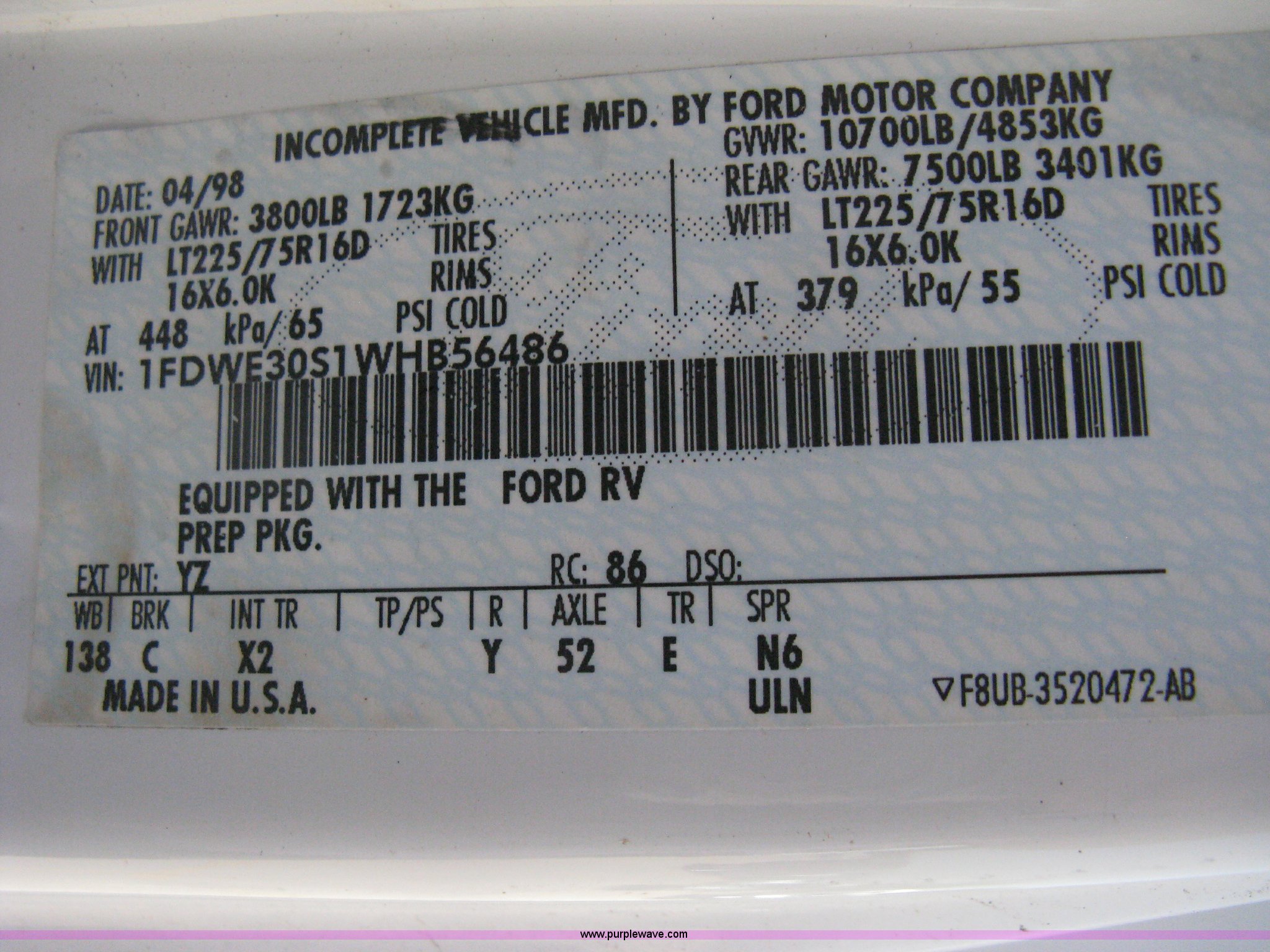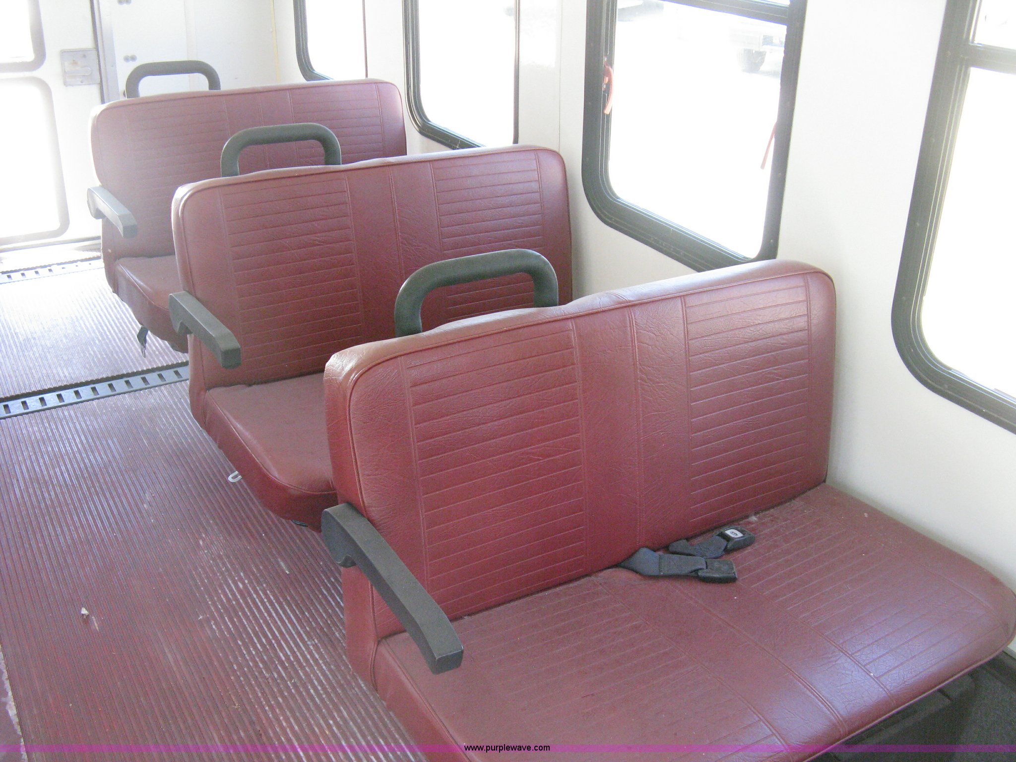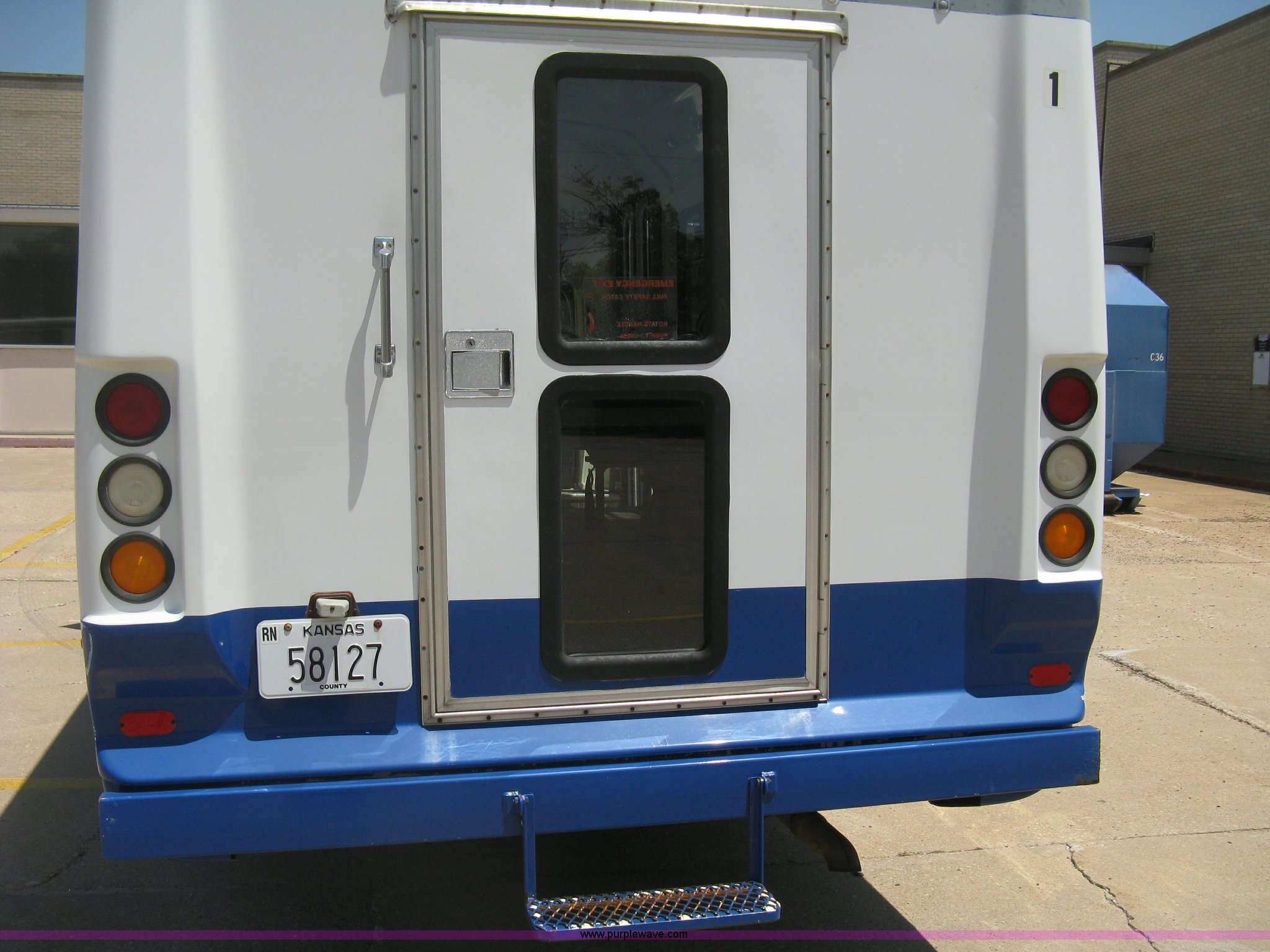 Purple Wave is selling a used Bus in Kansas. This item is a 1998 Ford E350 Eldorado transit bus with the following: 100,891 miles on odometer, 6.8L V10 SOHC 20V gas engine, Automatic transmission, AC and heat, Tilt, Cruise, AM/FM, Manual windows and locks, Vinyl interior, Power passenger door, Tinted passenger windows, Eight passenger capacity, Stand up passenger hand rail, Floor tie-down security track, Rear emergency egress, Ricon wheel chair lift, Tethered remote, Service records available, LT225/75R16 tires, GVWR 10,700 lbs, Recently replaced batteries