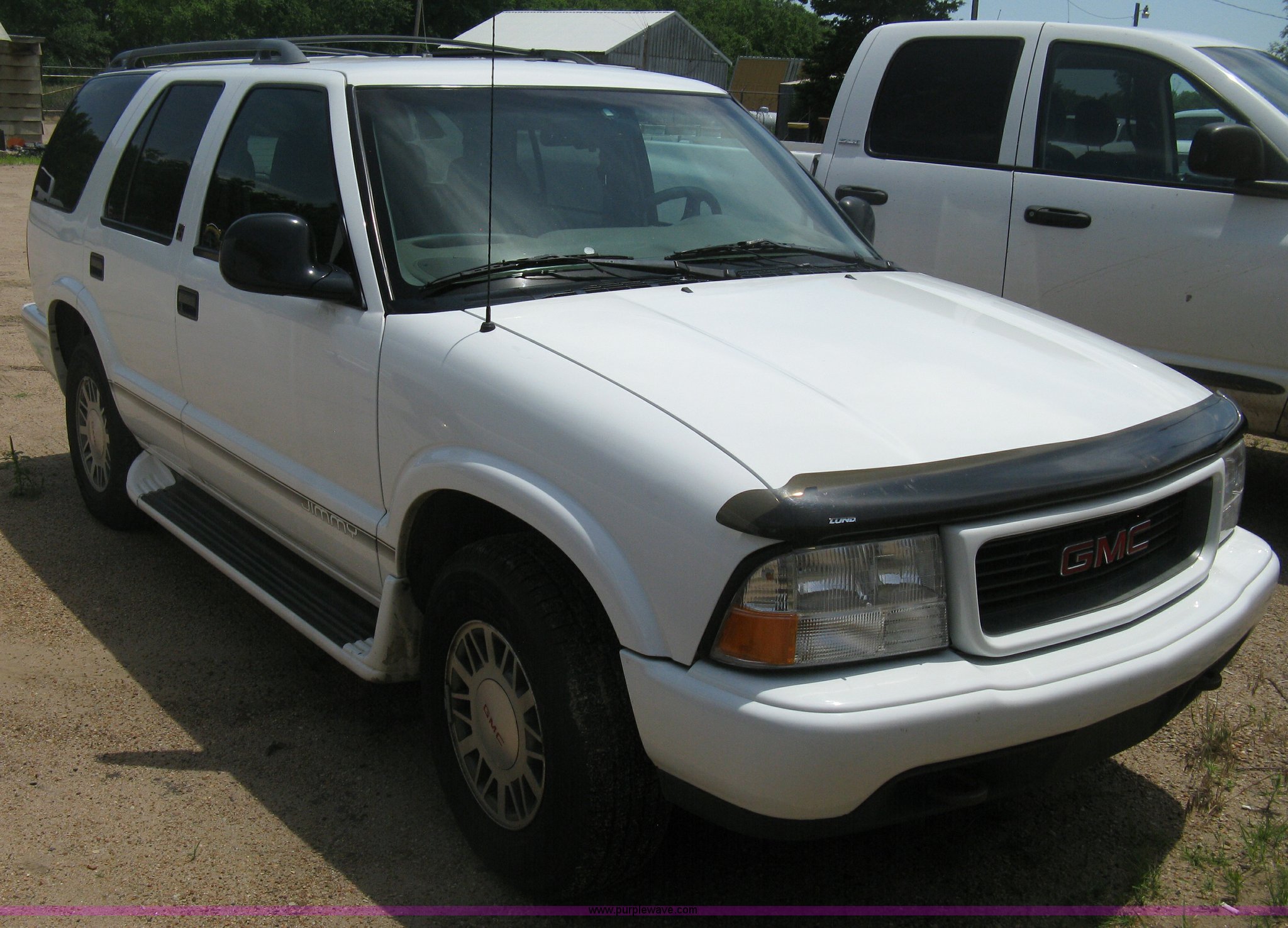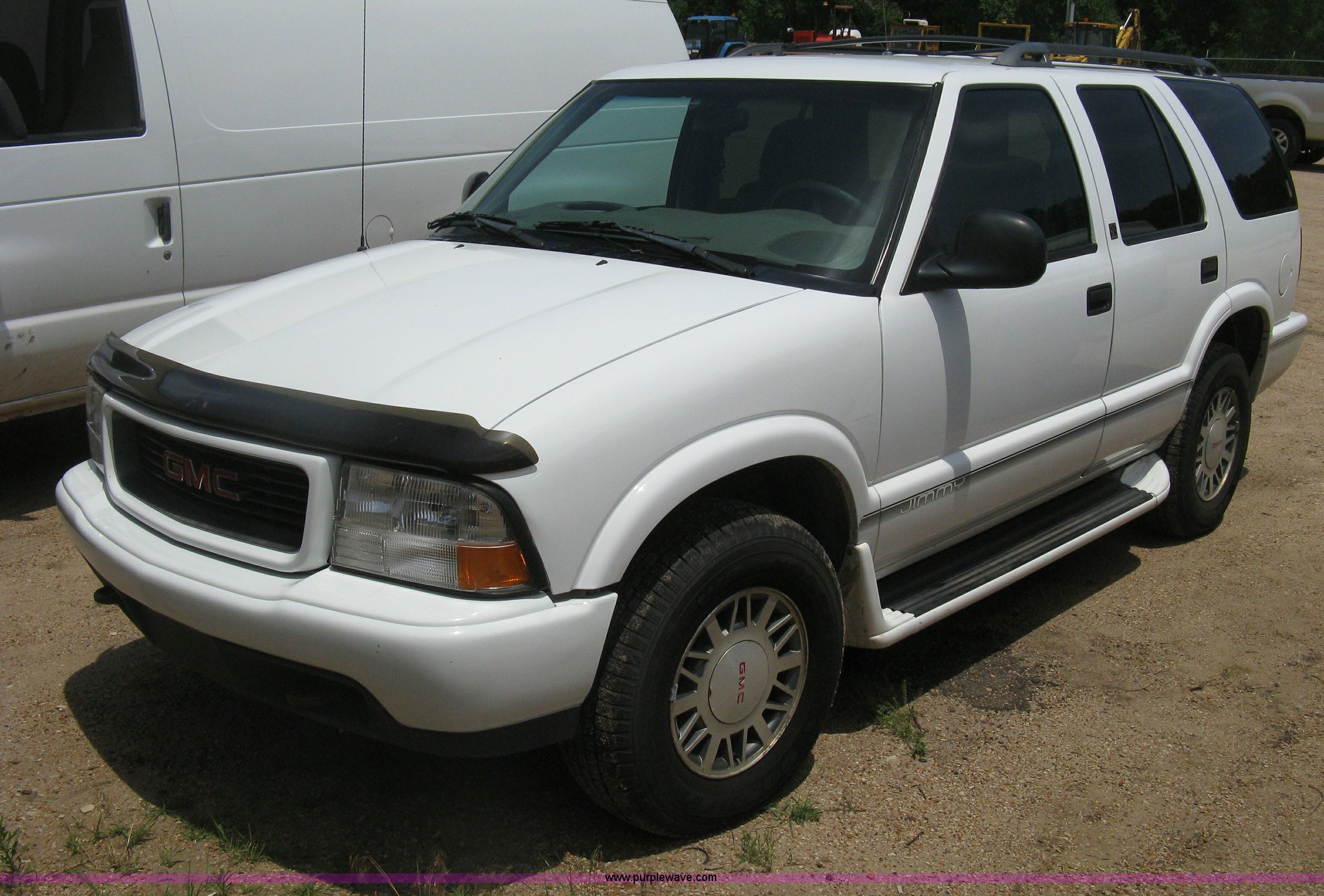 Purple Wave is selling a used Passenger Vehicle in Kansas. This item is a 1998 GMC Jimmy SL SUV with the following: 135,637 miles on odometer, 4.3L V6 OHV 12V gas engine, Automatic transmission, Four wheel drive, AC and heat, Tilt, Cruise, AM/FM/cassette, Power windows, locks, mirrors, and seats, Tinted rear windows, Luggage rack, Roof port holes capped, P225/75R15 tires, Battery dead, Engine issues, Water coming through head, Spare tire