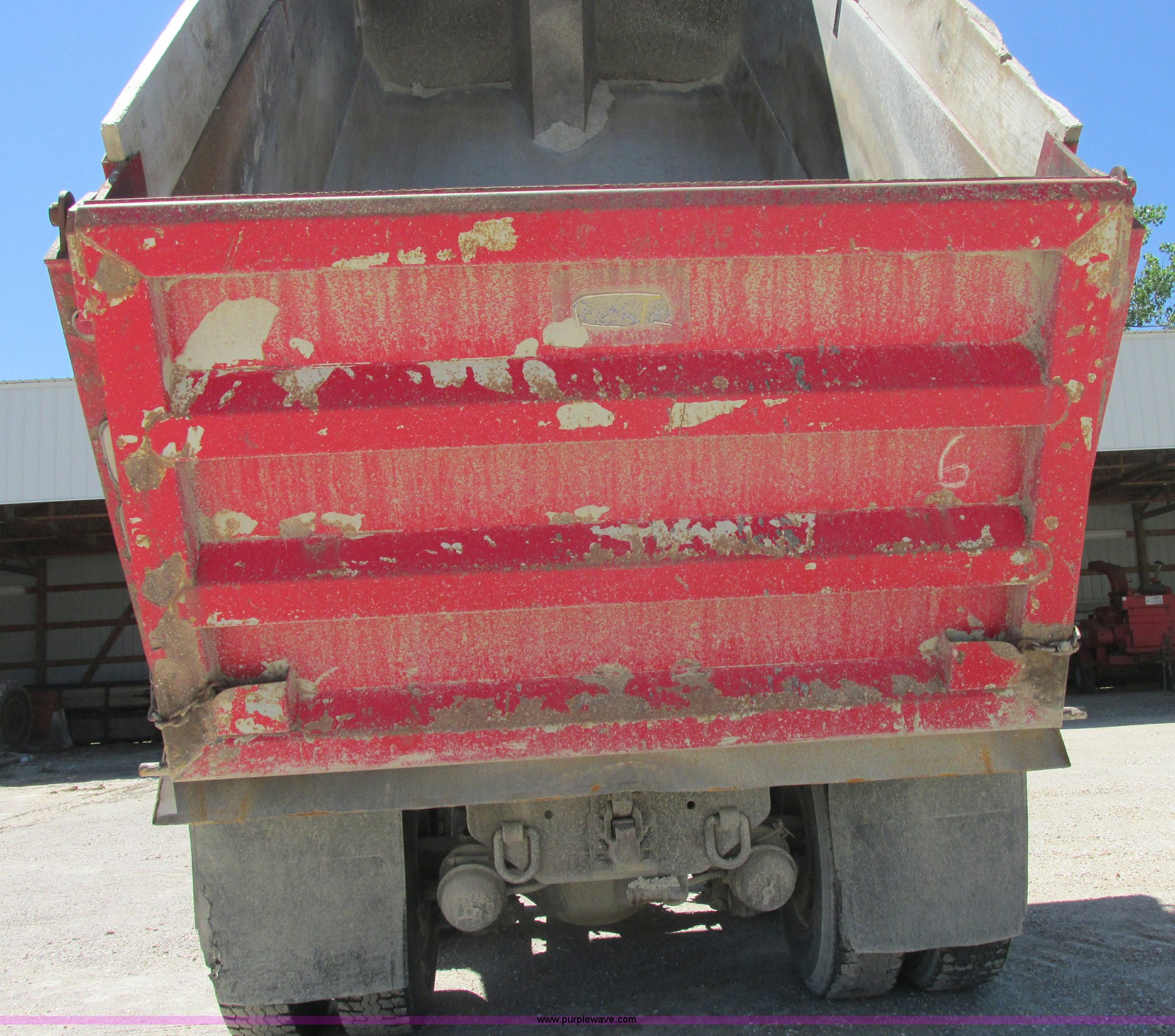 Wheeler dump bed. RollRite electric rollover tarp, Air operated end gate, Mud flaps, Bed safety props, Taillights, Side boards, Bed will be removed prior to auction, No hoist included. Item still in use. Item cannot be removed prior to July 26 2013. Shipping quotes available. Warren County. 706 Hidden Lakes. Warrenton, MO 63383