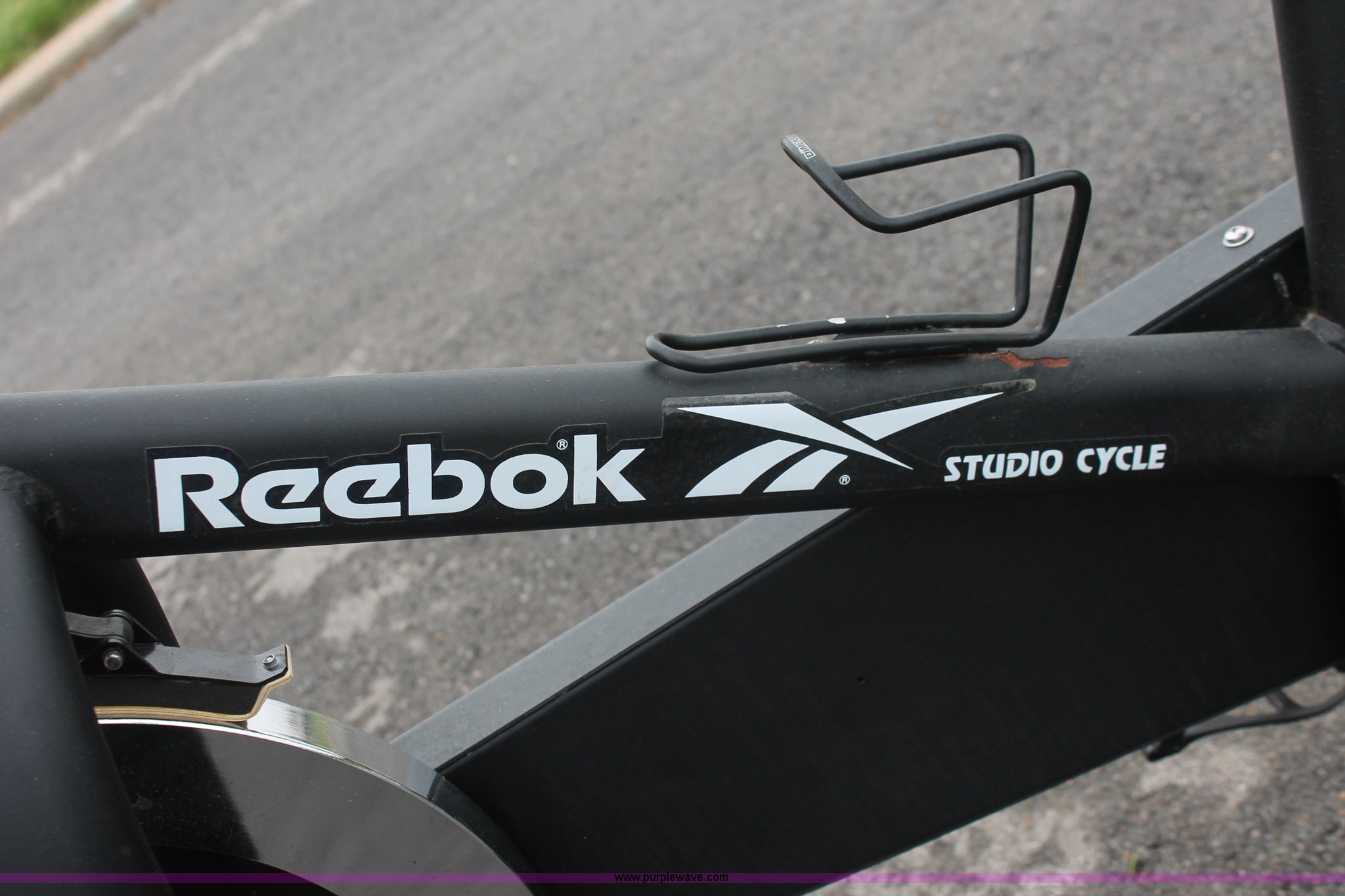 Reebok Studio Cycle stationary bicycle. Vertical and horizontal seat adjustment, Assorted toe clip pedals, Water bottle holster. Representative photo. Shipping quotes available. City of North Kansas City. North Kansas City, MO 64116