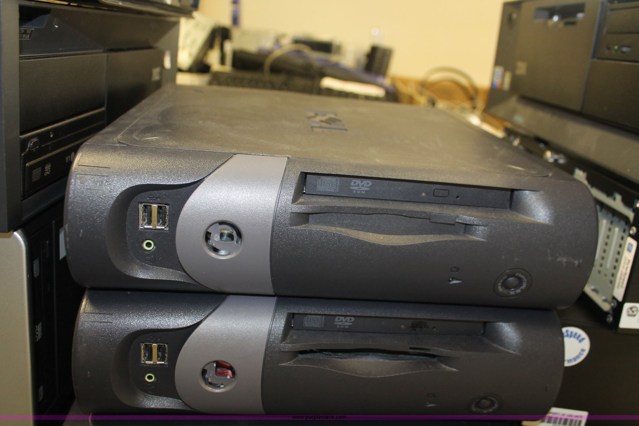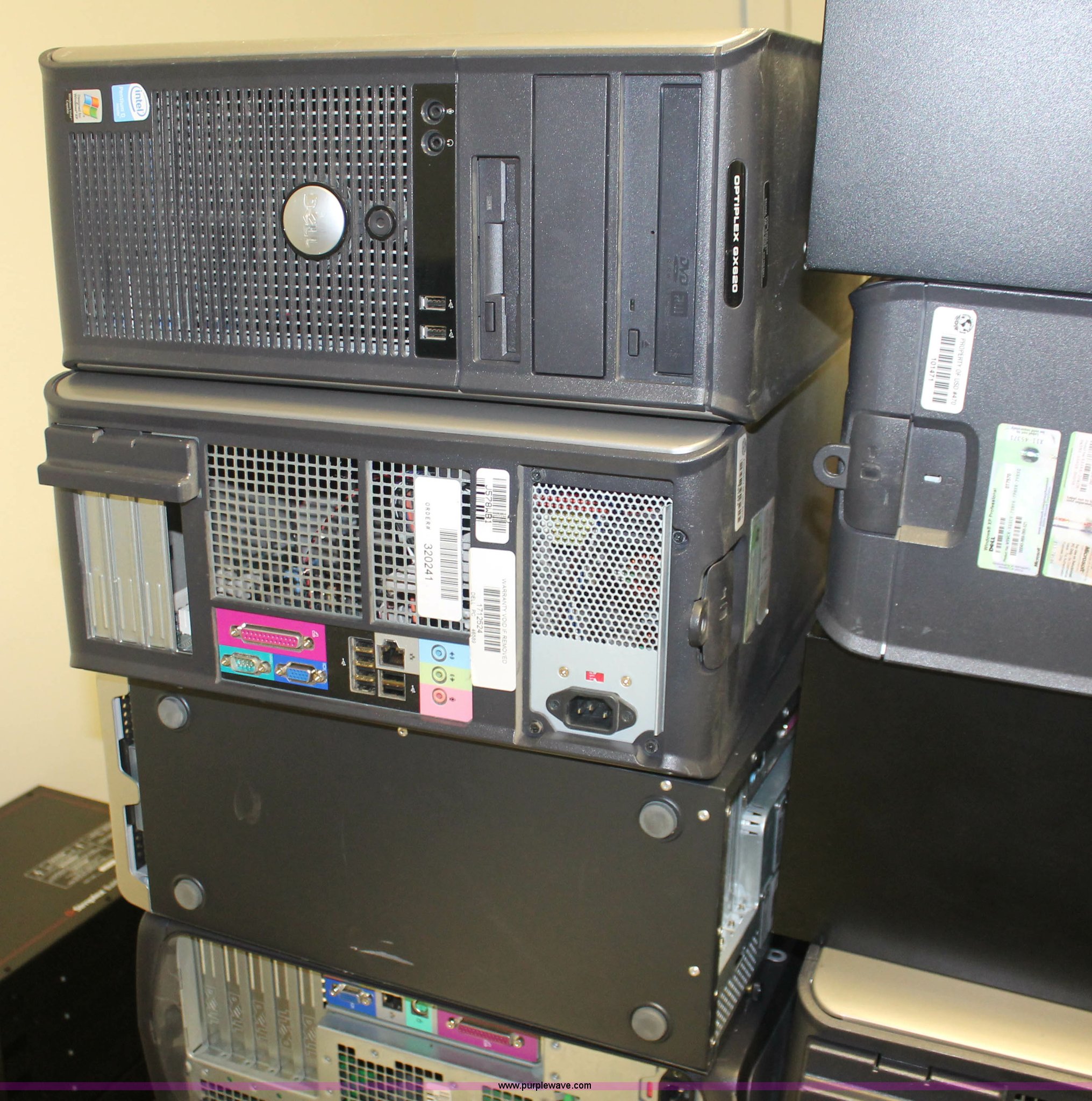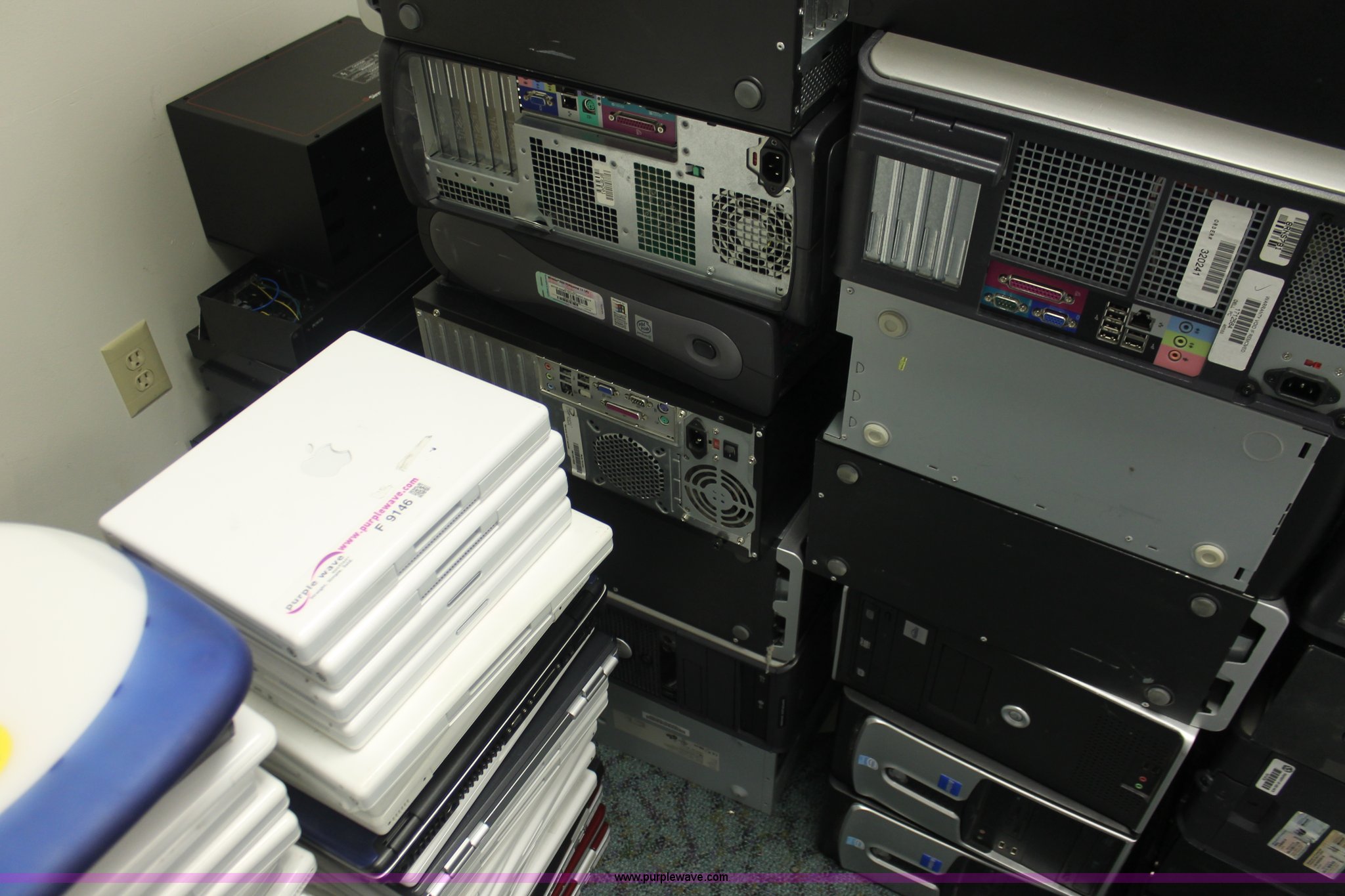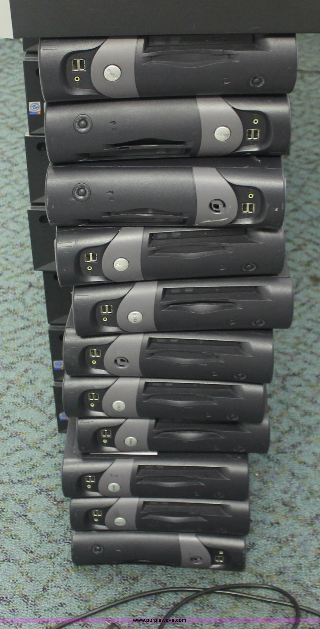 Purple Wave is selling a used Computers in Kansas. This item is a (75) assorted computer towers with the following: Brands include Dell, IBM, Powergistic, and more, Missing power cords, Unknown operating condition