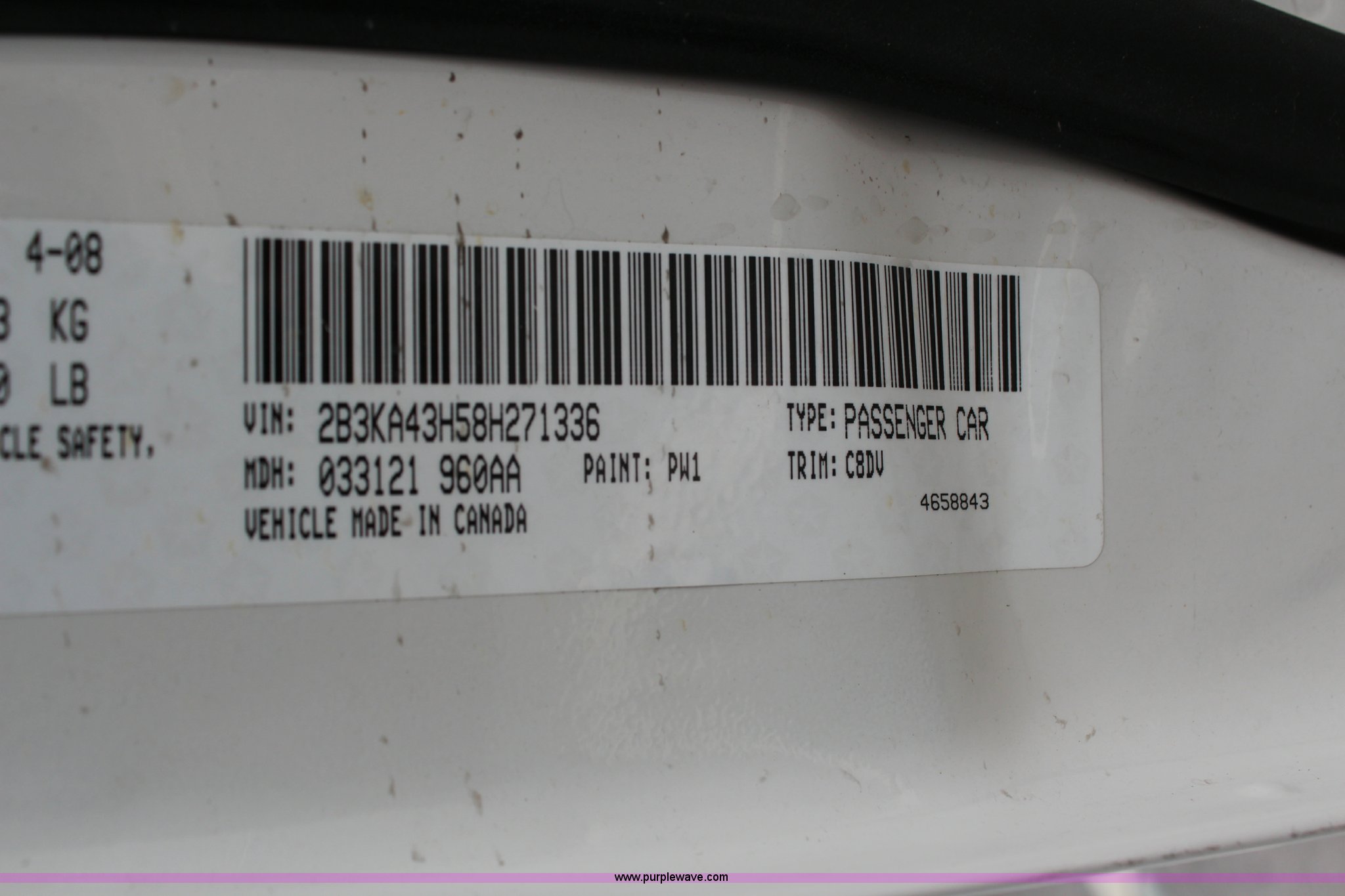 2008 Dodge Charger SE. 70,979 miles on odometer, 5.7L V8 OHV 16V gas engine, Automatic transmission, AC and heat, Tilt, Cruise, AM/FM/CD, Power windows, locks, mirrors, and seats, Cloth interior, 225/60R18 tires. 2B3KA43H58H271336. Shipping quotes available. Prairie Village Police Department. 7710 Mission Road. Prairie Village, KS 66208