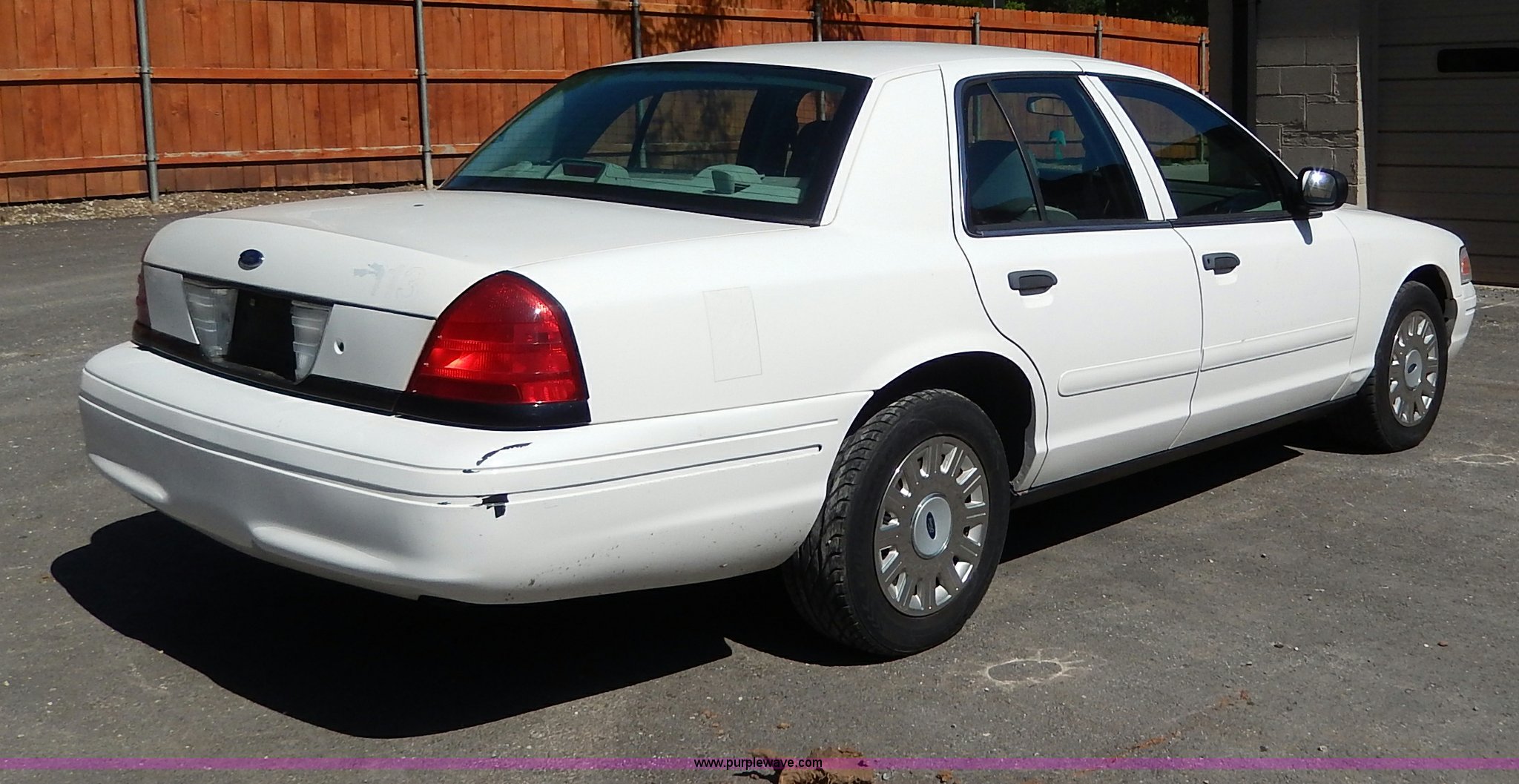 Purple Wave is selling a used Passenger Vehicle in Kansas. This item is a 2003 Ford Crown Victoria Police Interceptor with the following: 105,007 miles on odometer, 4.6L V8 SOHC 16V gas engine, Automatic transmission, AC and heat, Tilt, Cruise, AM/FM, Power windows, locks, mirrors, and seats, Cloth interior, 225/60R16 tires, Interior/exterior cosmetic damage, Cosmetic damage to dash, Cosmetic damage to rear bumper and trunk lid