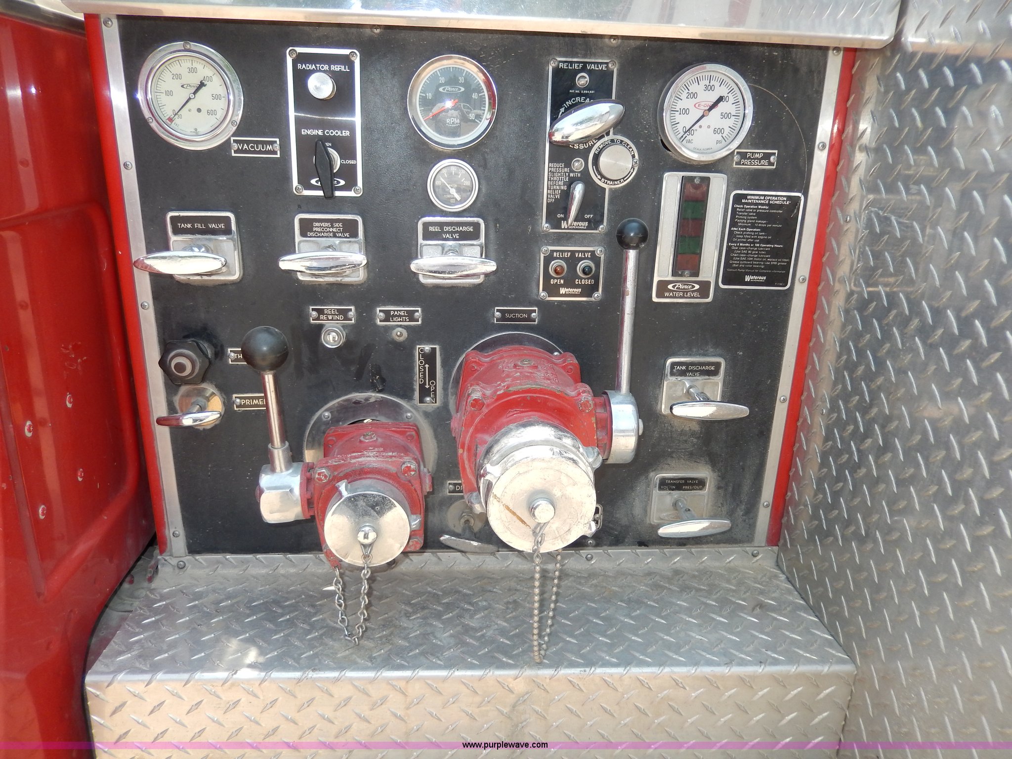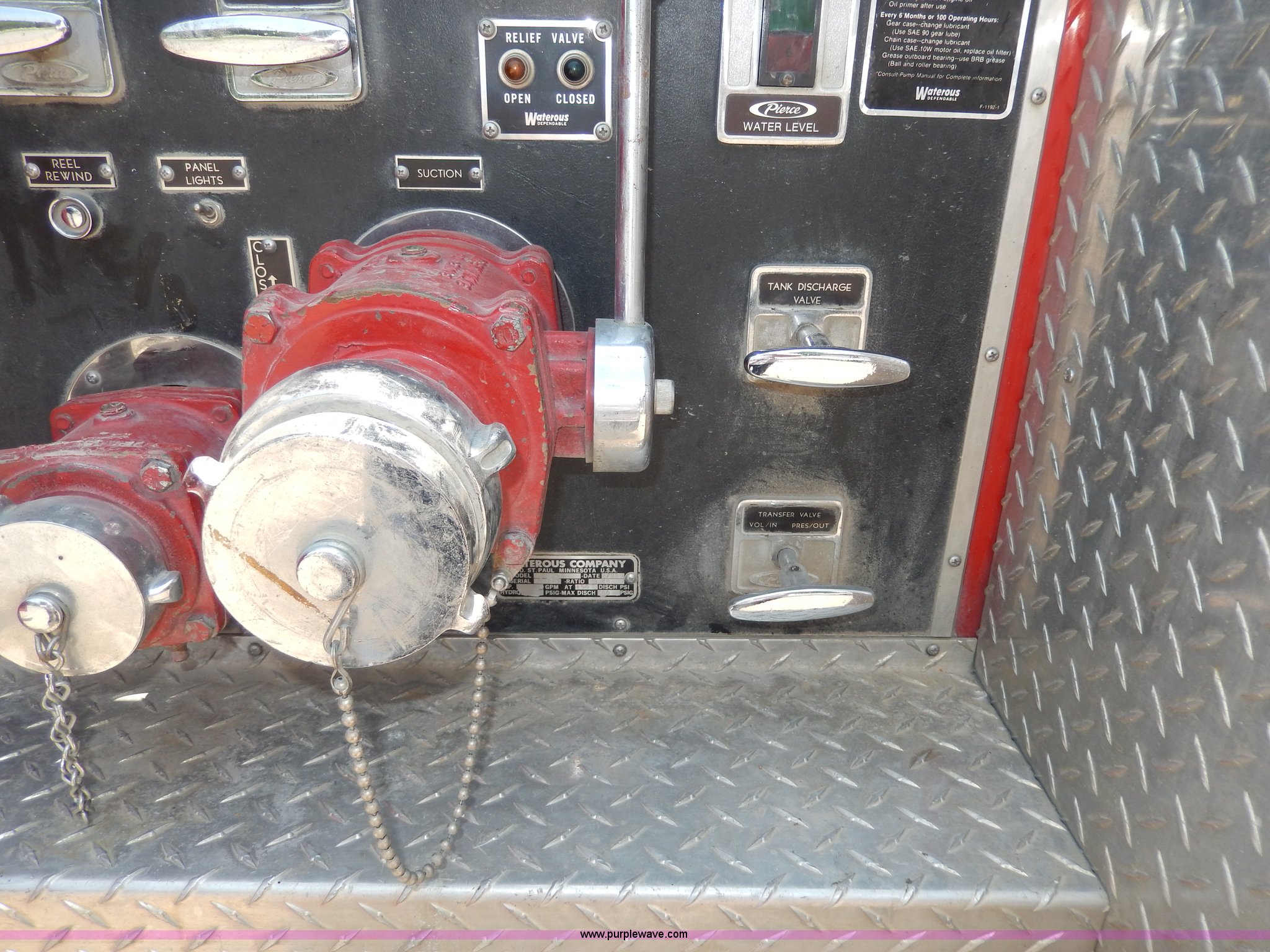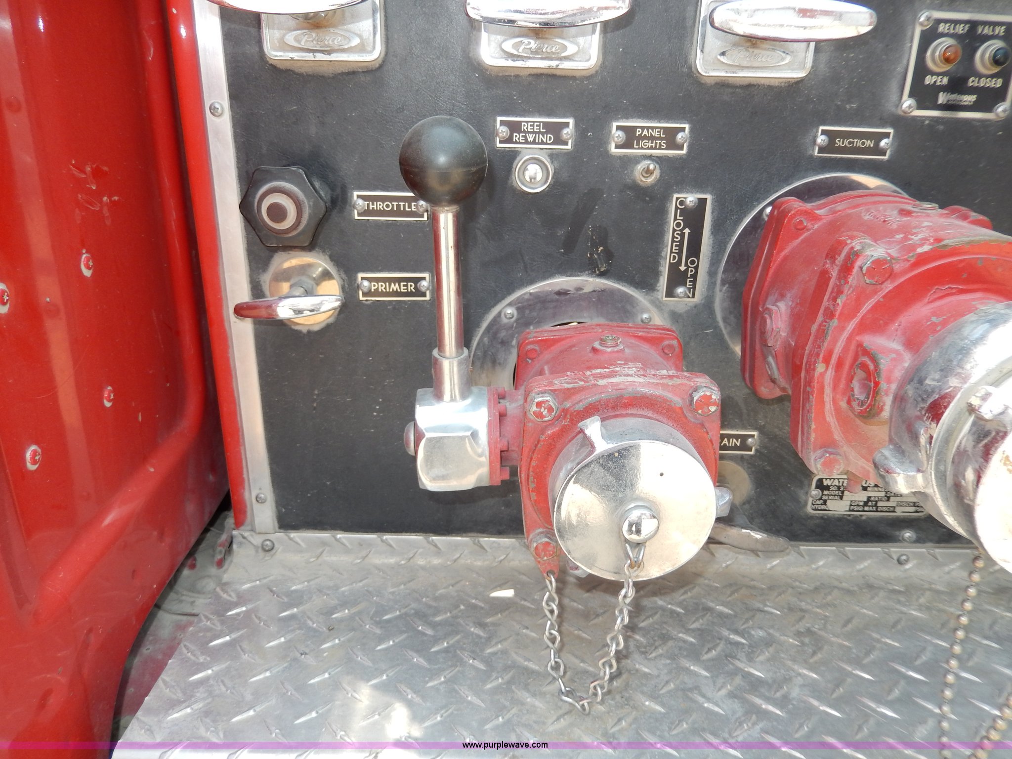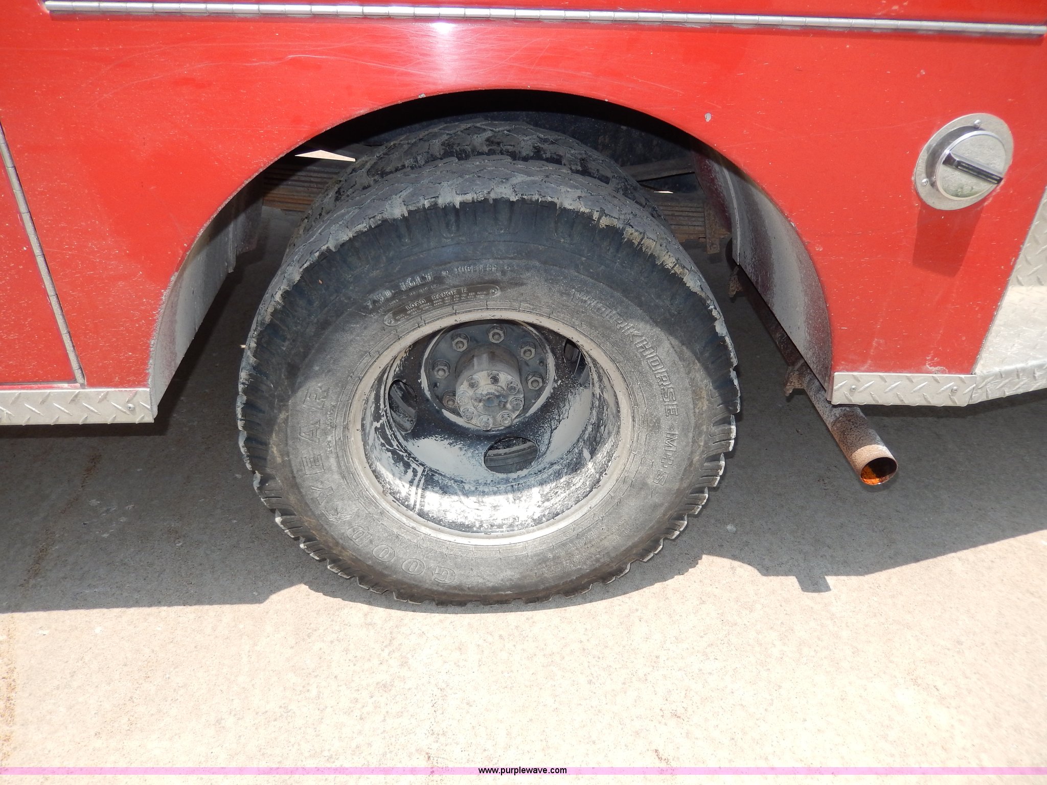 Purple Wave is selling a used Passenger Vehicle in Kansas. This item is a 1978 Chevrolet Custom Deluxe 30 mini pumper firetruck with the following: 112,426 miles on odometer, V8 gas engine, Four speed manual transmission, Four wheel drive, Heat, Manual windows and locks, Vinyl interior, Pierce CPK-3 water system, 400 gpm, 1,000 psig hydro, 600 psig discharge, Serial 54173, (2) 8'L x 4" diameter suction hoses, Hose reel and hose, 7.50-16 tires, Contents are not included, Radio is not included