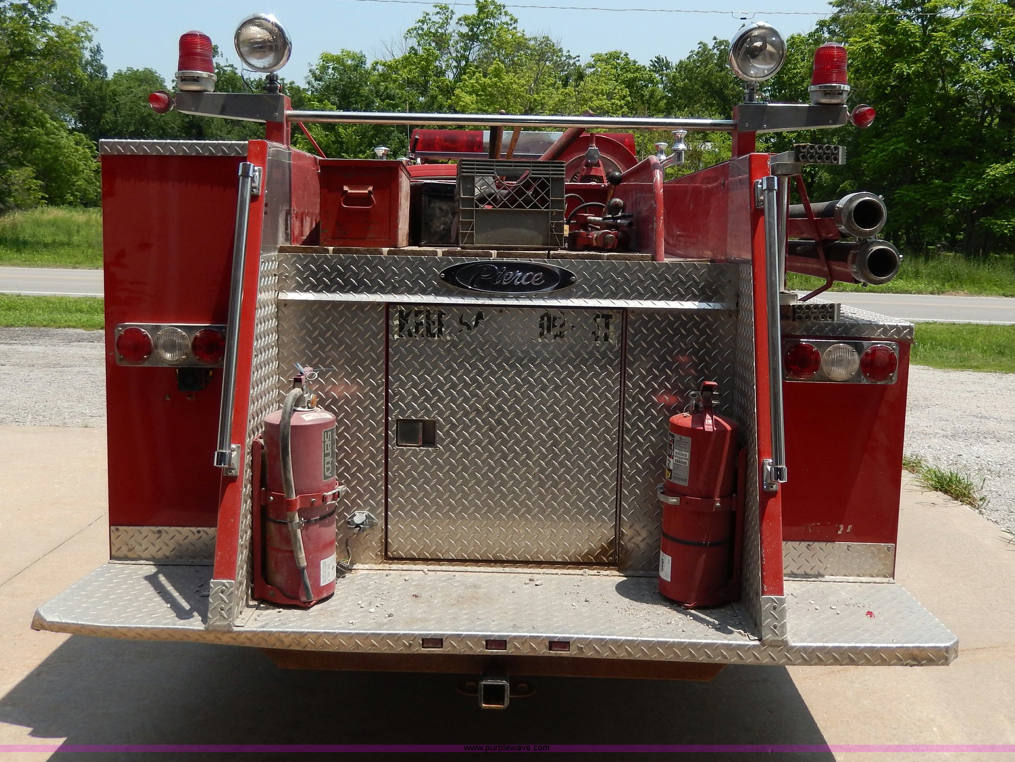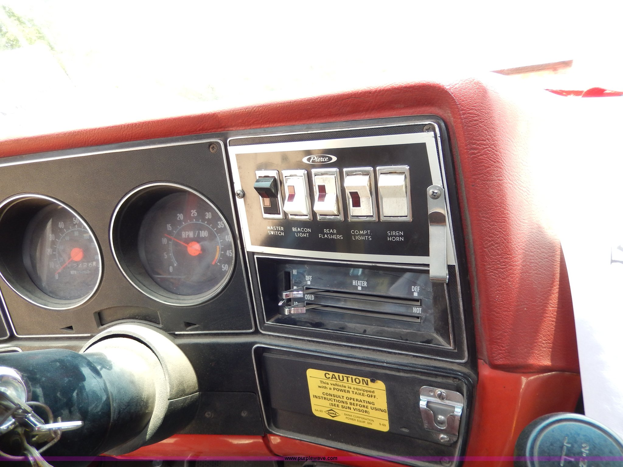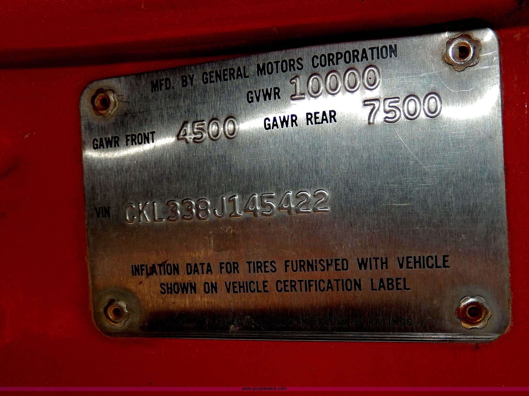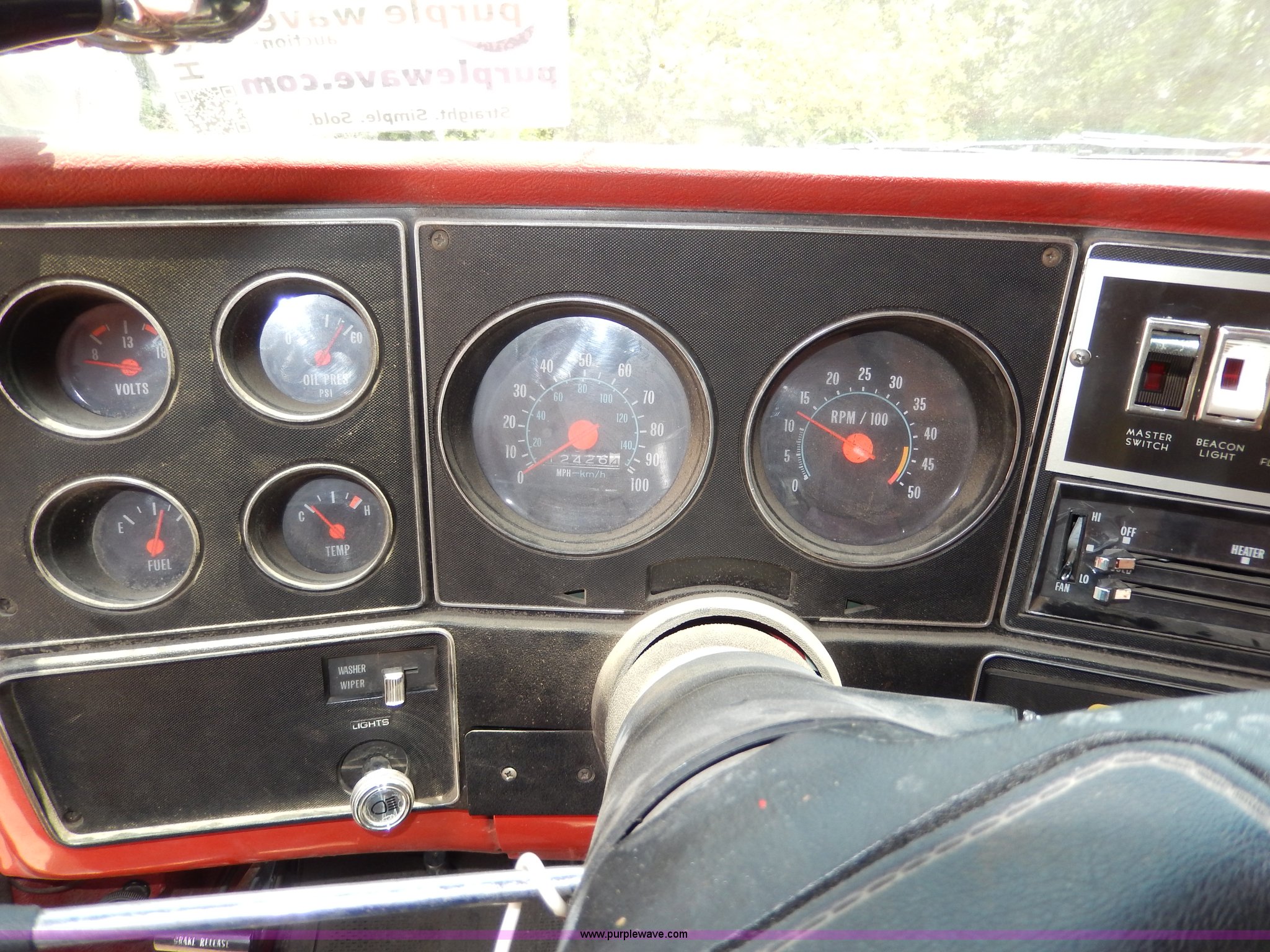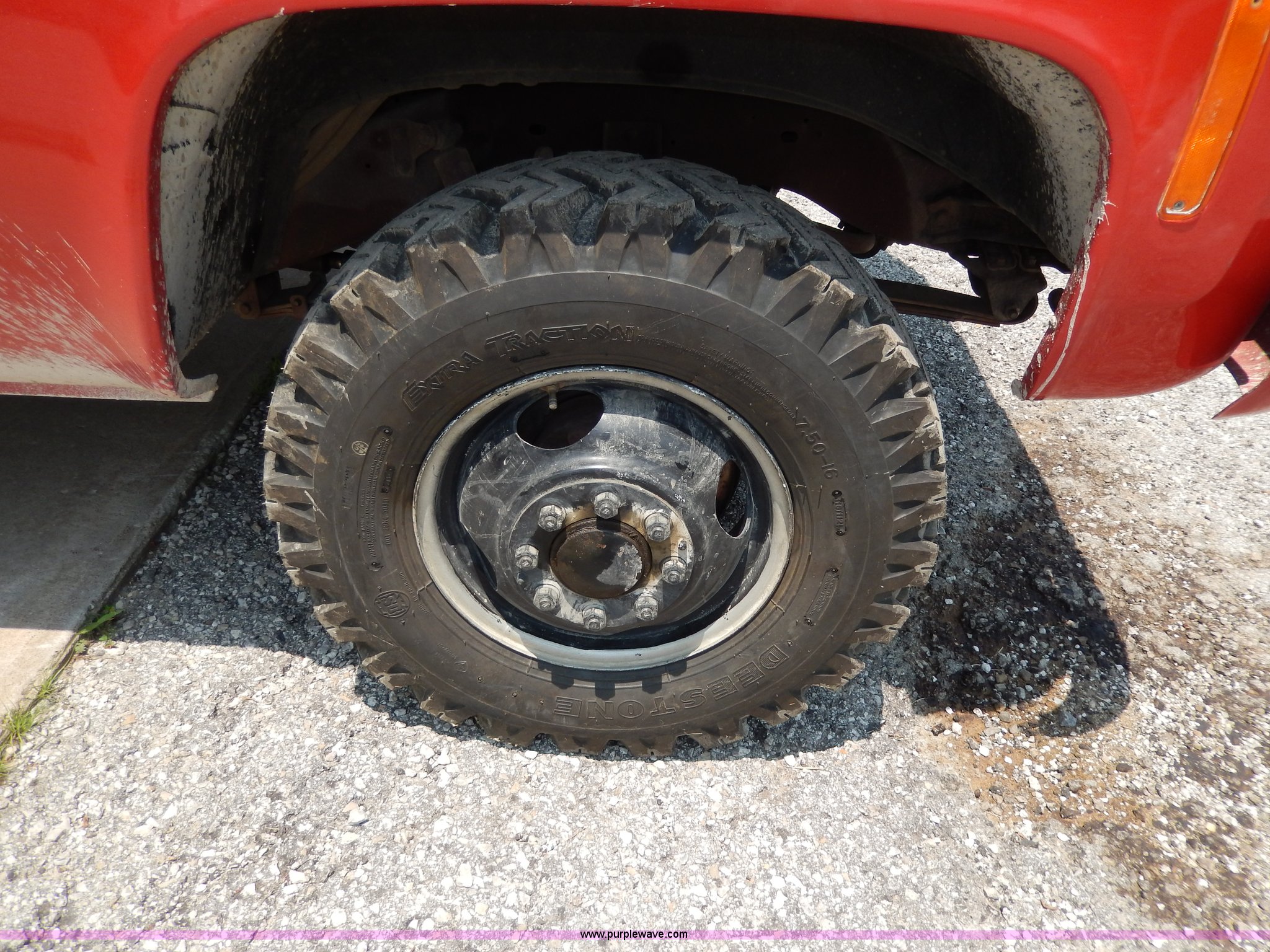 Purple Wave is selling a used Passenger Vehicle in Kansas. This item is a 1978 Chevrolet Custom Deluxe 30 mini pumper firetruck with the following: 112,426 miles on odometer, V8 gas engine, Four speed manual transmission, Four wheel drive, Heat, Manual windows and locks, Vinyl interior, Pierce CPK-3 water system, 400 gpm, 1,000 psig hydro, 600 psig discharge, Serial 54173, (2) 8'L x 4" diameter suction hoses, Hose reel and hose, 7.50-16 tires, Contents are not included, Radio is not included