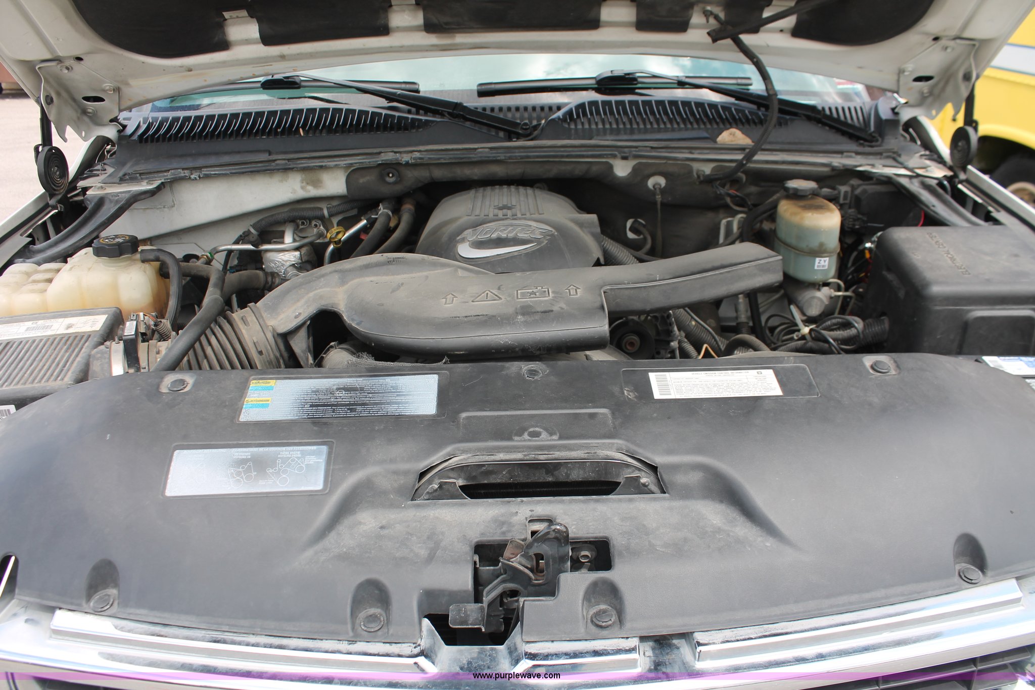 Purple Wave is selling a used Passenger Vehicle in Missouri. This item is a 2002 Chevrolet Suburban 2500 SUV with the following: 57,508 miles on odometer, 6.0L V8 OHV 16V gas engine, Automatic transmission, Four wheel drive, Transfer case inoperable, AC and heat, Tilt, Cruise, AM/FM/CD, Power windows, locks, mirrors, and seats, Cloth interior, Rear AC controls, Digital temperature and compass, Front tow hooks, Kussmaul auto eject auxiliary power outlet, Rear stow and go seating, Third row seat, Receiver hitch, Trailer wiring, Recently replaced Goodyear Wrangler LT245/75R16 tires, Front differential needs repaired or replaced, Intake fuel pump needs replaced