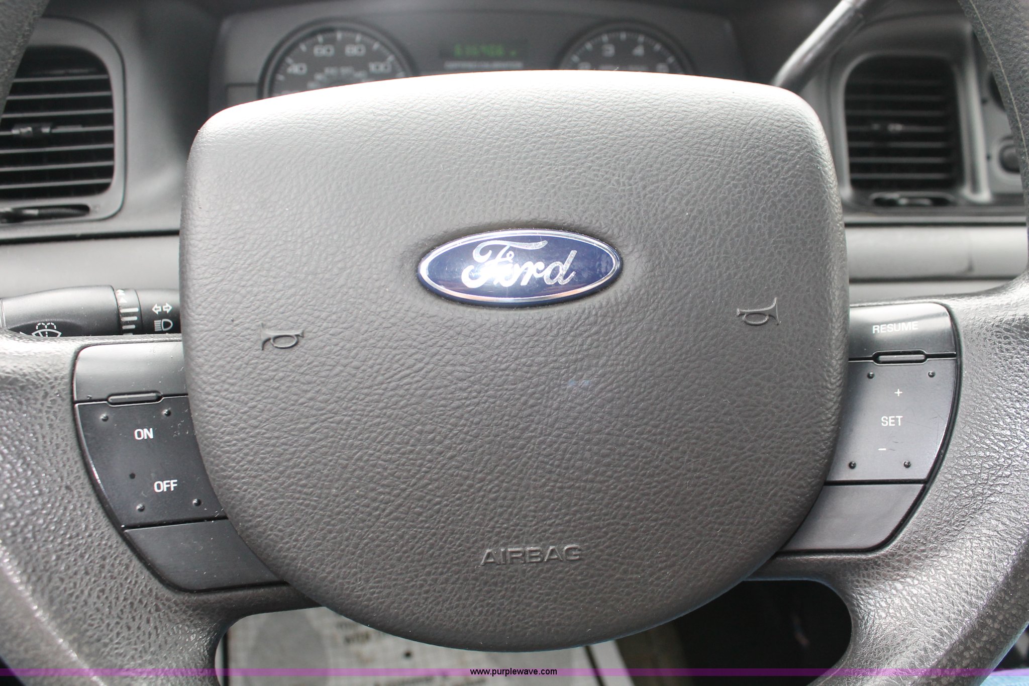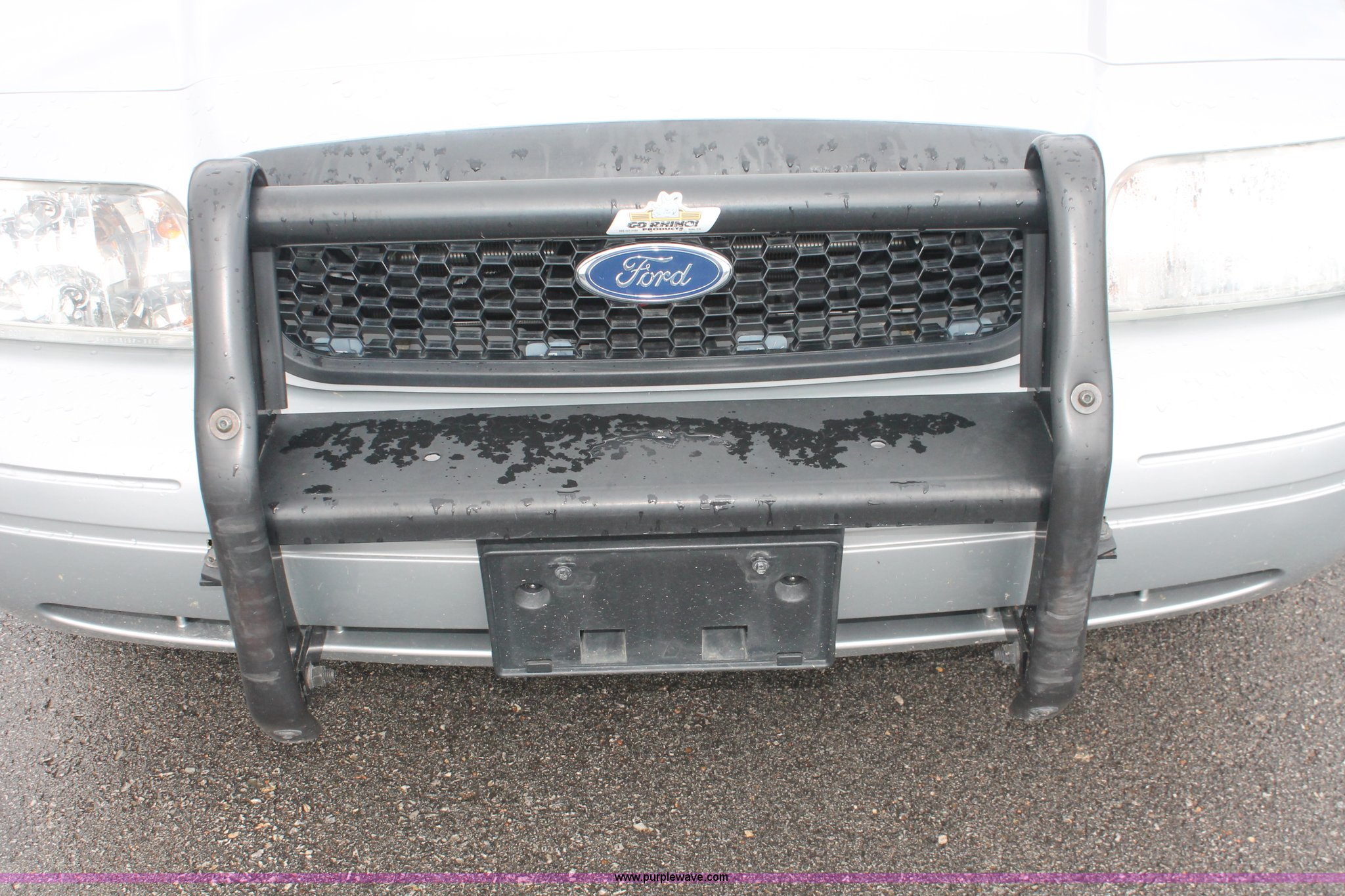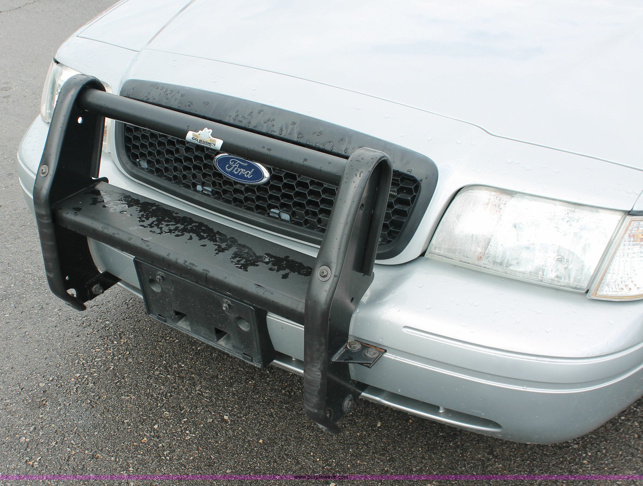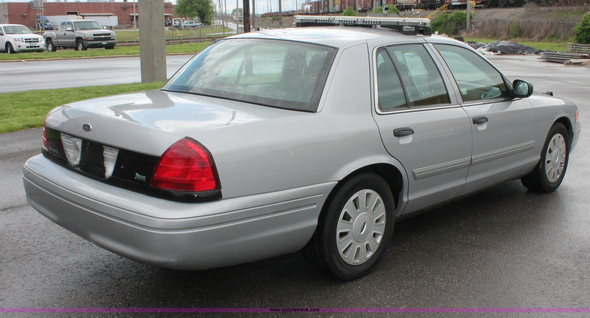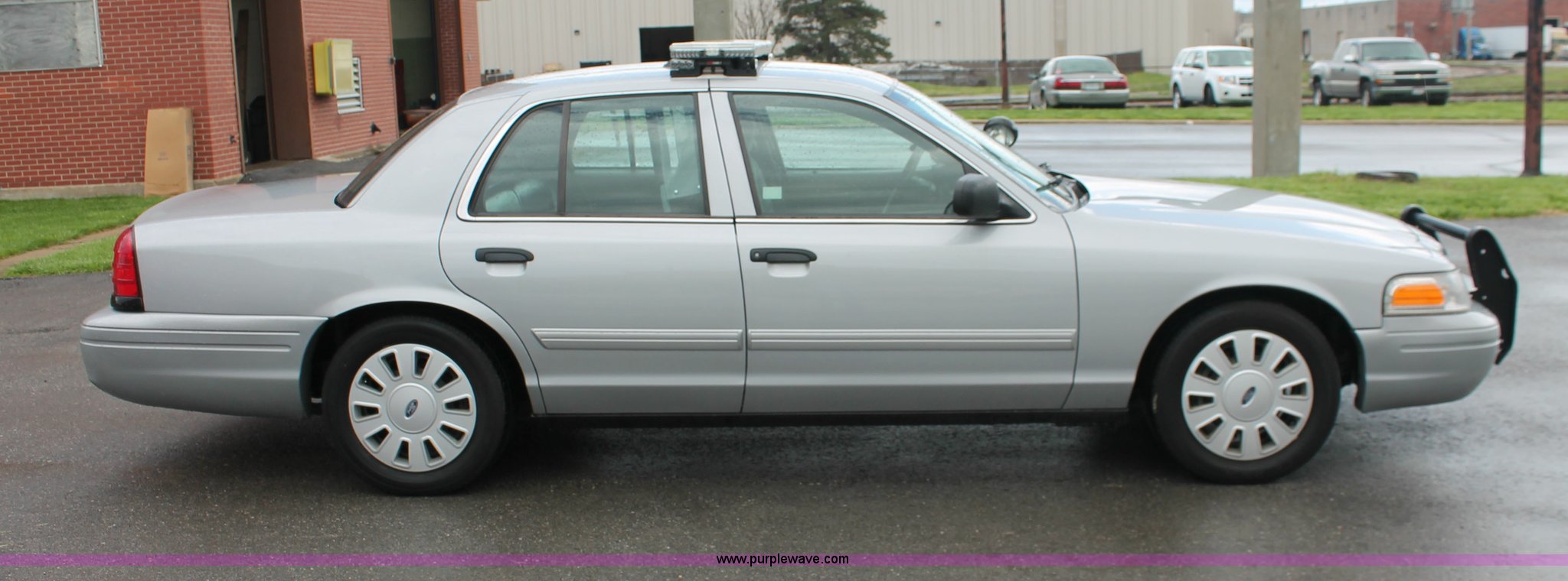 Purple Wave is selling a used Passenger Vehicle in Missouri. This item is a 2009 Ford Crown Victoria Police Interceptor with the following: 63,690 miles on odometer, 4.6L V8 SOHC 16V FFV gas engine, Automatic transmission, AC and heat, Tilt, Cruise, AM/FM, Power windows, locks, mirrors, and seats, Cloth interior, Foot pedal adjustment, Traction control, Code 3 siren and light bar controls, Fire suppression switch, Go Rhino grill guard, Code 3 light bar, Spotlight, Retaining insert, Poly rear seating insert, Goodyear Eagle P235/55R17 tires, Check engine light on