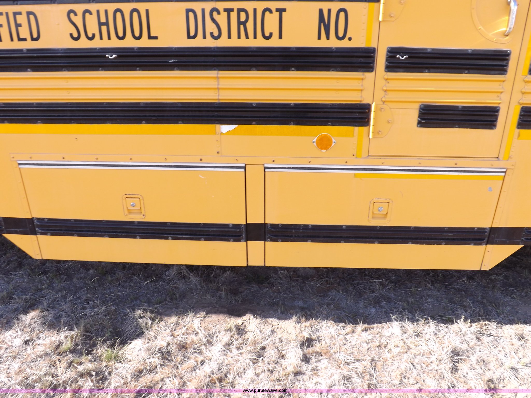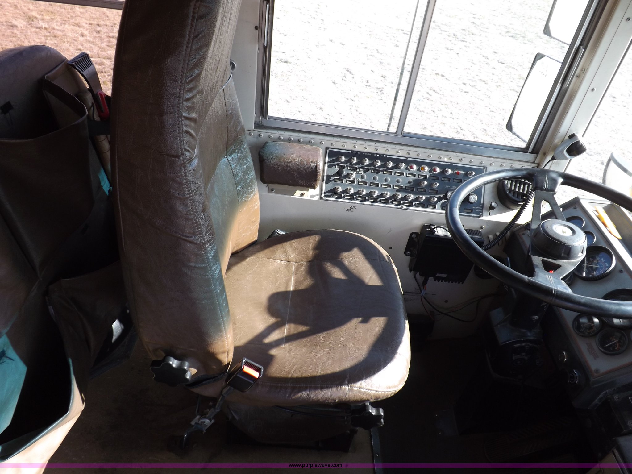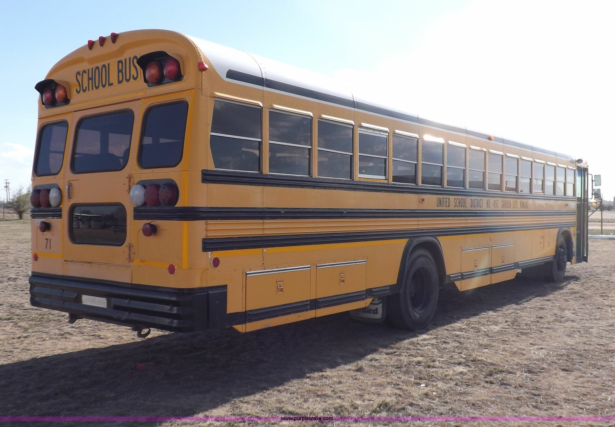 Purple Wave is selling a used Bus in Kansas. This item is a 1995 Blue Bird school bus with the following: 224,978 miles on odometer, 52 passenger, Caterpillar 3116 6.6L L6 diesel engine, Automatic transmission, Heat, Tilt, AM/FM/CD, Air suspension seat, Heated mirrors, Block heater, (2) roof emergency egress, Rear emergency egress, Exterior light monitor, Front fender mirrors, Rear tow hooks, (8) storage compartments per side, Air suspension, Air brakes, 244" wheelbase, 11R22.5 tires, GVWR 36,200 lbs, FAWR 13,200 lbs, RAWR 23,000 lbs, Radio equipment is not included, Unit# 71