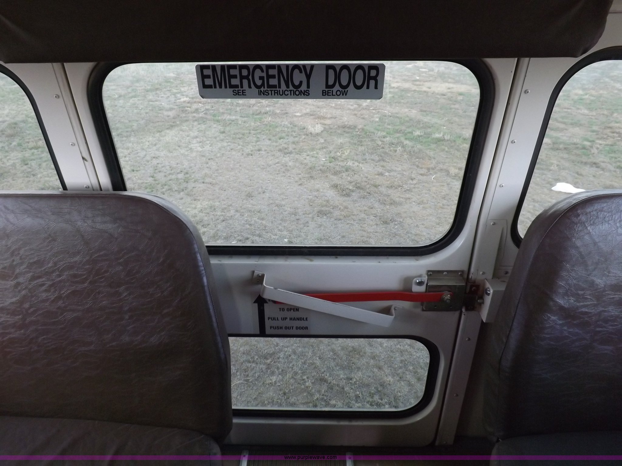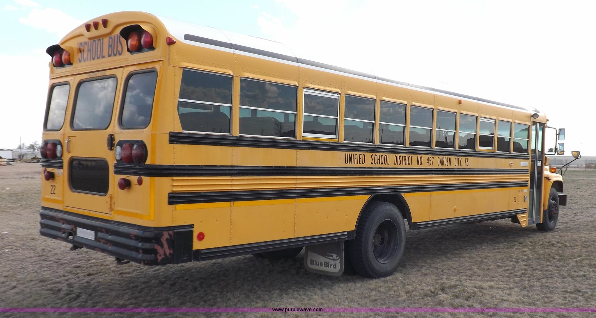 1998 Chevrolet B7 school bus. 195,892 miles on odometer, 43 passenger, Caterpillar 3116 6.6L L6 diesel engine, Automatic transmission, Heat, Spring suspension seat, Heated mirrors, Block heater, (2) roof emergency egress, (4) side emergency egress, Rear emergency egress, Front fender mirrors, Front and rear tow hooks, Spring suspension , Air brakes, 256" wheelbase, 11R22.5 tires, GVWR 28,000 lbs, FAWR 9,000 lbs, RAWR 19,000 lbs, Radio equipment is not included, Unit# 22. 1GBM7T1J7WJ106622. Shipping quotes available. USD 457. 4665 E Highway 50. Garden City, KS 67846