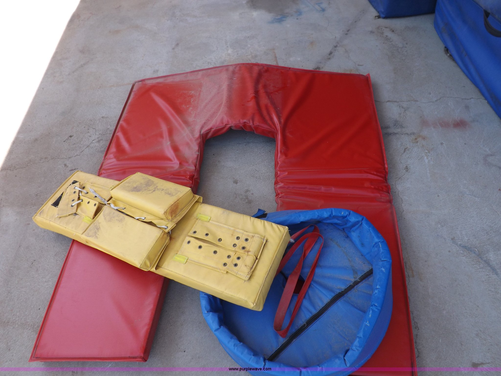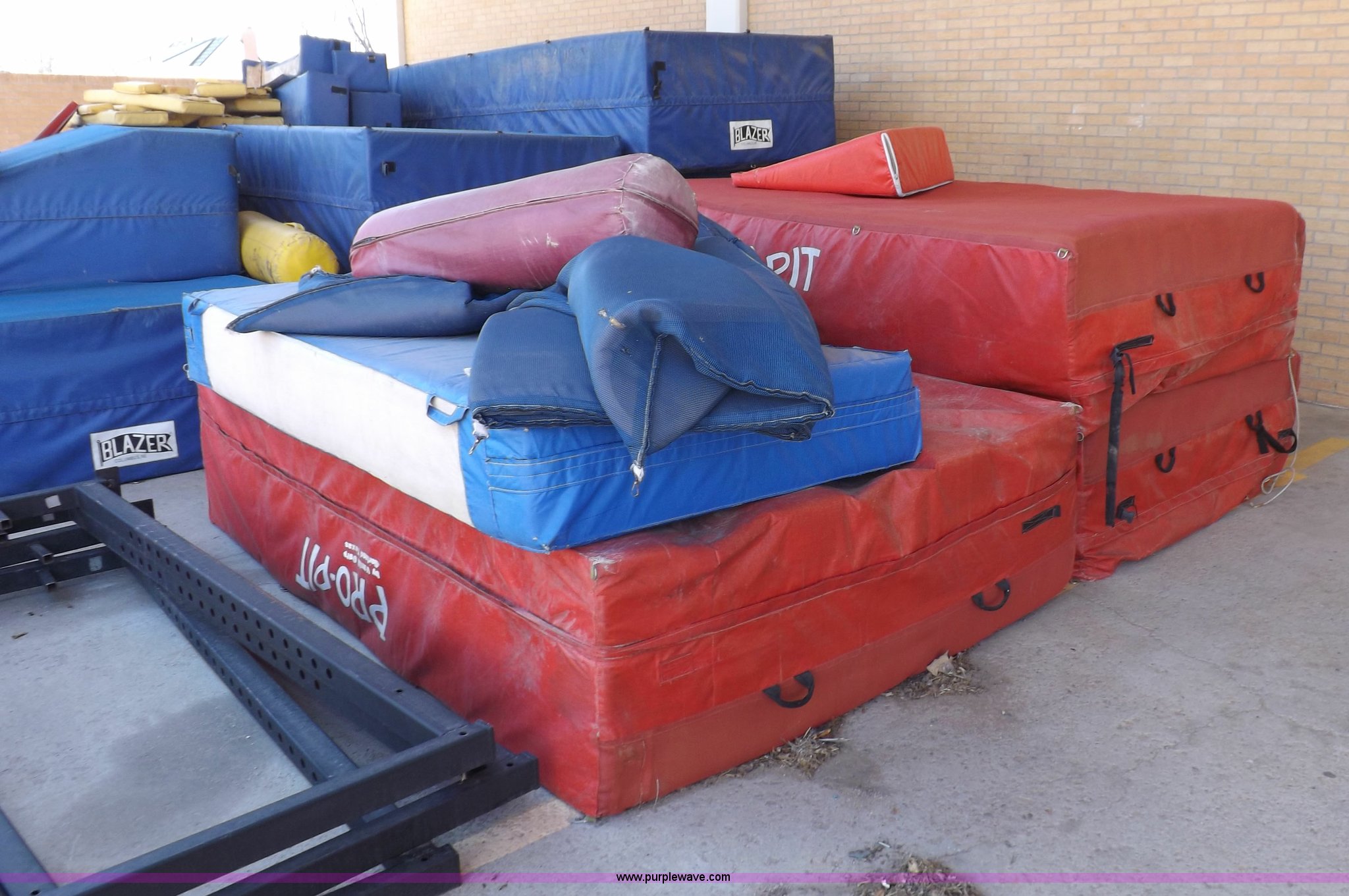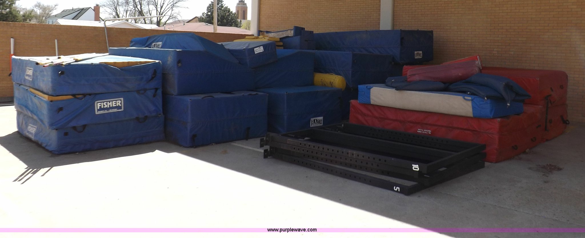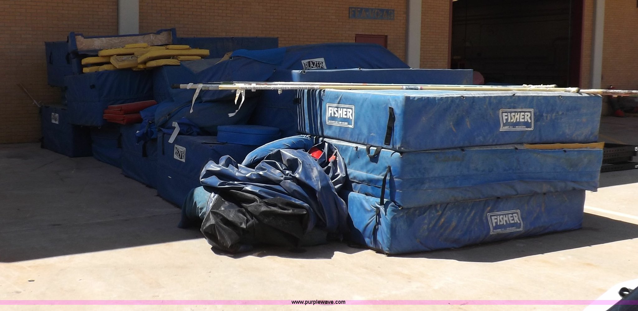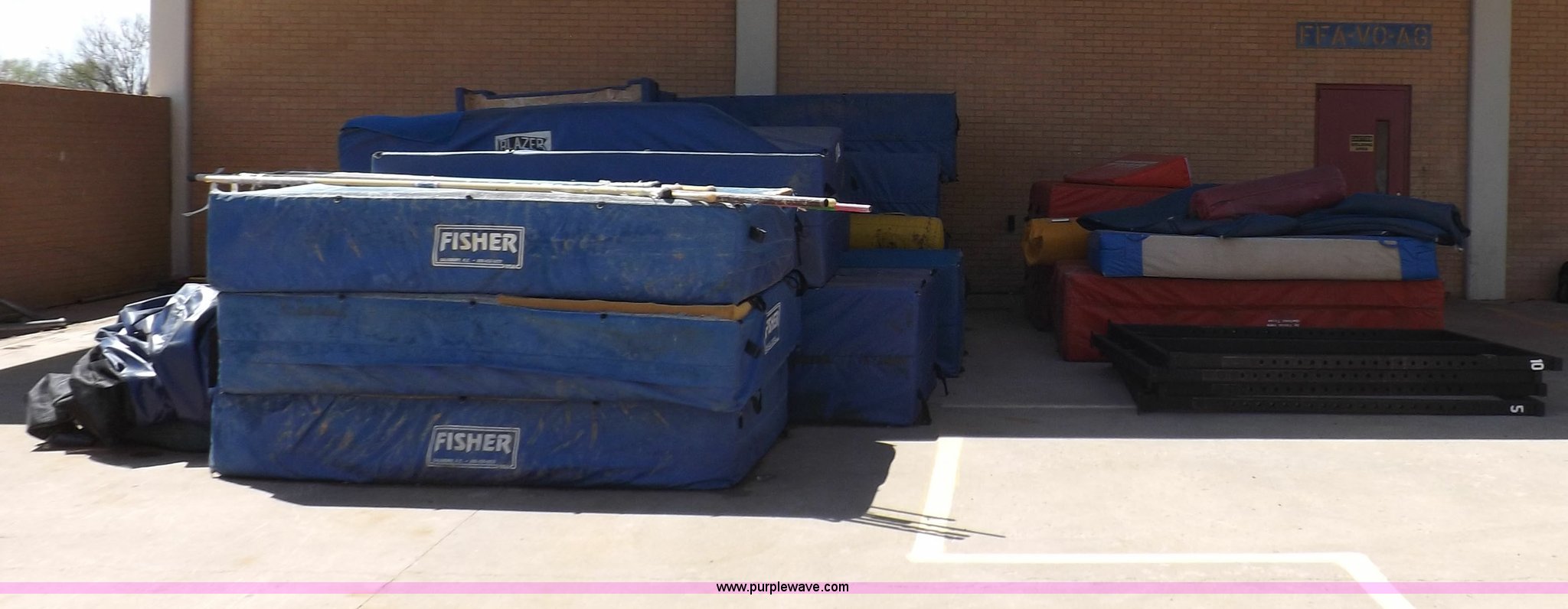 Purple Wave is selling a used Sporting Goods in Kansas. This item is a Assorted high jump and pole vault parts with the following: Landing pads, Blocking dummies, Pole vault poles