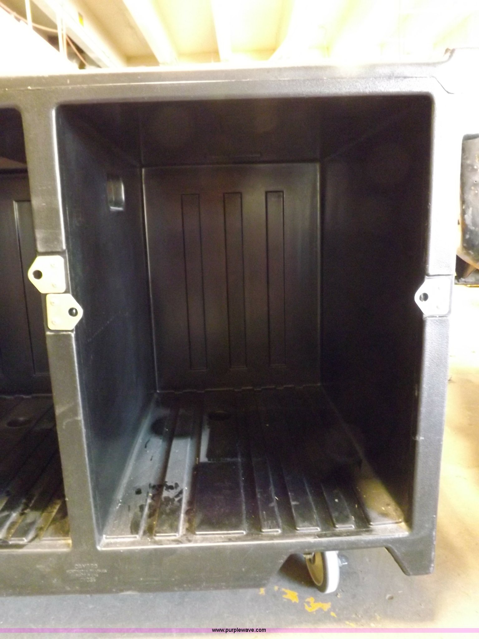 Food service cart. Hot or cold, 55"W x 30"D x 39"H, Molded poly construction, Two compartments, 6" casters, Doors missing. Shipping quotes available. USD 457. 4665 E Highway 50. Garden City, KS 67846