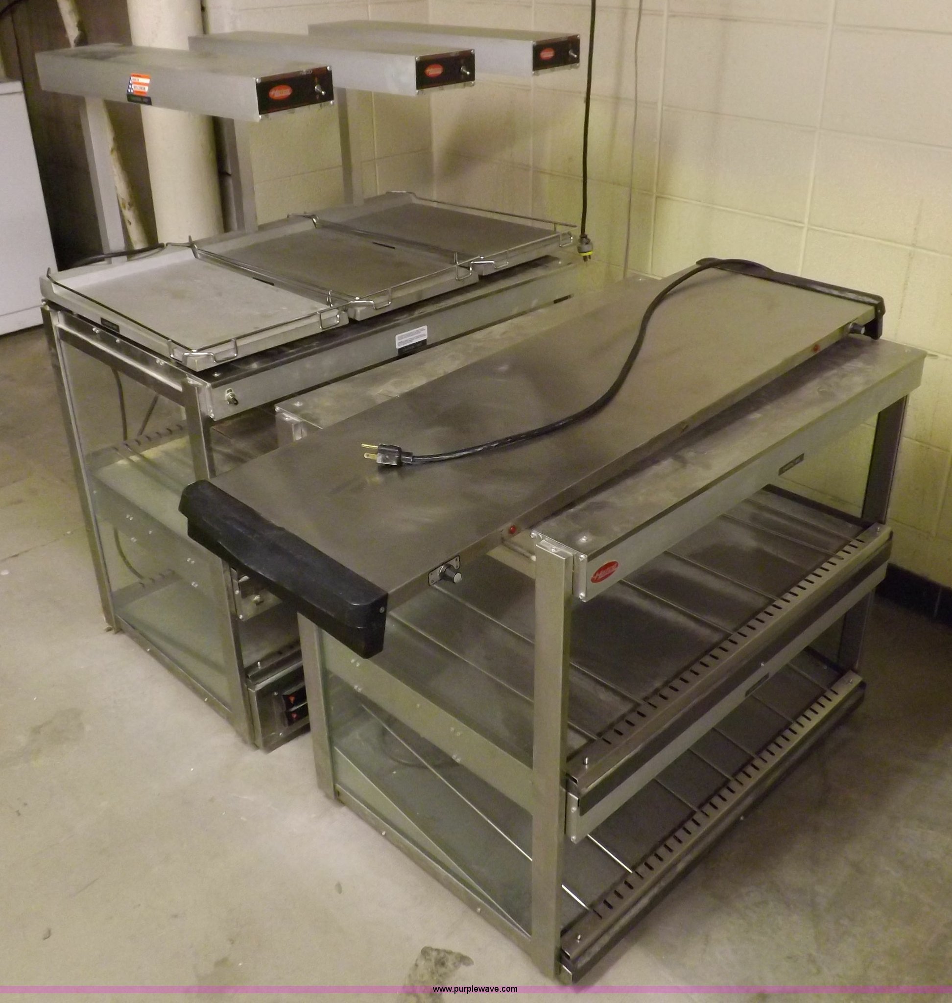 Purple Wave is selling a used Restaurant Equip. in Kansas. This item is a Assorted food warming service equipment with the following: (3) Hatco Glo-Ray, Model GRFFB, 120V, (2) Hatco GRS0S/H-36D, 36"W x 24"D x 31"H, 120V, Cadco cook surface, 45"W x 14"D, 120V