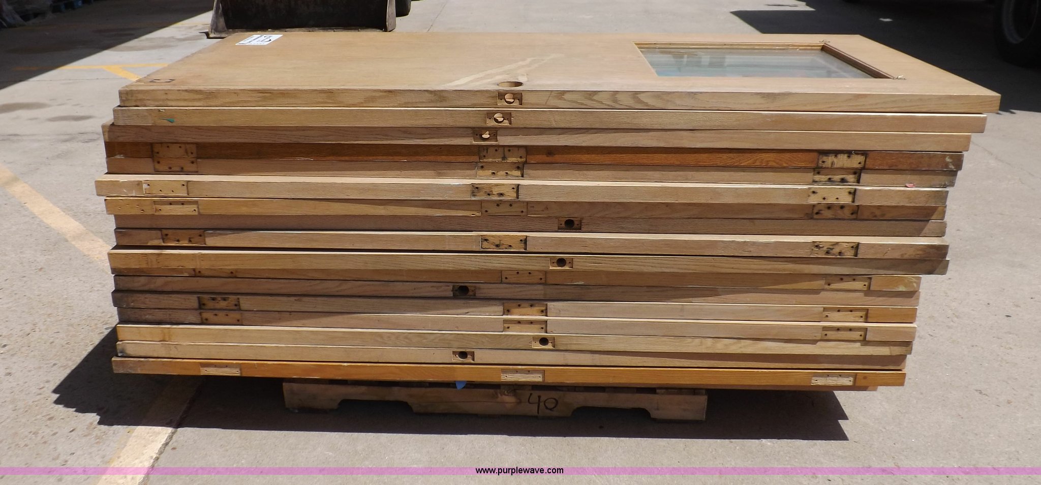 Purple Wave is selling a used Home Improvement in Kansas. This item is a Approximately 28 Oak veneer solid core doors with the following: 3'W x 6'8"H x 1.75"thick, Some have glass, Some have hardware