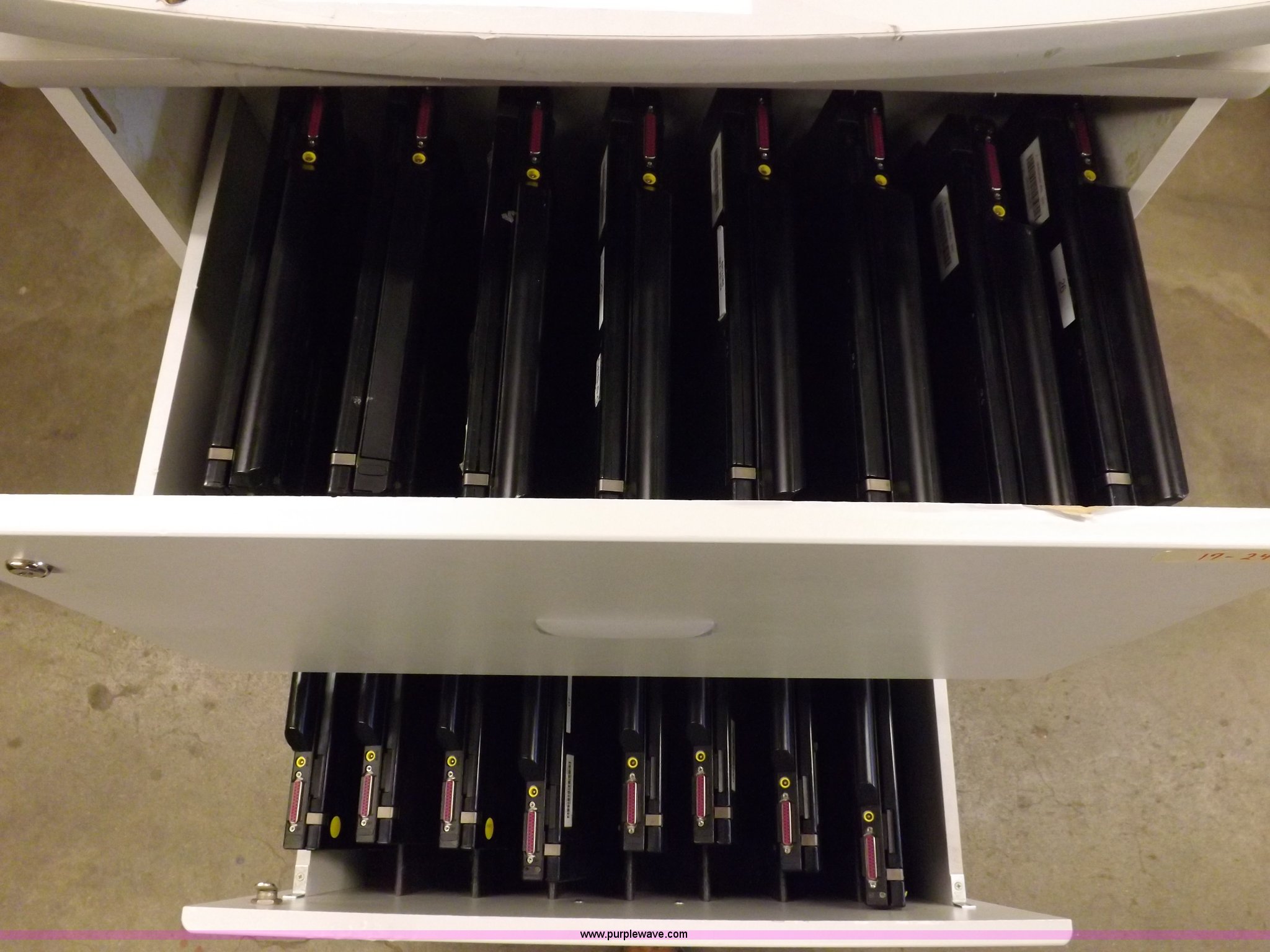 Purple Wave is selling a used Computers in Kansas. This item is a (32) computers with the following: IBM Thinkpad R512888-2RV, Intel Celeron 1.3 GHz processor, 256 MB RAM, 30 GB HDD, B/G 2200 wireless card, CD ROM, Cart will hold 32 laptops, Charging capacity, No keys