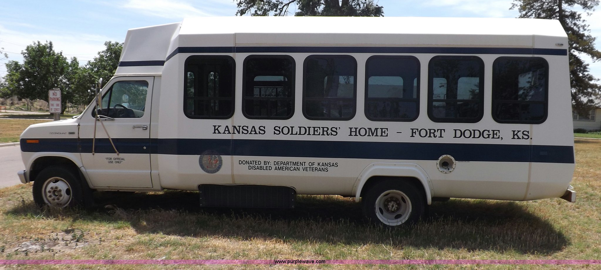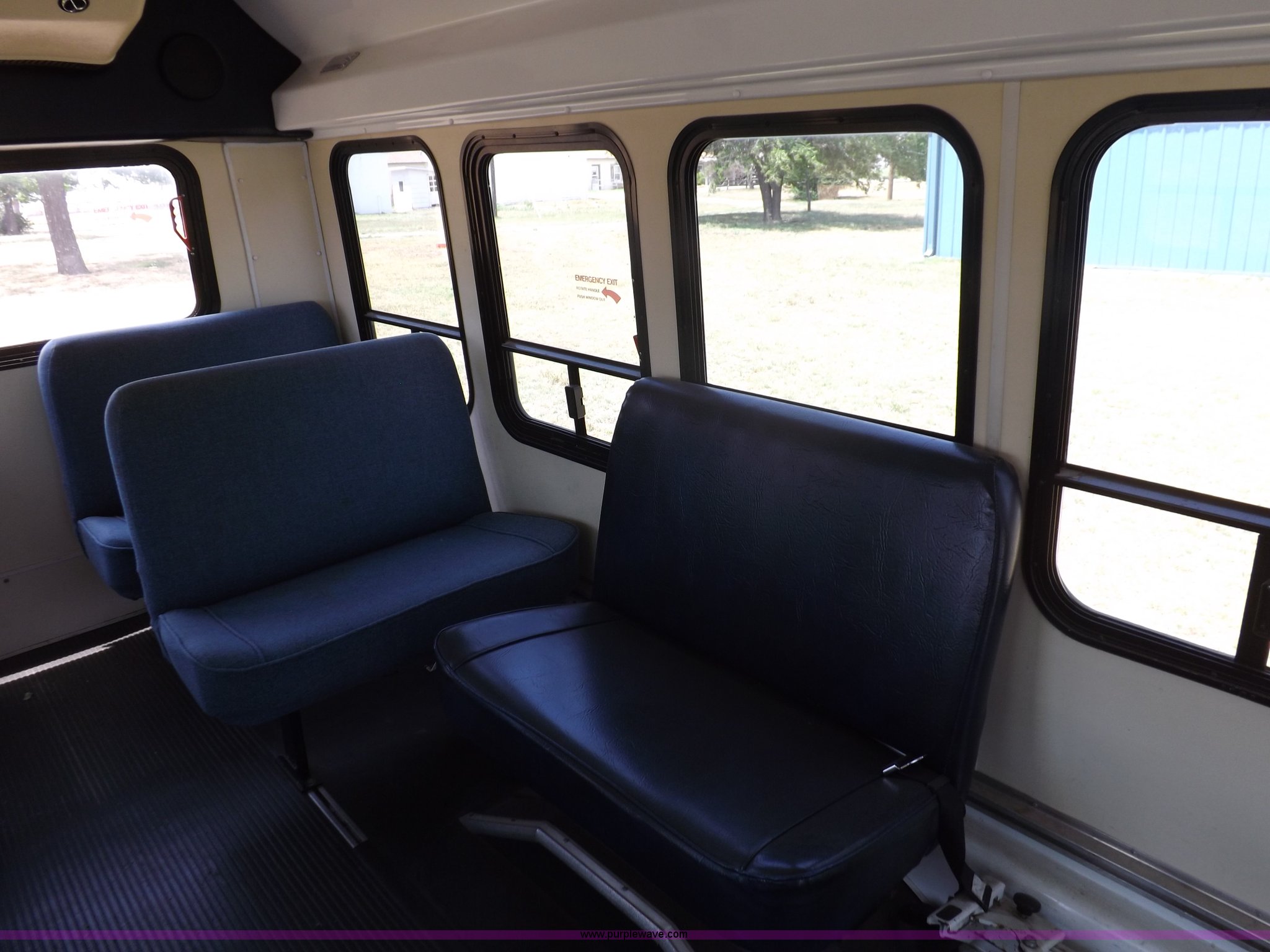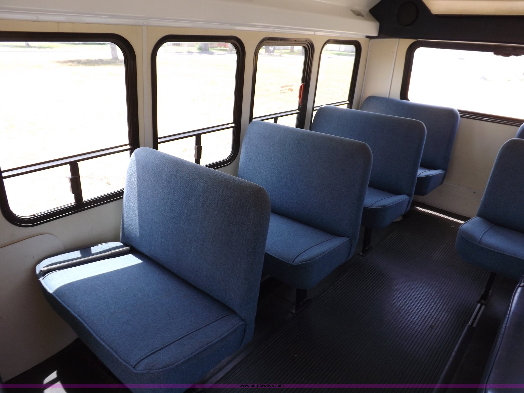 Purple Wave is selling a used Bus in Kansas. This item is a 1990 Ford Econoline E350 bus with the following: 60,041 miles on odometer, 7.5L V8 OHV 16V gas engine, Automatic transmission, AC and heat, AM, Manual windows and locks, Cloth interior, Ricon wheelchair lift, Two emergency egress, El Dorado bus package, 215/65R16 tires, Hail damage, Driver's door and fender damage