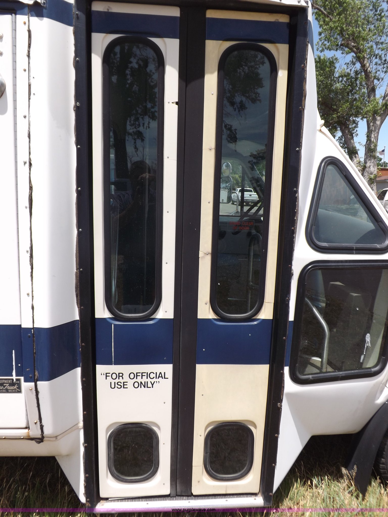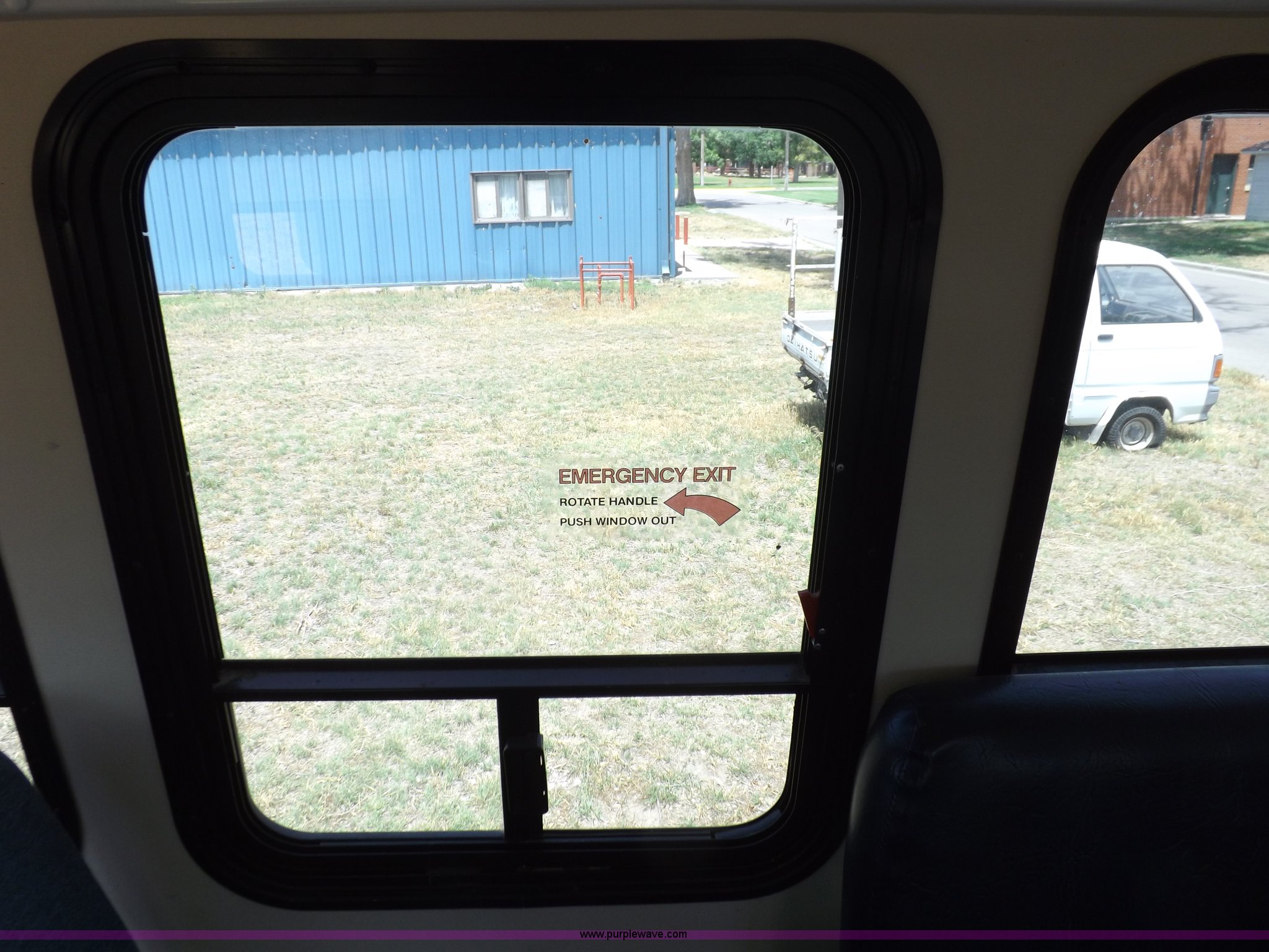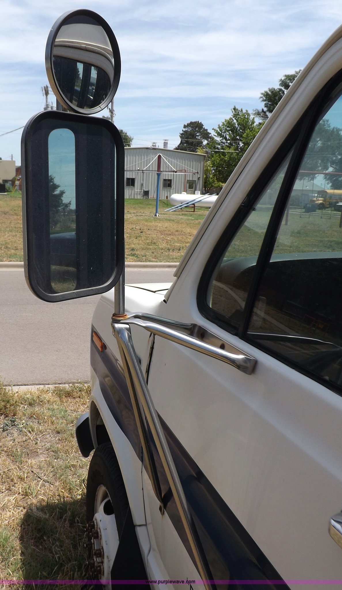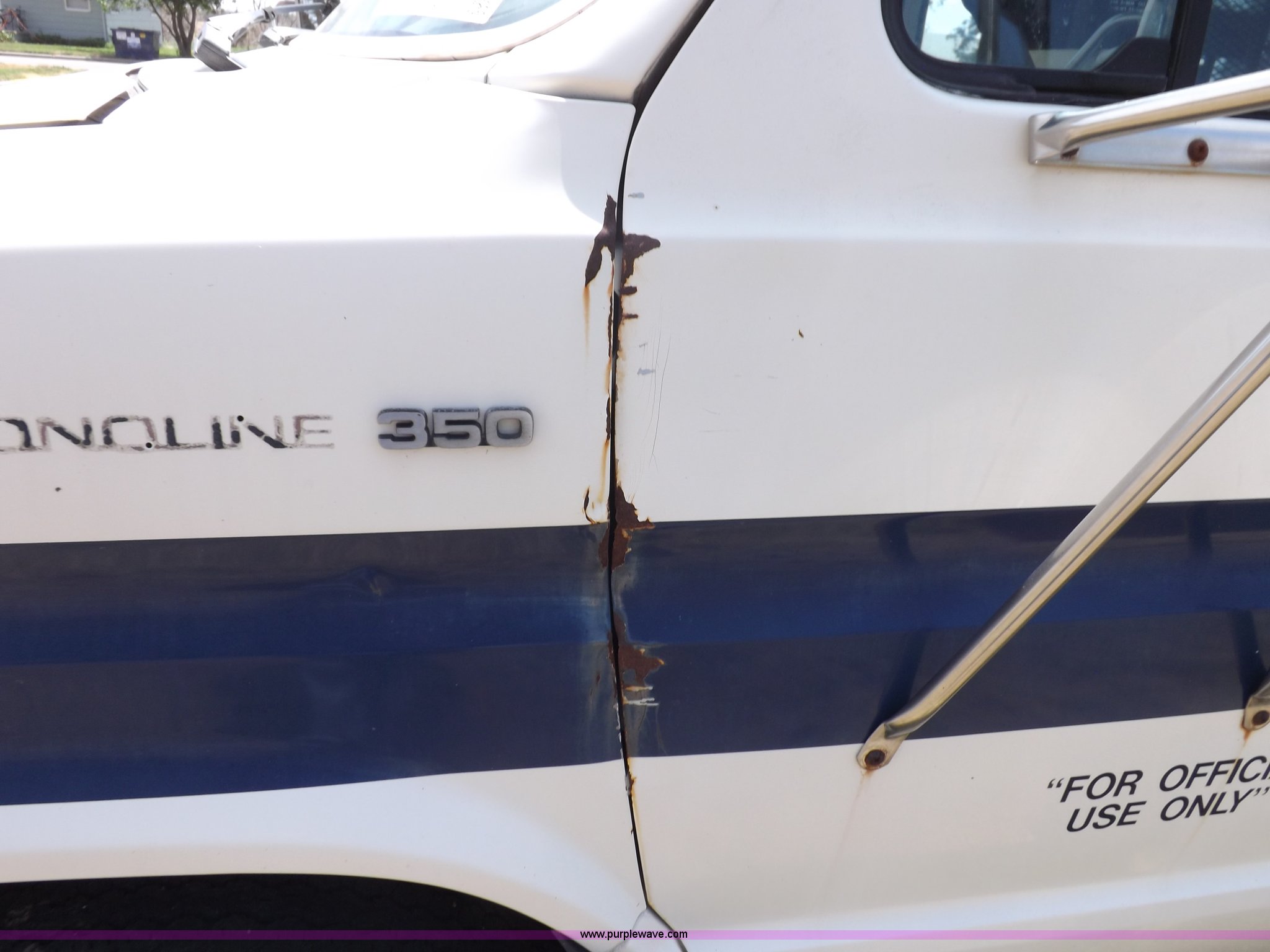Purple Wave is selling a used Bus in Kansas. This item is a 1990 Ford Econoline E350 bus with the following: 60,041 miles on odometer, 7.5L V8 OHV 16V gas engine, Automatic transmission, AC and heat, AM, Manual windows and locks, Cloth interior, Ricon wheelchair lift, Two emergency egress, El Dorado bus package, 215/65R16 tires, Hail damage, Driver's door and fender damage