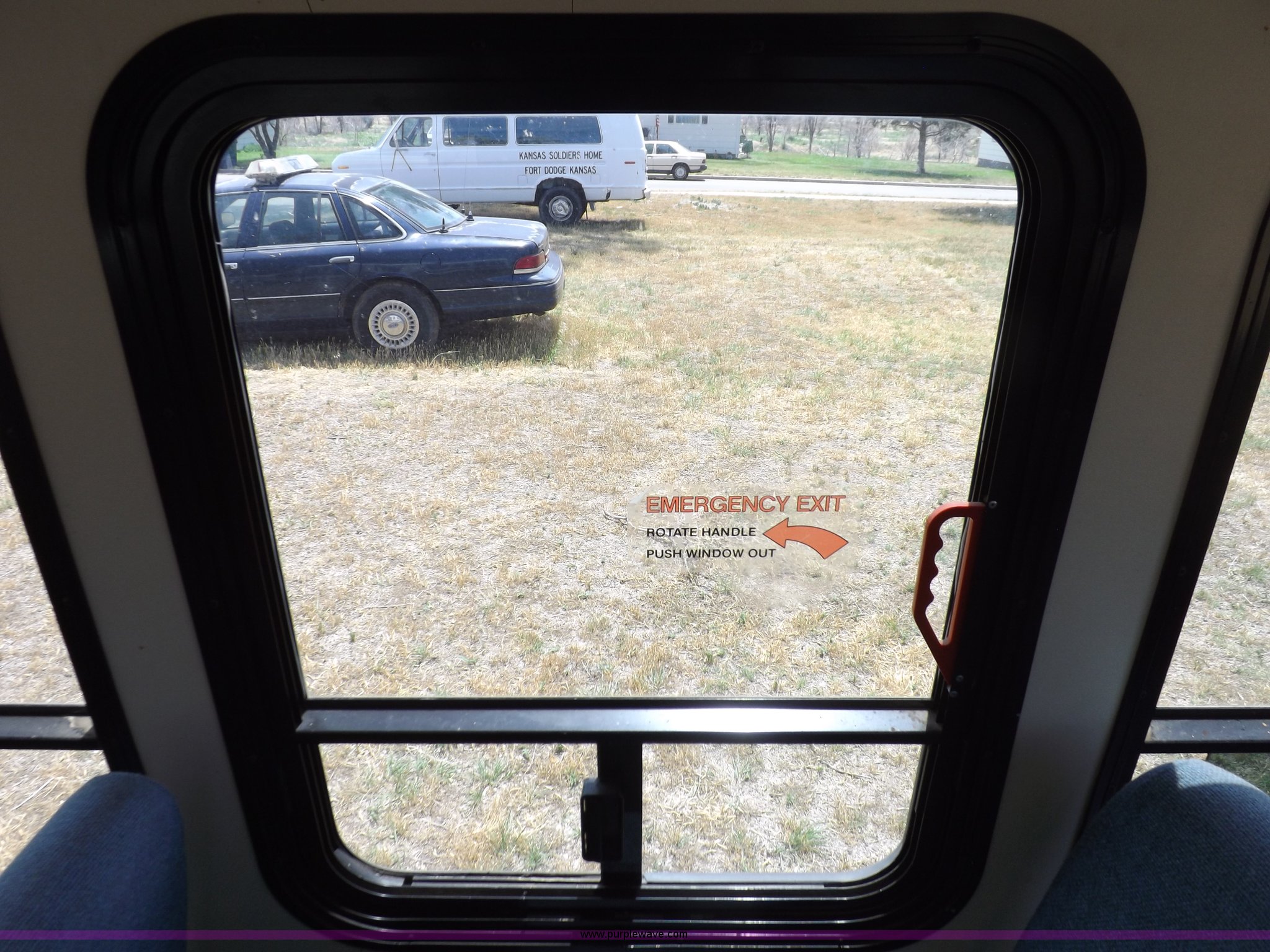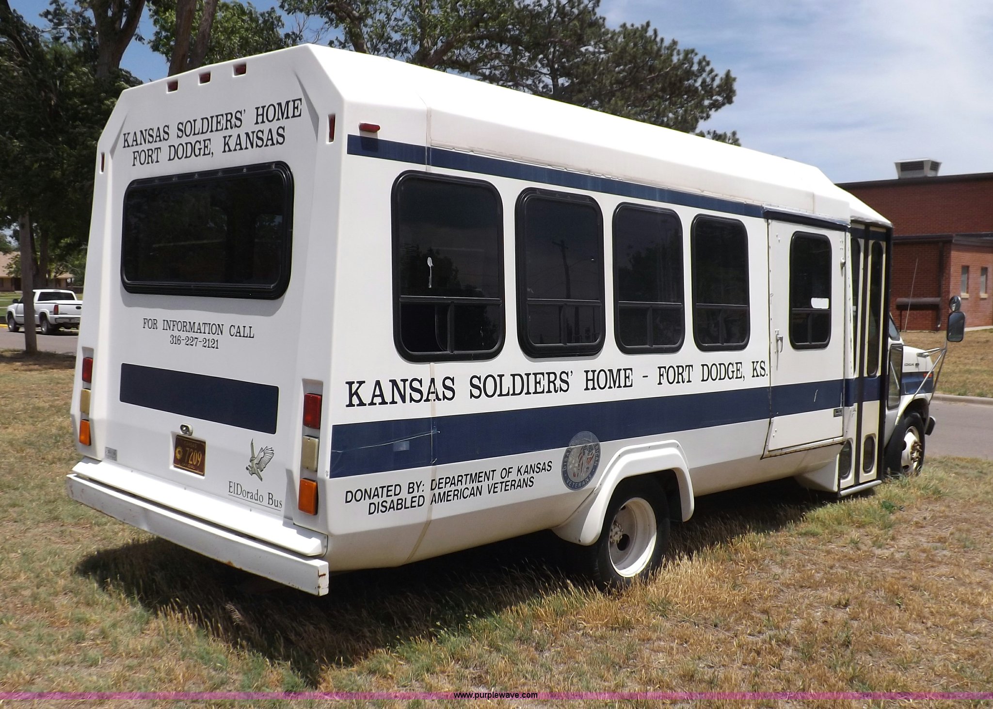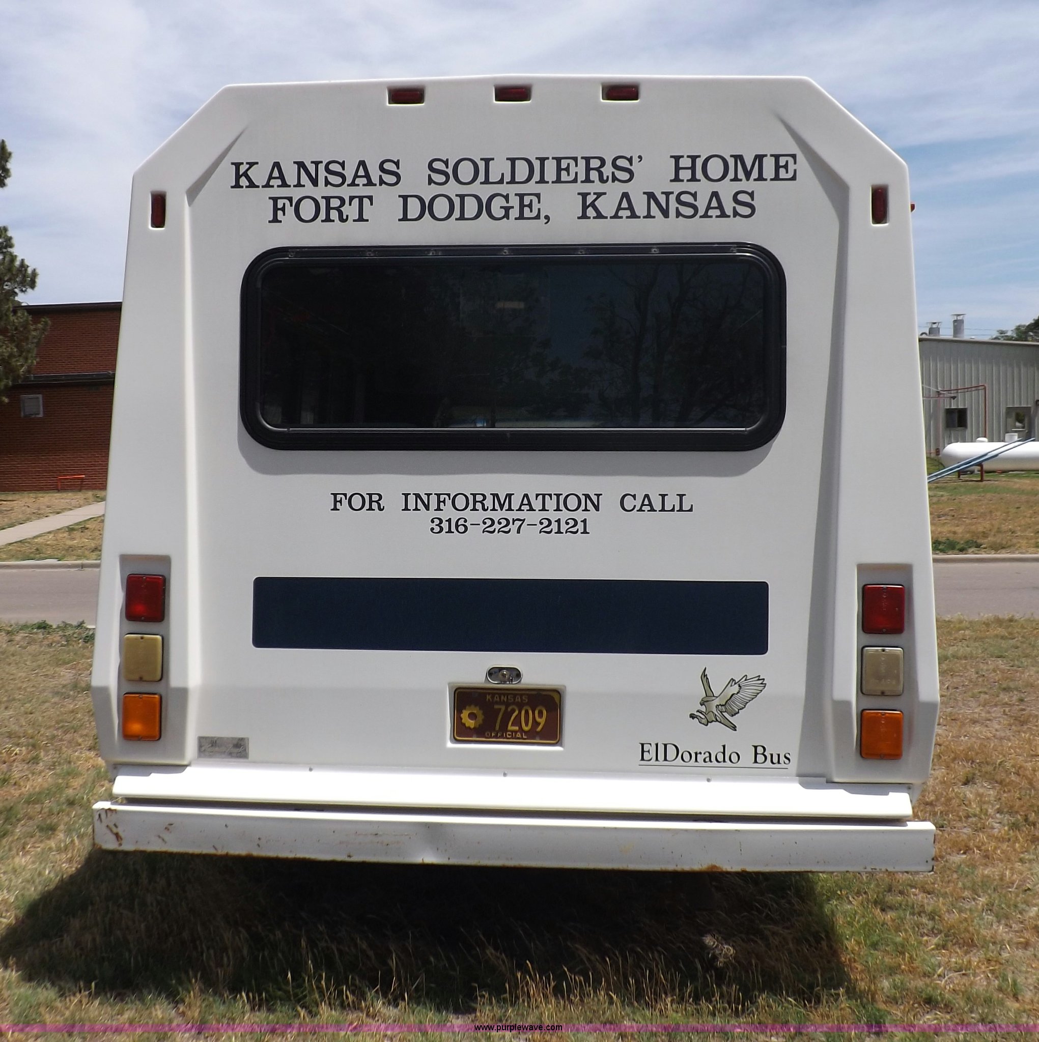 1990 Ford Econoline E350 bus. 60,041 miles on odometer, 7.5L V8 OHV 16V gas engine, Automatic transmission, AC and heat, AM, Manual windows and locks, Cloth interior, Ricon wheelchair lift, Two emergency egress, El Dorado bus package, 215/65R16 tires, Hail damage, Driver's door and fender damage. 1FDKE37G8LHB52785. Shipping quotes available. Kansas Soldier's Home. 714 Sheridan. Fort Dodge, KS 67843