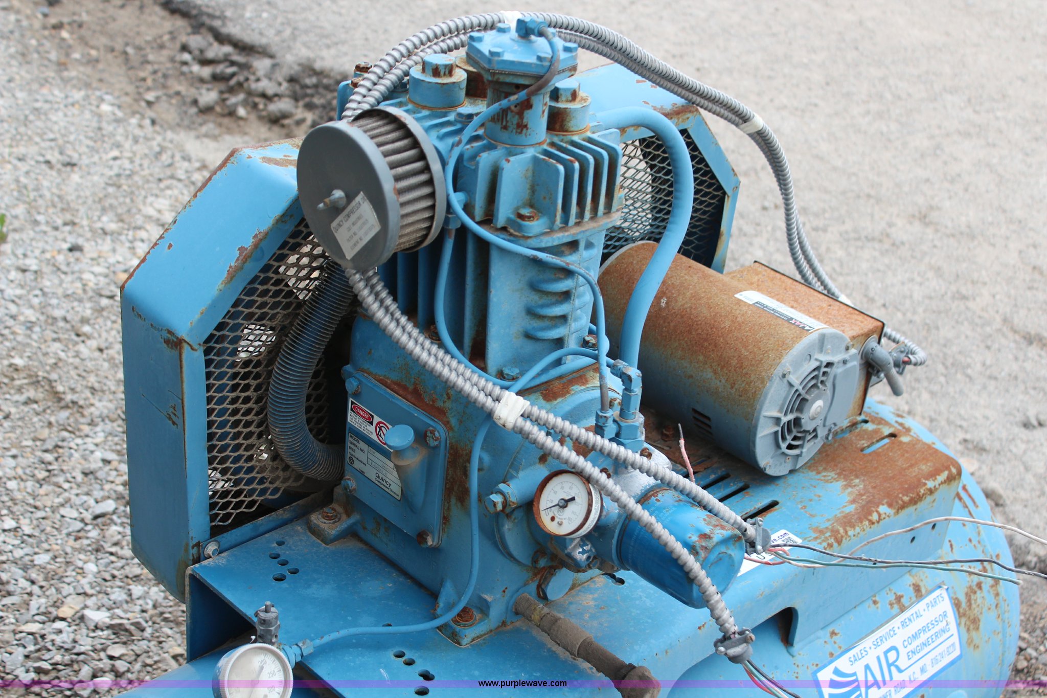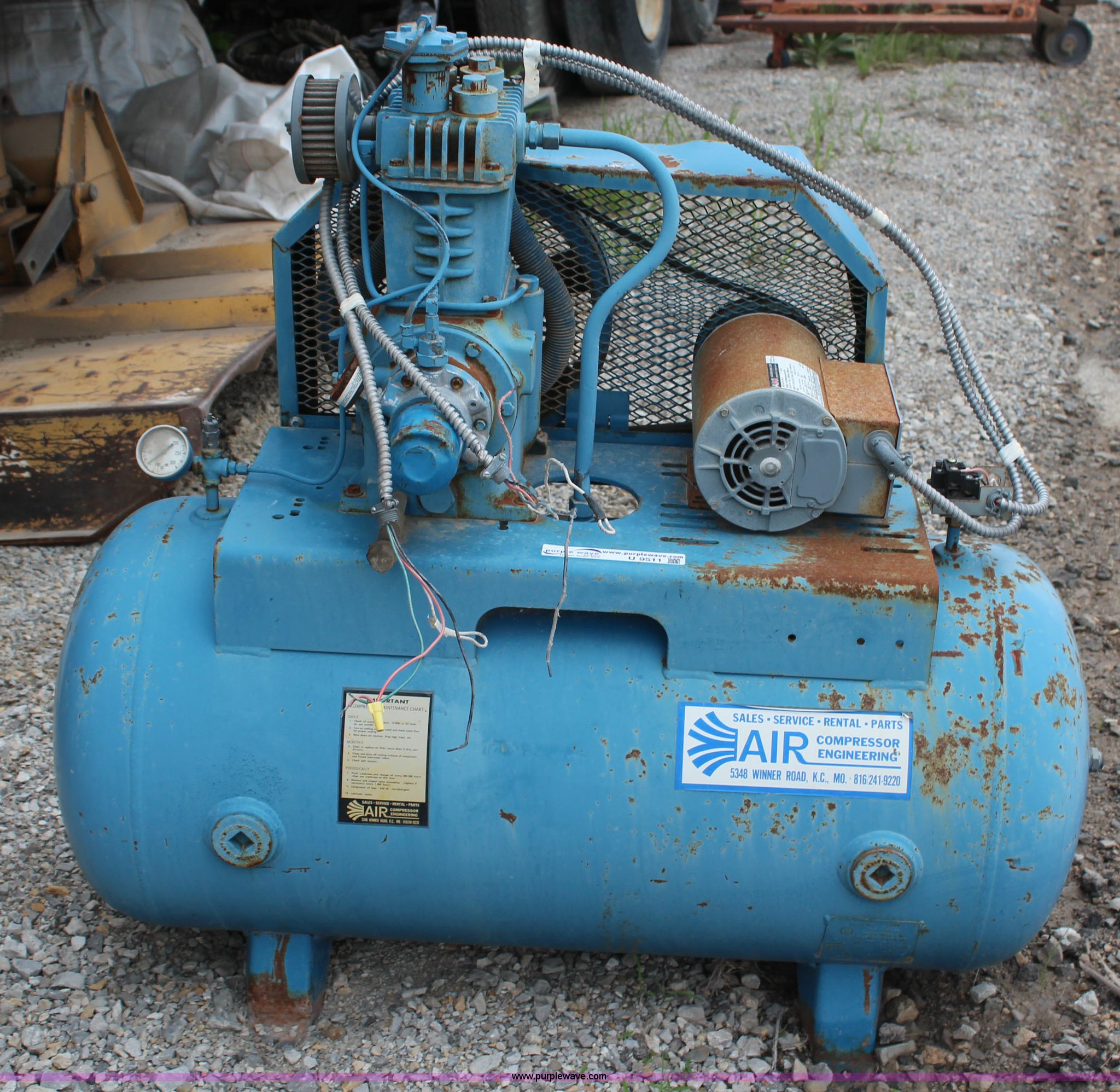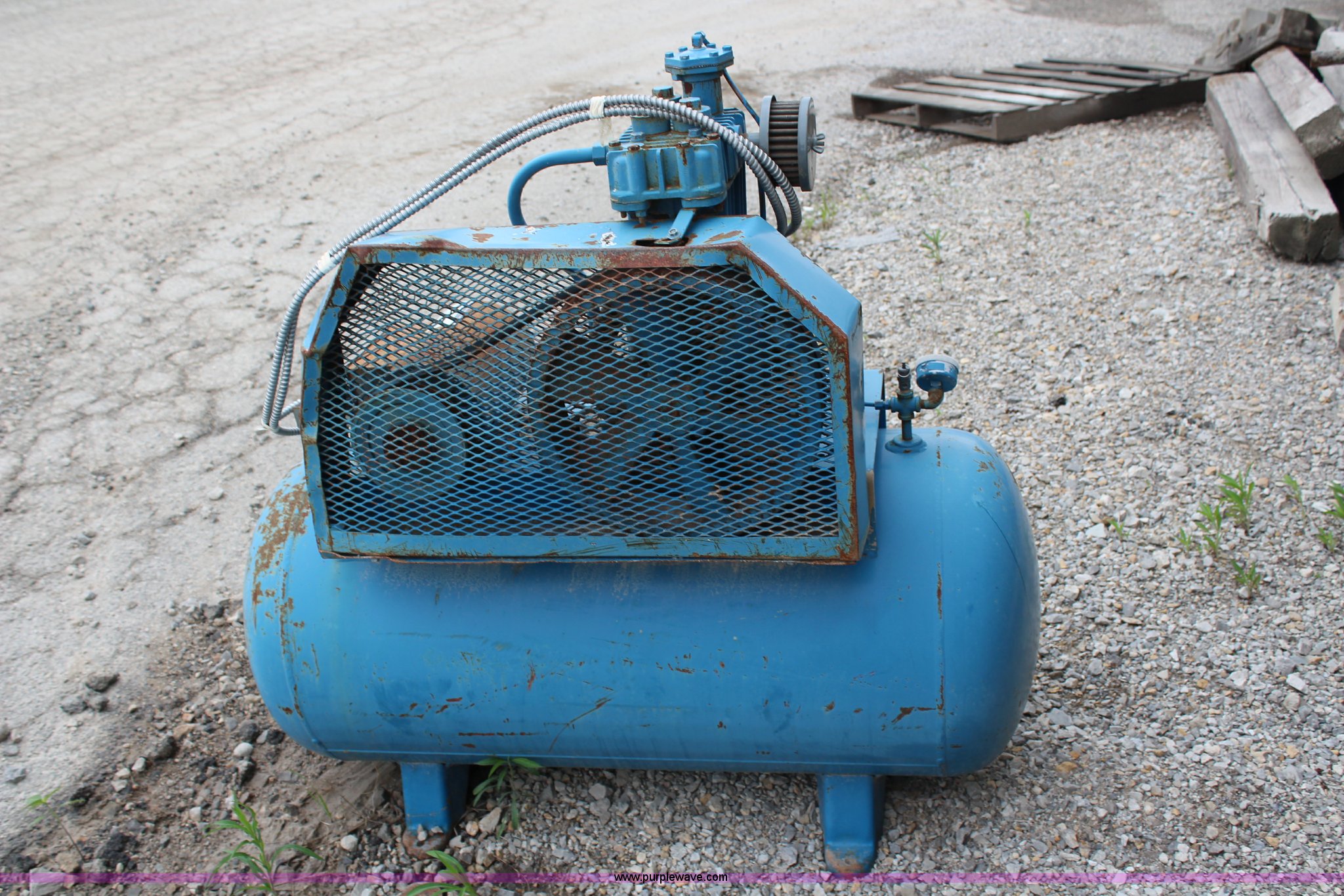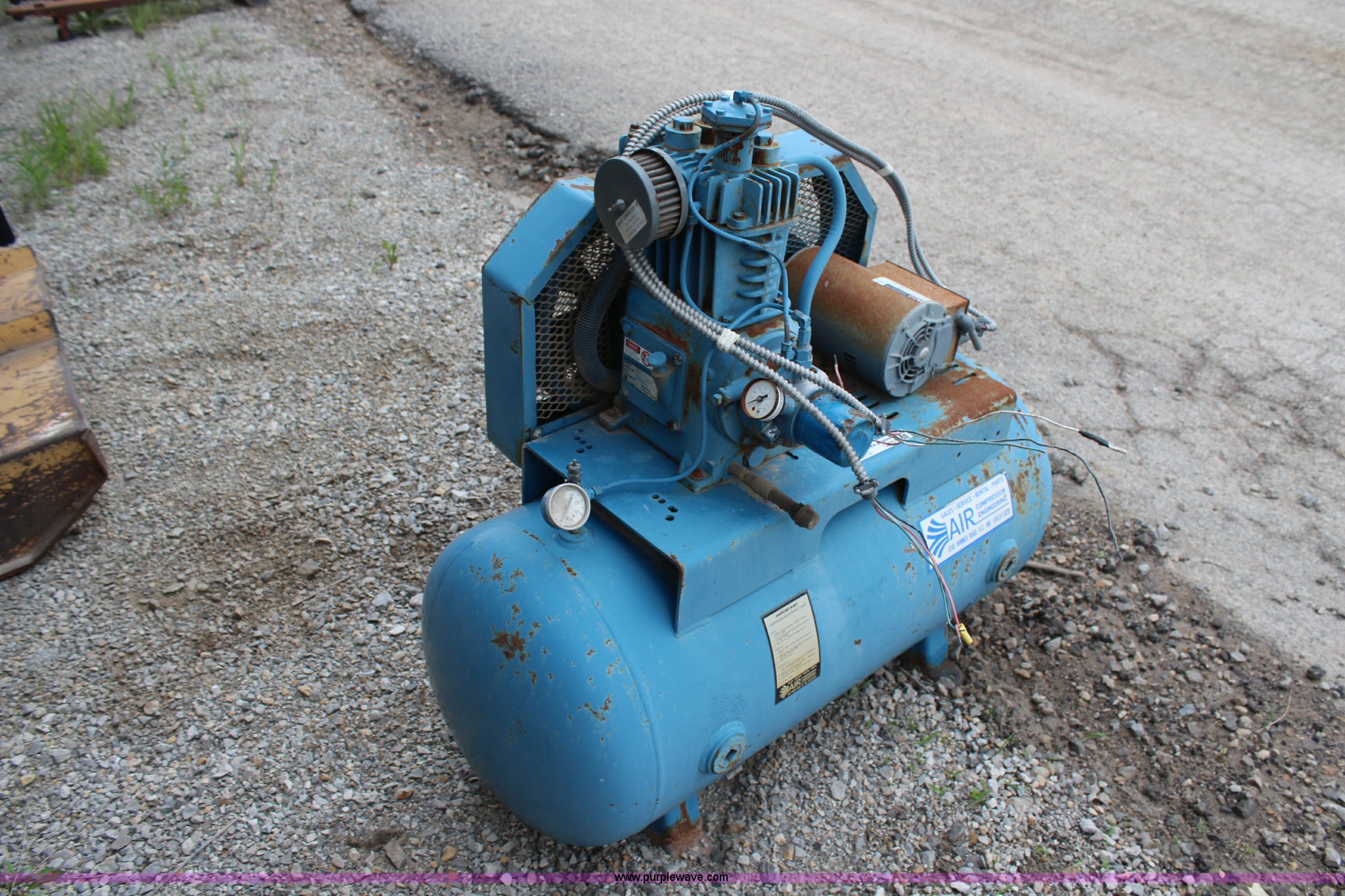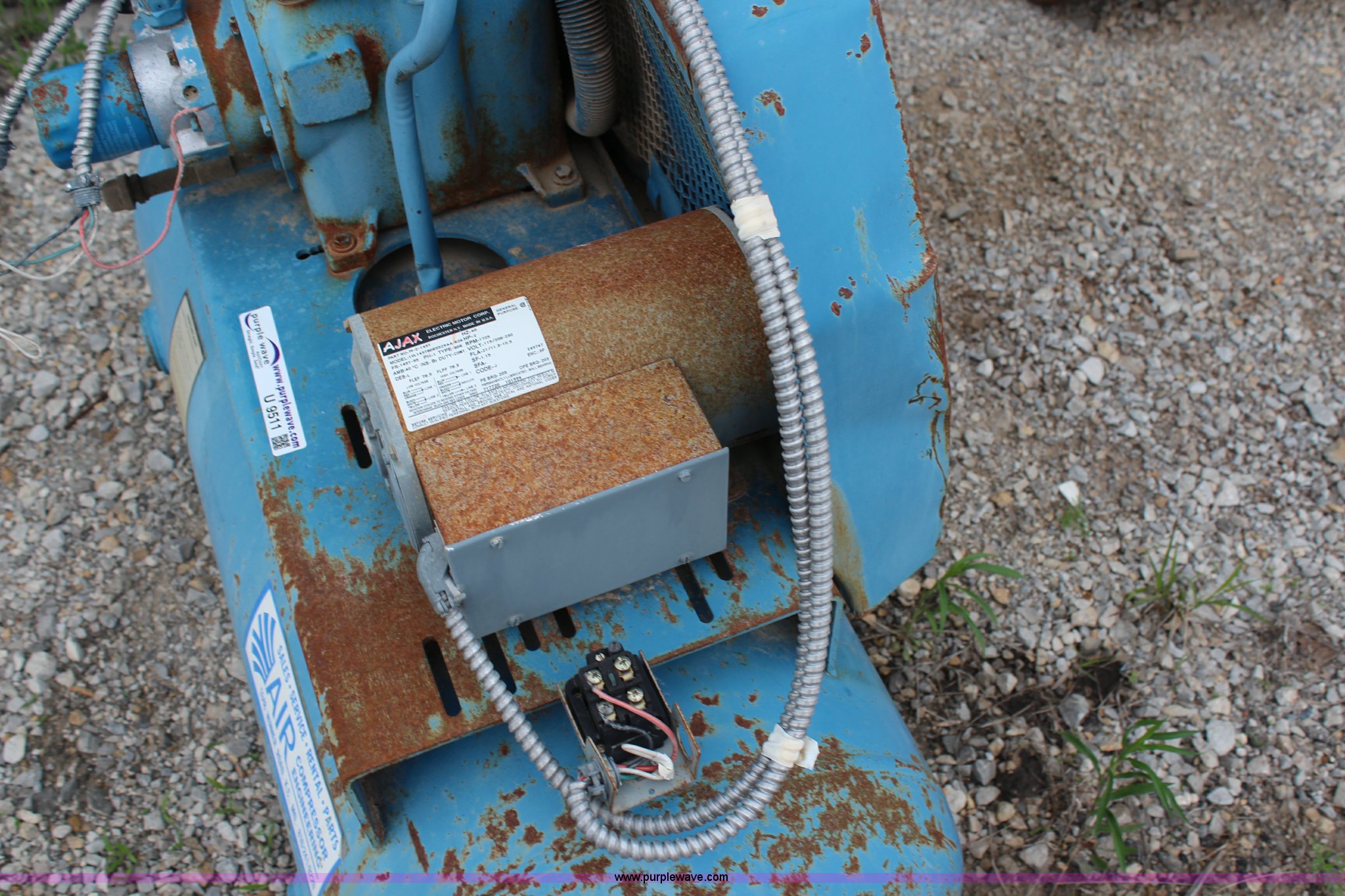 Purple Wave is selling a used Air Compressor in Kansas. This item is a 30 gallon air compressor with the following: 2 HP, 115/230V, Inoperable