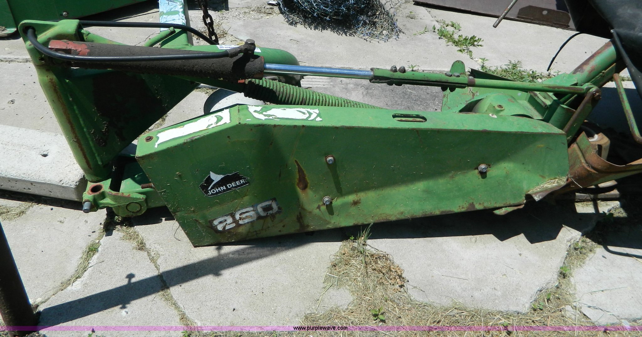 Purple Wave is selling a used Disc or Sickle Mower in Kansas. This item is a John Deere 260 disc mower with the following: Three point, Hydraulic lift, 540 PTO