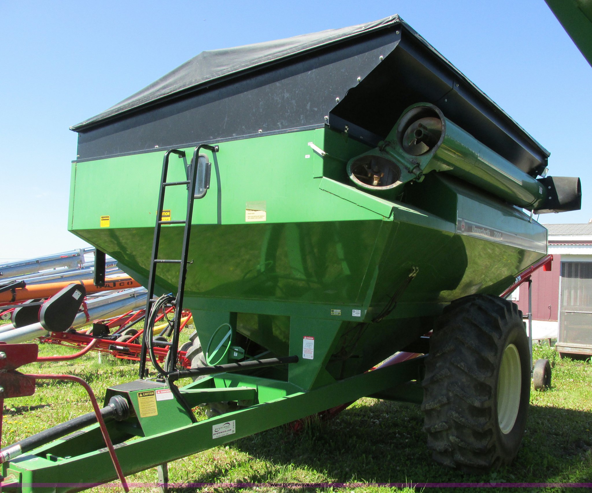 Purple Wave is selling a used Grain Cart or Gravity Wagon in Minnesota. This item is a 1997 Unverferth 7000 grain cart with the following: 24.5-32 tires, Hydraulic folding auger, Slab hitch, Front ladder, Tarp, Hydraulic interior flow shut off gate, 1 3/4" 1000 PTO shaft, 14" unload auger, Approx 10-20% worn, Serial B1624175