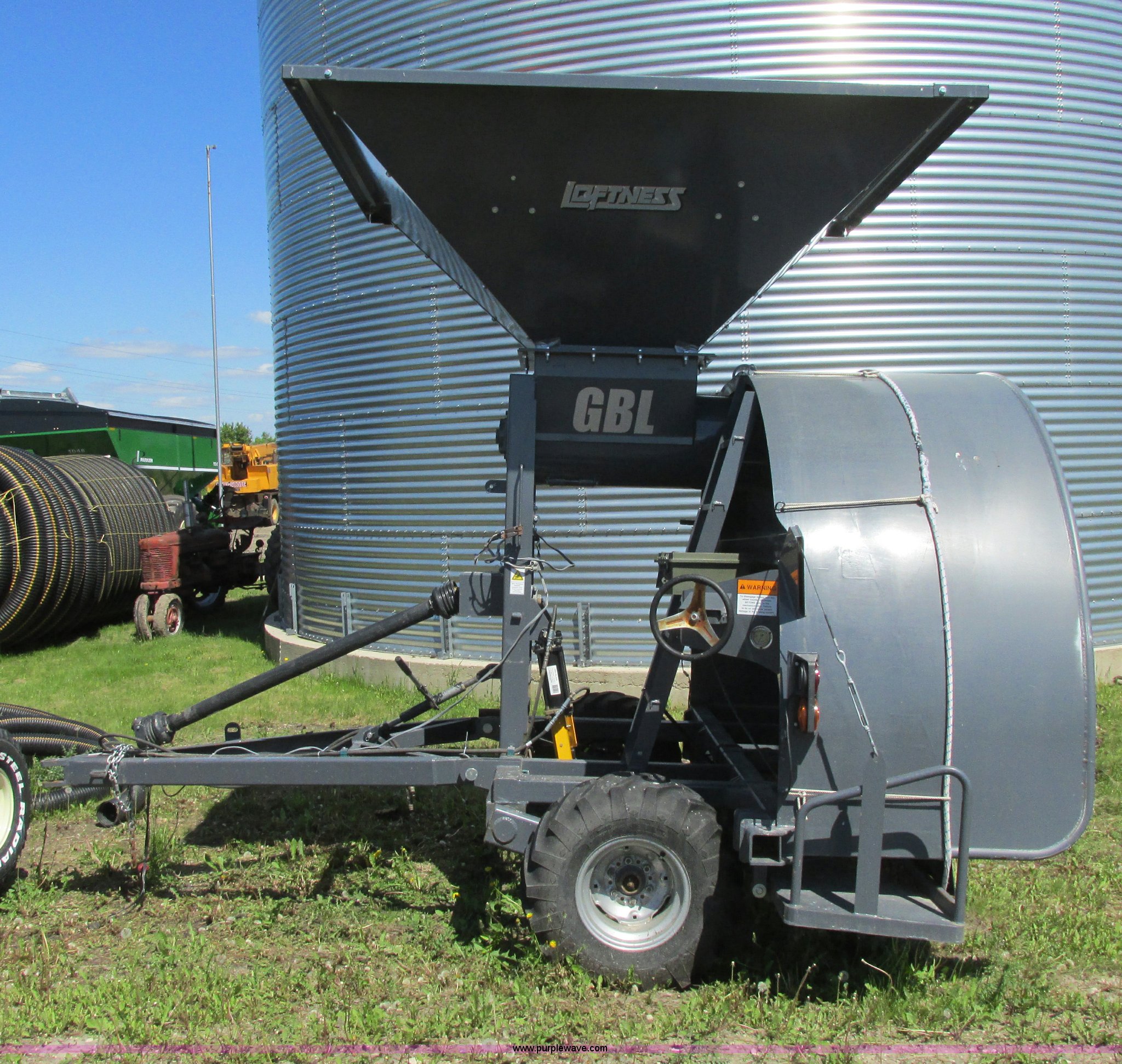 Purple Wave is selling a used Other Grain or Fertilizer Handling in Minnesota. This item is a 2010 Loftness GBL grain bag loader with the following: Disk brakes, 12.5L-15SL tires, 540 PTO driven, 16" fill auger, Fills 10' bags, Serial 52-523