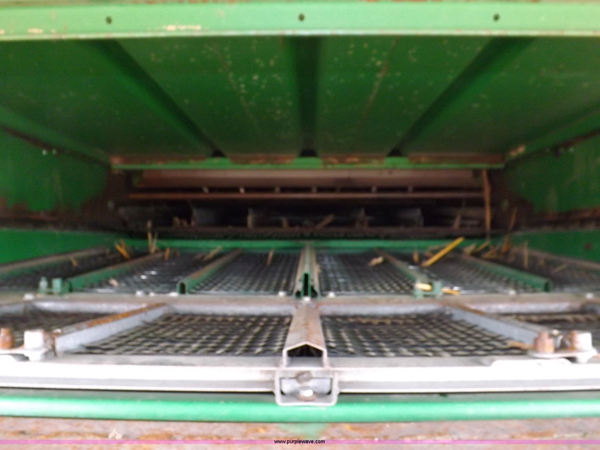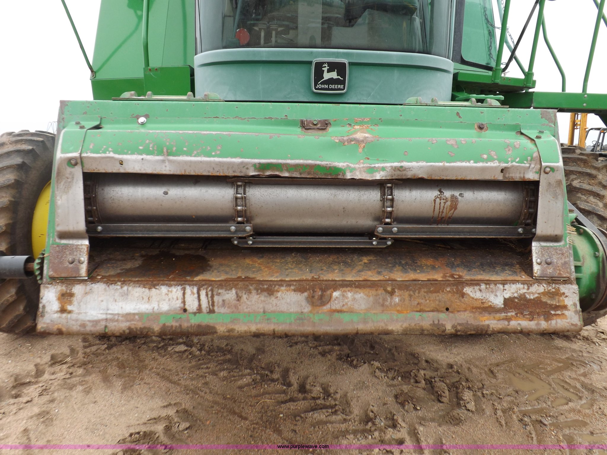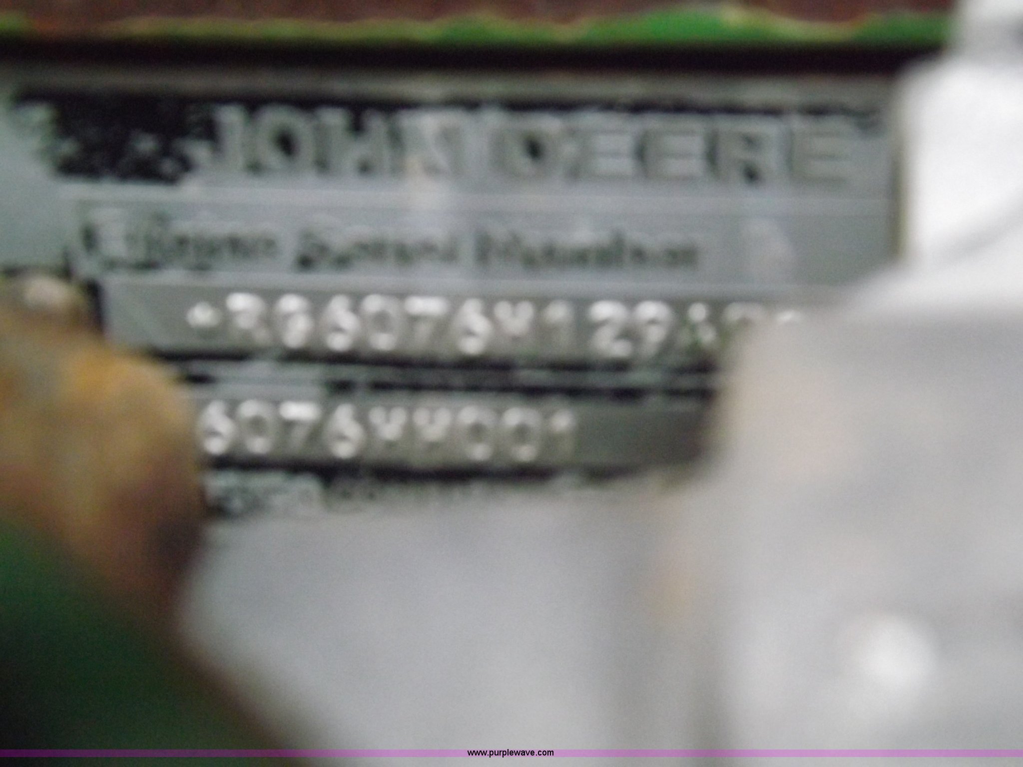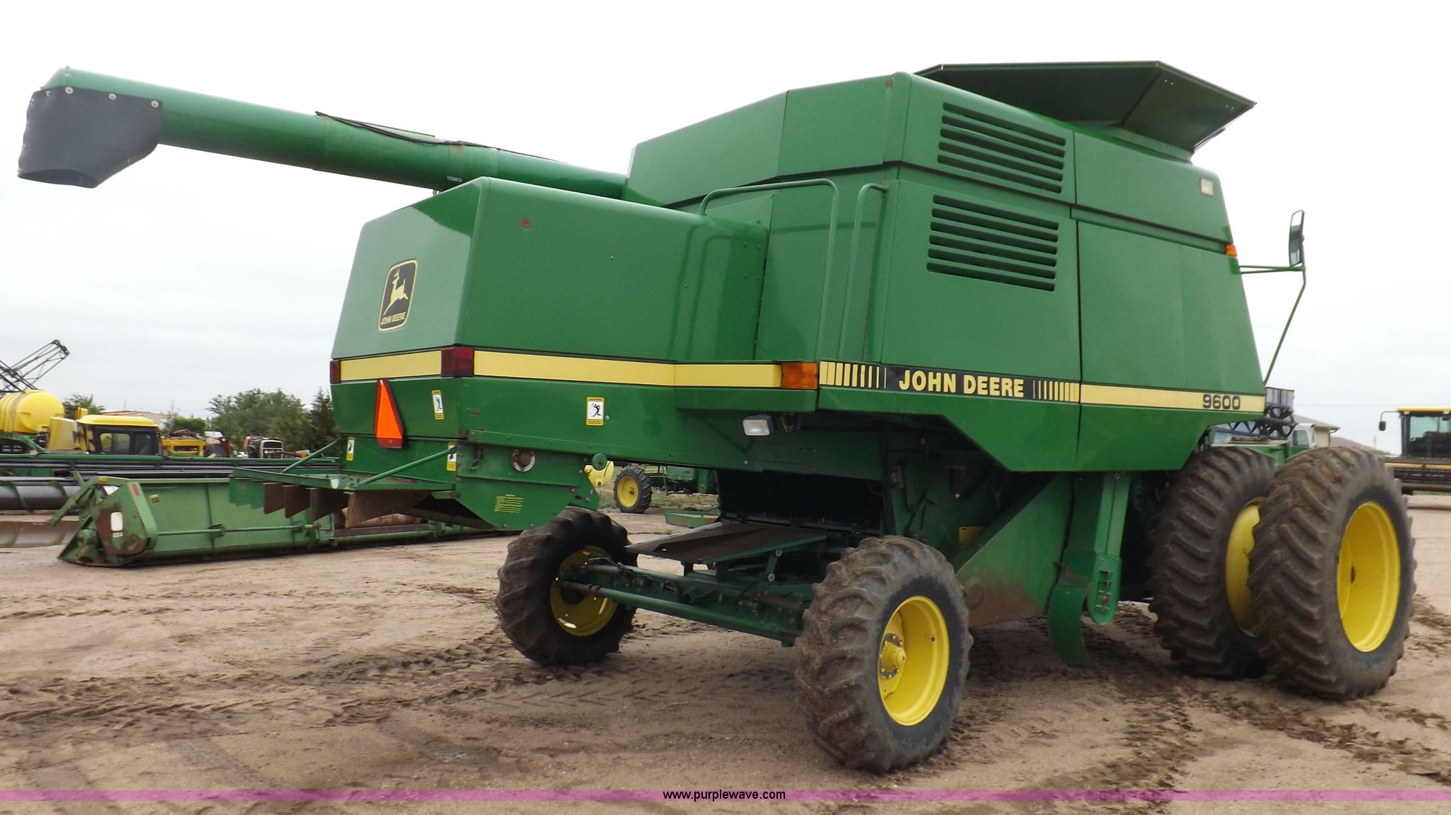 Purple Wave is selling a used Combine in Kansas. This item is a 1990 John Deere 9600 Turbo combine with the following: 7,002 engine hours on meter, 4,791 separator hours on meter, John Deere six cylinder diesel engine, Model 6076HH001, Hydrostatic transmission, 3F-3R gears, Feeder house reverser, Two speed rotor, Straw chopper, AC and heat, AM/FM, Air seat, Instructor's seat, Tilt steering wheel, Work lights, Bin extension, 300 bu. bin capacity, John Deere 930 30' rigid header, Serial H00930P631587, 18.4R38 dual drive tires, 14.9-24 rear tires, Serial H09600X636253