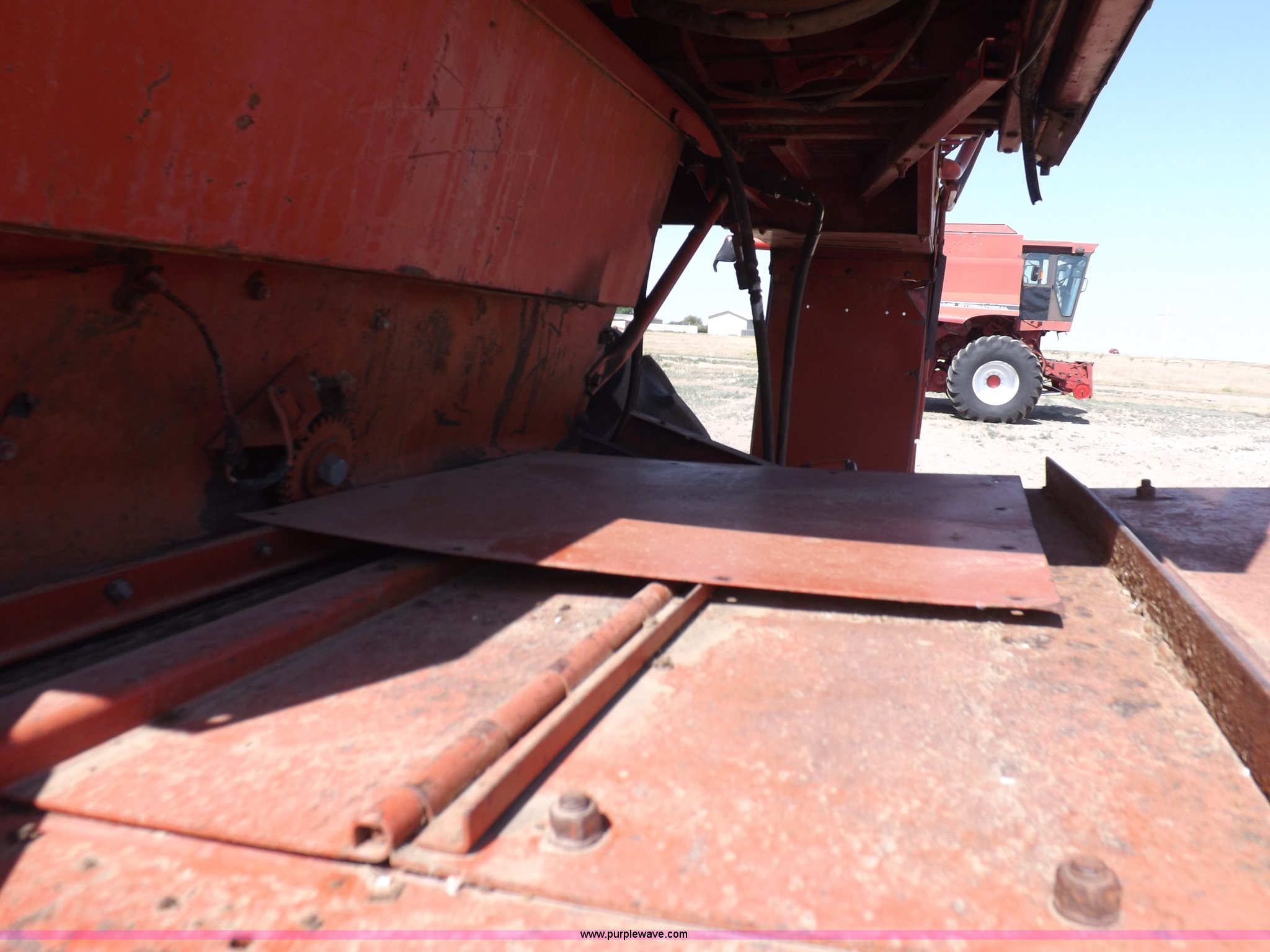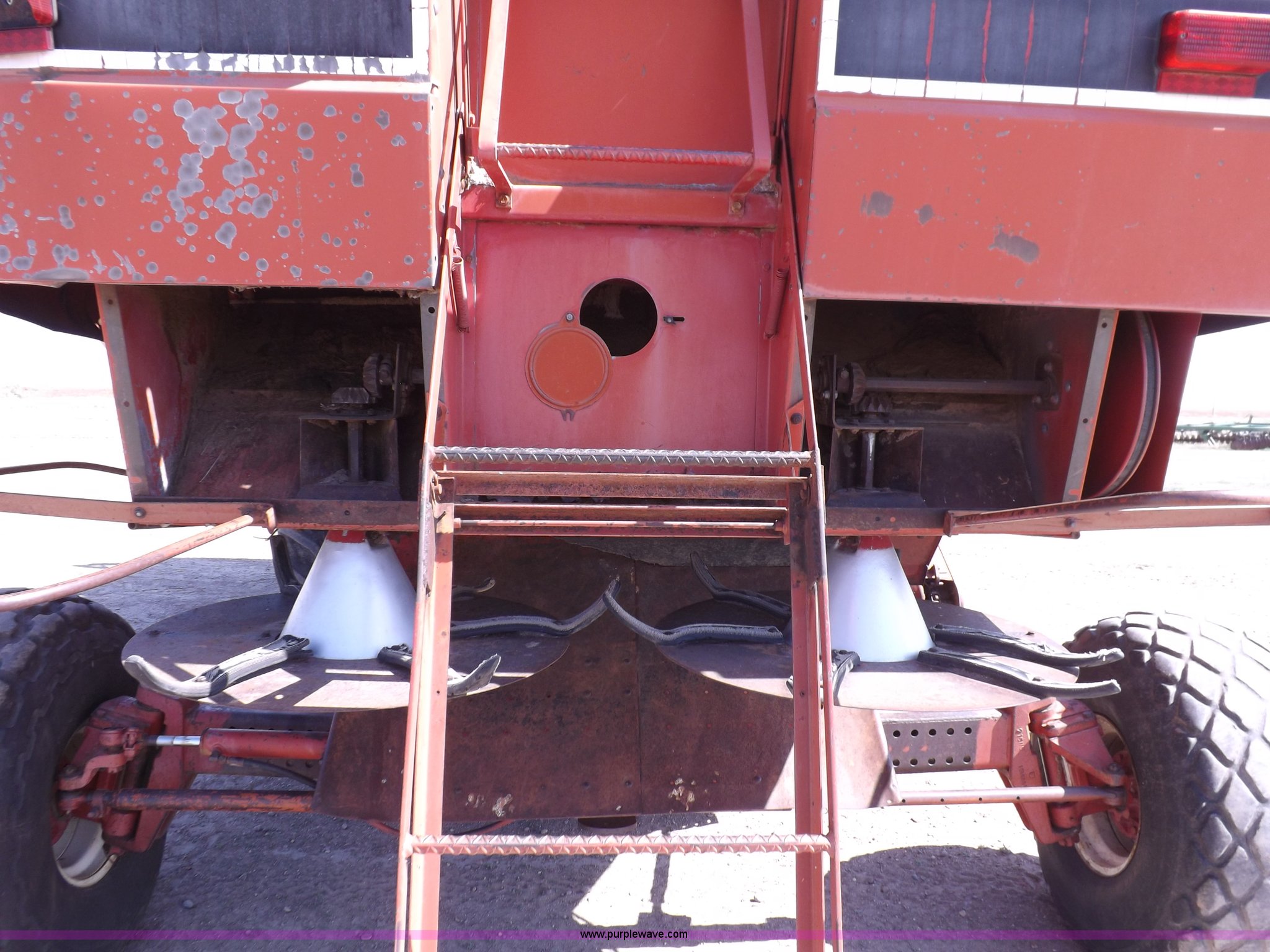 Purple Wave is selling a used Combine in Kansas. This item is a 1979 Case IH 1480 combine with the following: 4,806 hours on meter, International harvester DT436A six cylinder diesel engine, Engine remanufactured, Hydrostatic transmission, 3F-3R gears, AC and heat, AM, Spring suspension, Tilt steering wheel, Smith Roles grain monitor, Work lights, Straw spreader, 24.5-32 drive tires, 18.4-16.1 rear tires, Access loader damage, Missing right side concave access panels, Dent in rear left corner, Auger has been patched, Serial 17202150001817