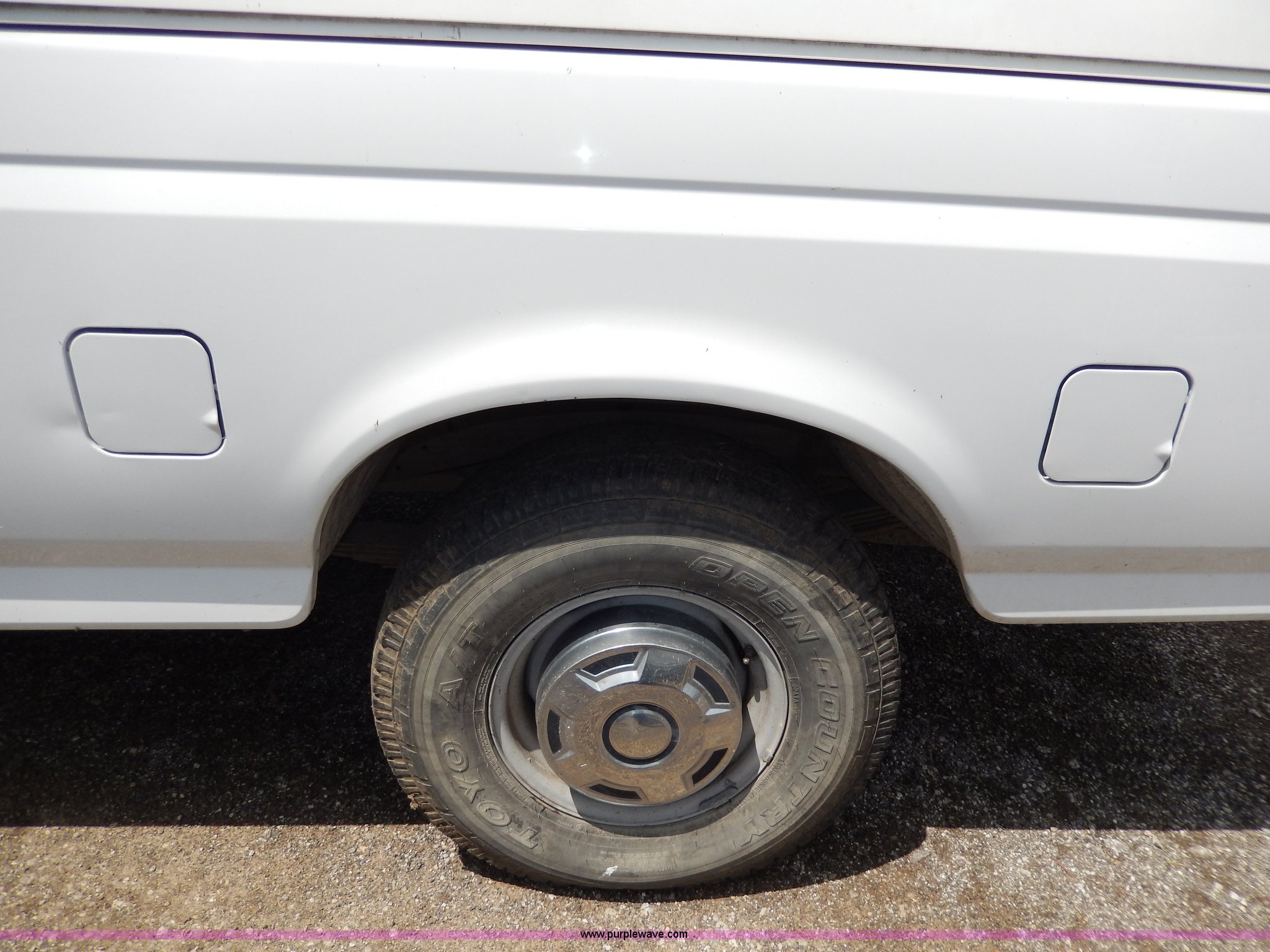 Purple Wave is selling a used Passenger Vehicle in Kansas. This item is a 1994 Ford F250 XL pickup truck with the following: 177,955 miles on odometer, Automatic transmission, AC and heat, Cruise, AM/FM/CD, Manual windows and locks, Vinyl interior, Dual fuel tanks, Ball hitch, Receiver hitch, Trailer wiring, 235/85R16 tires, Check engine light is on, Windshield cracked, Dents and scratches, Driver's side mirror cracked