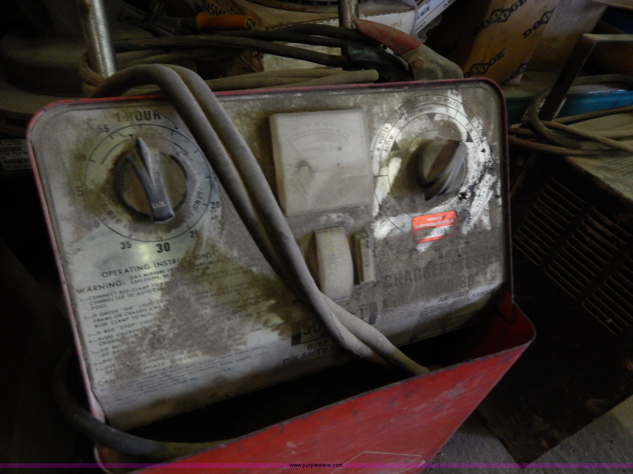 Purple Wave is selling a used Tools in Missouri. This item is a (4) battery chargers with the following: 6,12, and 24 volt, Wheel kits, Unknown operating condition
