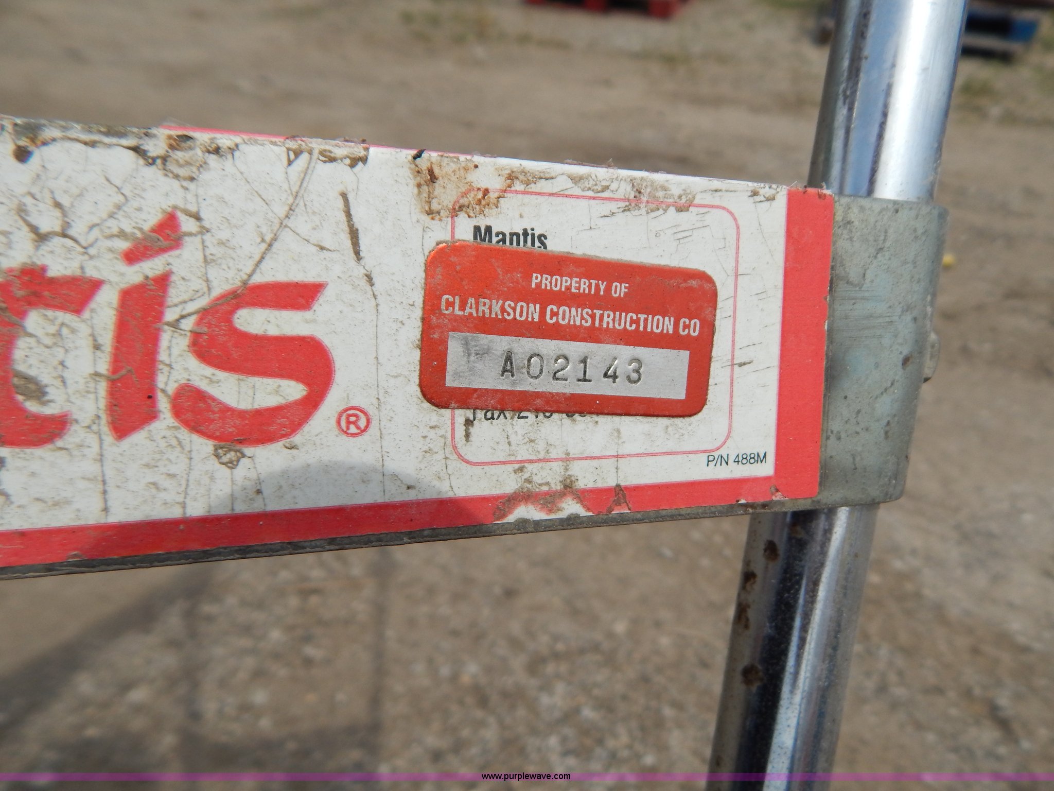 Mantis tiller. Two stroke gas engine, 8"W, Unknown operating condition. Shipping quotes available. Clarkson Construction. 4133 Gardner Avenue. Kansas City, MO 64120
