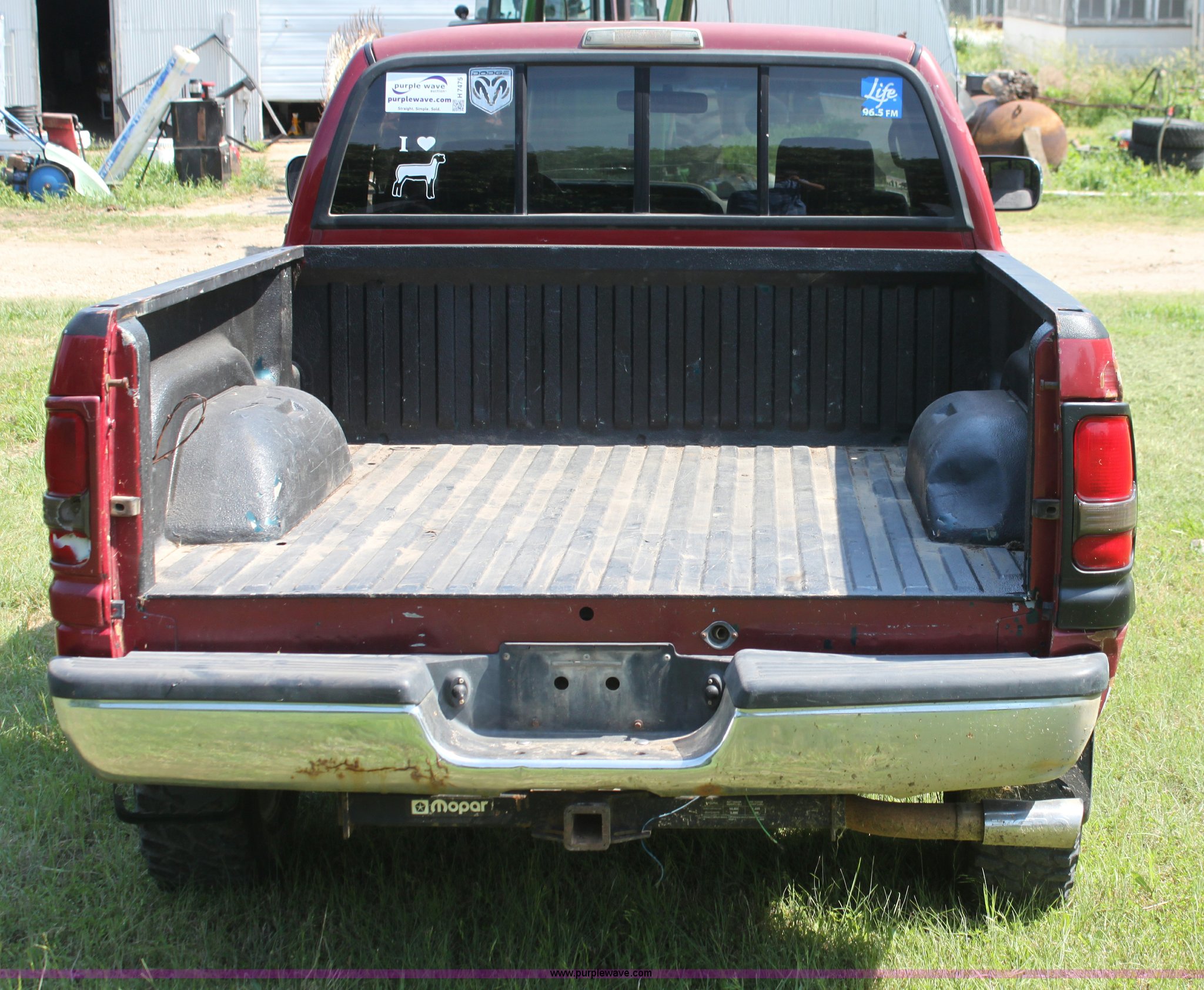 Purple Wave is selling a used Passenger Vehicle in Kansas. This item is a 1997 Dodge Ram Ram 1500 Laramie SLT pickup truck with the following: 227,515 miles on odometer, 5.2L V8 OHV 16V gas engine, Uses oil, Automatic transmission, Four wheel drive, AC and heat, Tilt, Cruise, AM/FM/cassette, Power windows and locks, Vinyl interior, Receiver hitch, 245/75R16 tires, Interior/exterior cosmetic damage, Paint peeling, Cracked windshield, Needs battery