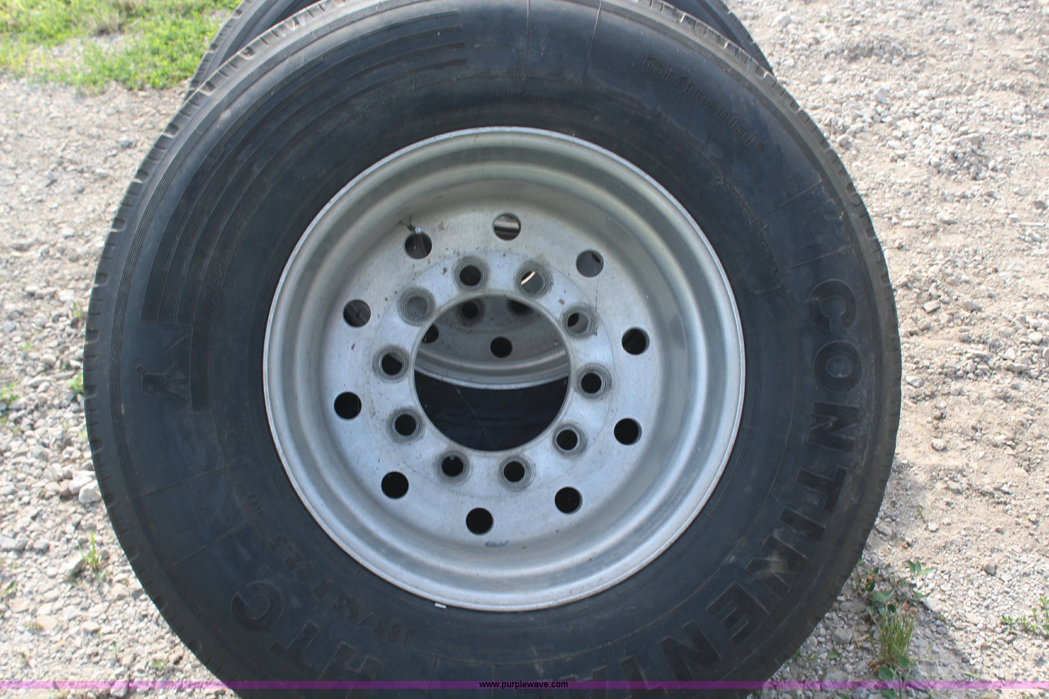 Purple Wave is selling a used Automotive Parts or Acces. in Kansas. This item is a (4) 385/65R22.5 tires and aluminum wheels with the following: Bud style mounting, Lug nuts included