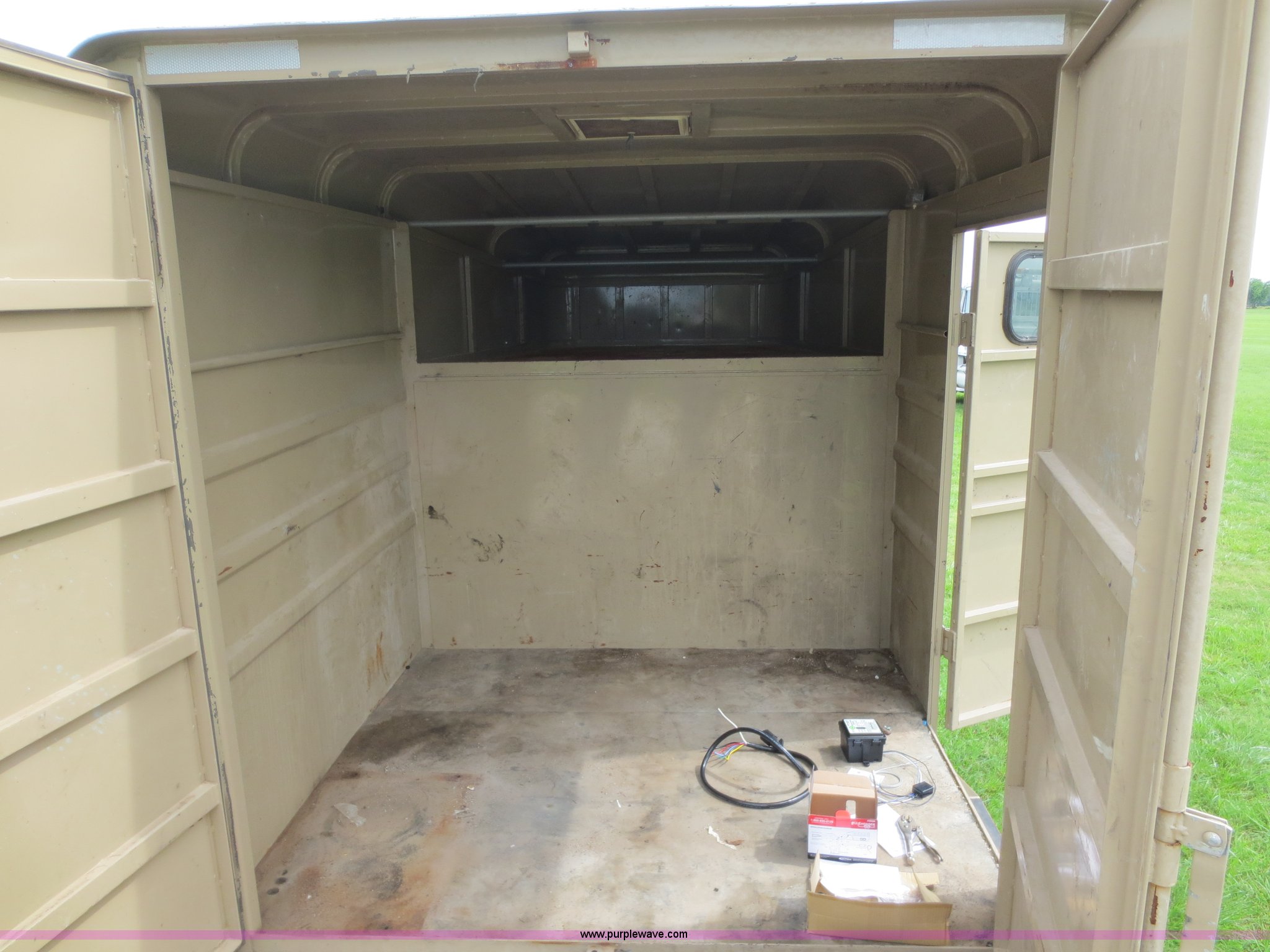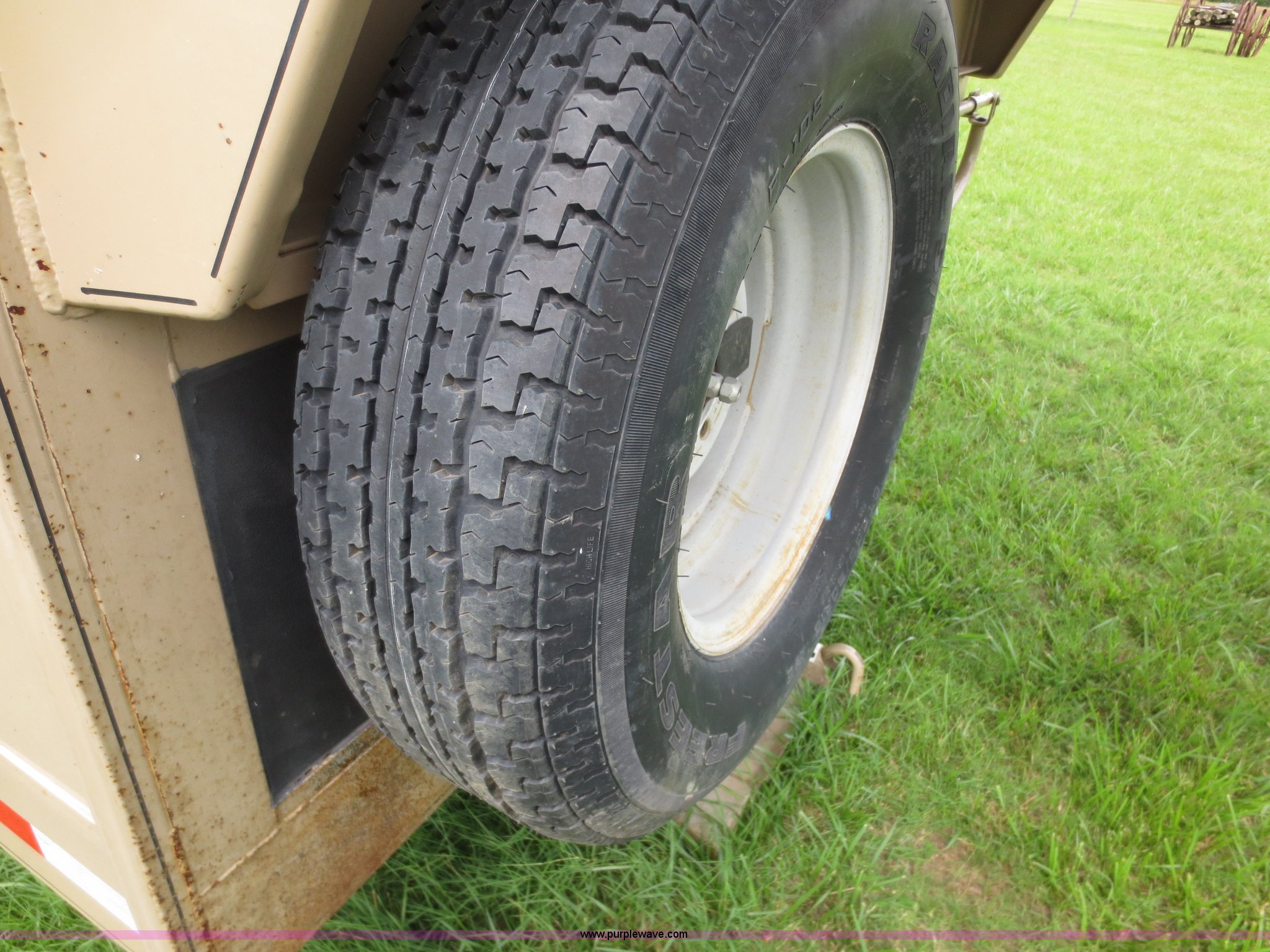 Purple Wave is selling a used Flat or Drop Deck Trailer in Oklahoma. This item is a 2009 Circle D multi-purpose gooseneck flatbed trailer with the following: 18'L x 79.5"W flatbed, Wood floor, Stake side pockets, Diamond plate steel fenders, Fold up sliding ramps, 55"L x 15.5"W, (2) rear drop down stabilizing posts, Full entry cargo compartment with cargo nose cone, 6'L x 79.5"W x 6.6'H, Side entry door, Double rear butterfly doors, Roof vent, Side window in door, Rubber floor mat, Single post landing gear, Spring loaded, 2 5/16" coupler, Adjustable height, Break-away chains, Break-away brake controller box, Torsion axles, 7,000 lbs each, Tandem axle, Easy lube hubs, Electric brakes on both axles, 7.50R16LT tires, GVWR 14,000 lbs, New break-away controller will be installed prior to auction