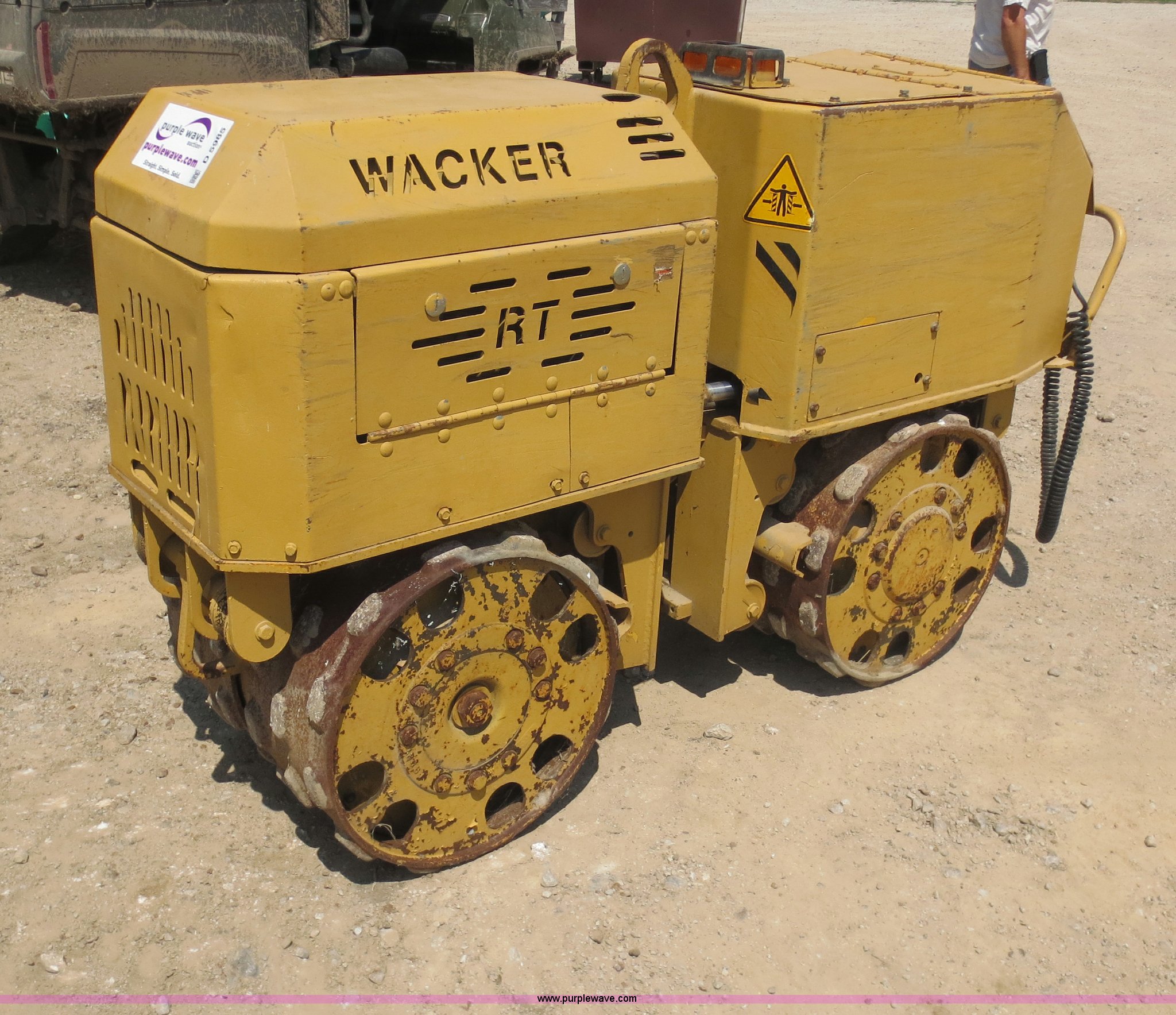Purple Wave is selling a used Walk Behind Compactor in Kansas. This item is a 1997 Wacker RT820 vibrating trench compactor with the following: 707 hours on meter, Two cylinder diesel engine, 22"W drums, External hand controls, 3,020 lbs. base operating weight, Batteries need replaced, Serial 764401142